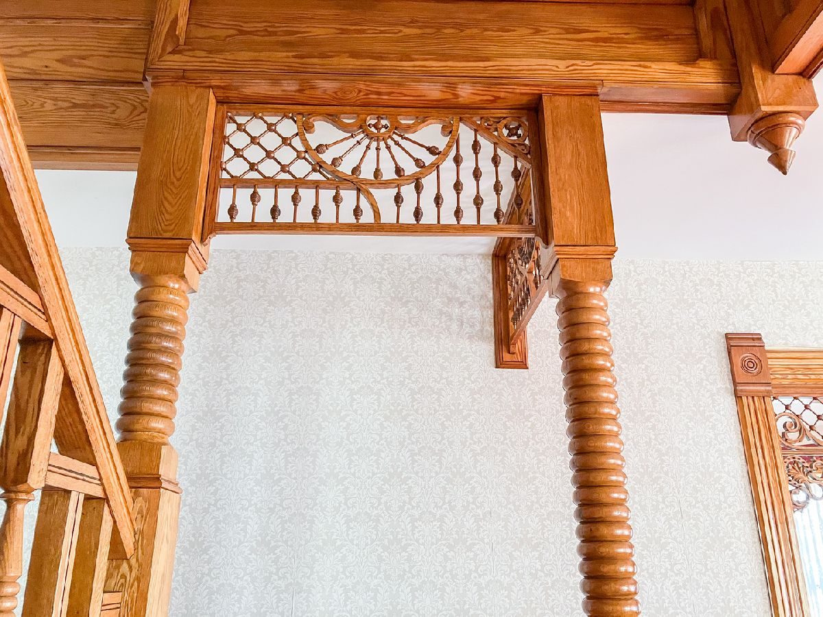 Rare find Victorian home on a corner double lot. Beautifully preserved millwork and hardwood floors throughout. Wonderfully updated kitchen with a tile floor and a butler pantry now used as the laundry room. First floor full bath, two original fireplaces, period light fixtures throughout the home, and many more unique features too numerous to mention. The beautiful open staircase leads to the five large bedrooms and two more bathrooms, one is original. Newly painted exterior, two car garage, many shrubs, flowers, and decorative grasses make this home both beautiful and ready to move in.