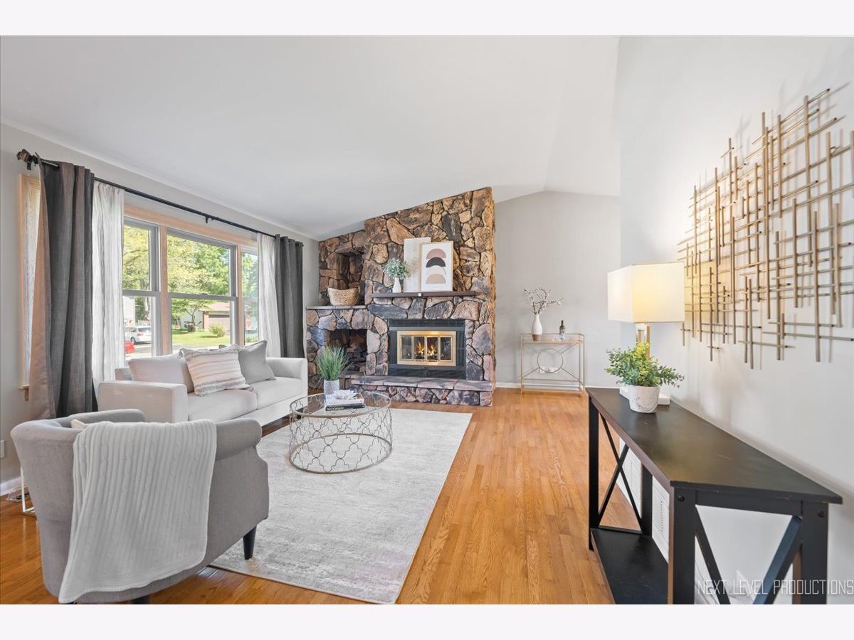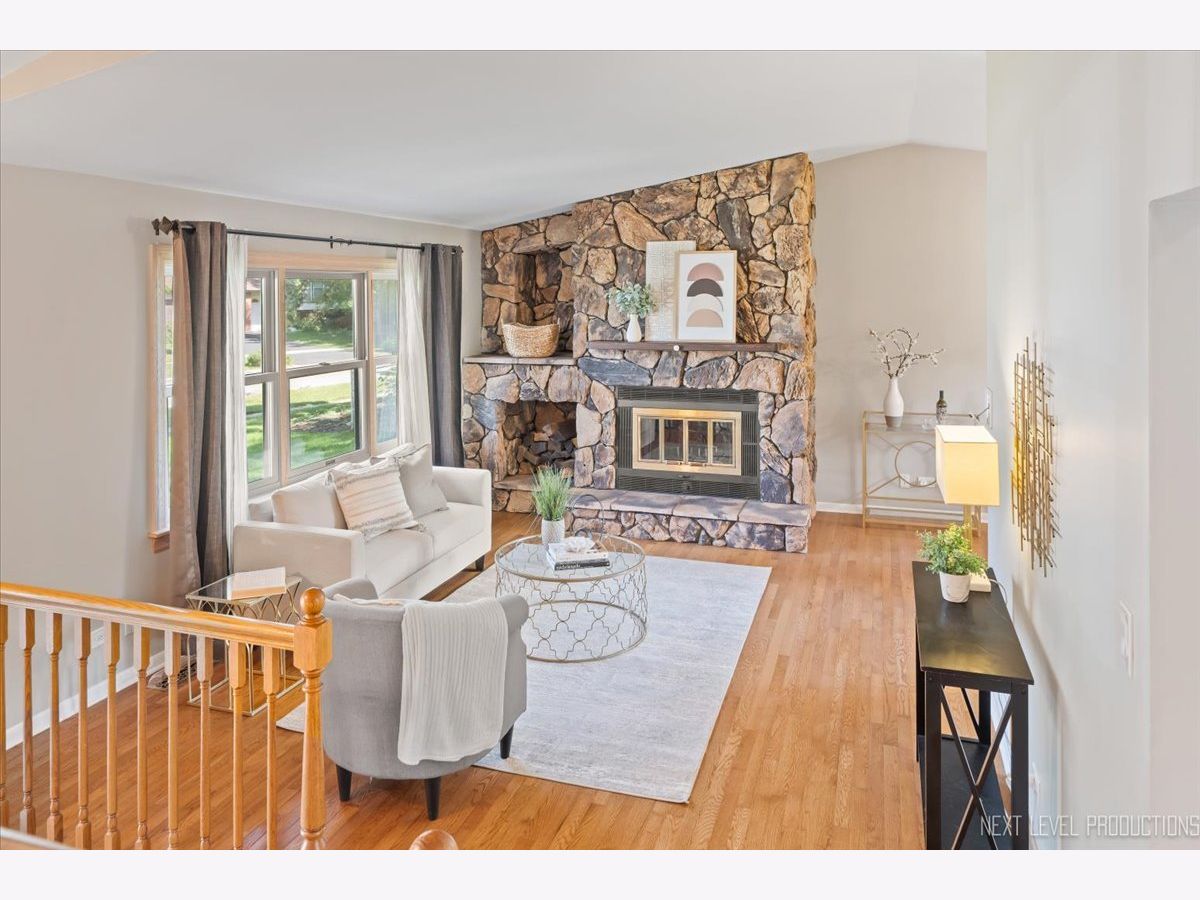 Move-in ready and filled with natural light, this charming home combines comfort, character, and convenience. The main level features gleaming hardwood floors and a welcoming living room with a cozy fireplace-perfect for relaxing or entertaining. The kitchen showcases white cabinetry, stainless steel appliances, a built-in bench with storage, and a bright dining nook overlooking the backyard. Enjoy seamless indoor-outdoor living with a spacious multi-level deck ideal for gatherings. The lower level offers a large family room with luxury vinyl flooring, a second fireplace, custom built-ins, a full bath, laundry and sliding doors to the deck and backyard. Upstairs, the primary bedroom includes a private bath, while two additional bedrooms feature beautiful hardwood floors. Recent updates include a NEW furnace (2024) and all NEW Andersen energy-efficient windows (2024). A backyard shed provides additional storage. Conveniently located near top-rated schools, parks, shopping, dining, and I-355, this home offers the best of Woodridge living.