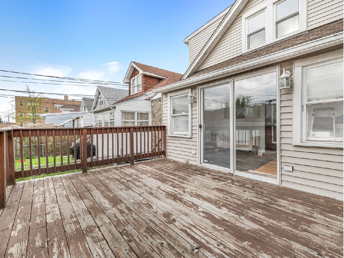 Brick Octagon Bungalow in the Belmont-Cragin neighborhood. This home was renovated about fourteen years ago and includes five Bedrooms, and two plus Bathrooms. The first floor has HW floors and includes a spacious Living Room/Dining Room combination, two Bedrooms, a full ceramic tile Bathroom, Cabinet Kitchen with an island, Stainless Steel appliances and an enclosed back Porch with deck access. The dormered second floor has a separate FA/CA unit and includes a 21 x13 primary Bedroom with a skylight, two additional Bedrooms, and a double sink Bathroom with a Jacuzzi tub. The full semi-finished Basement includes a spacious Recreation Room, glass block windows and a partial Bathroom. Recent updates include: Some window replacements (6-7 years), lower level furnace and C/A (8 years ago)