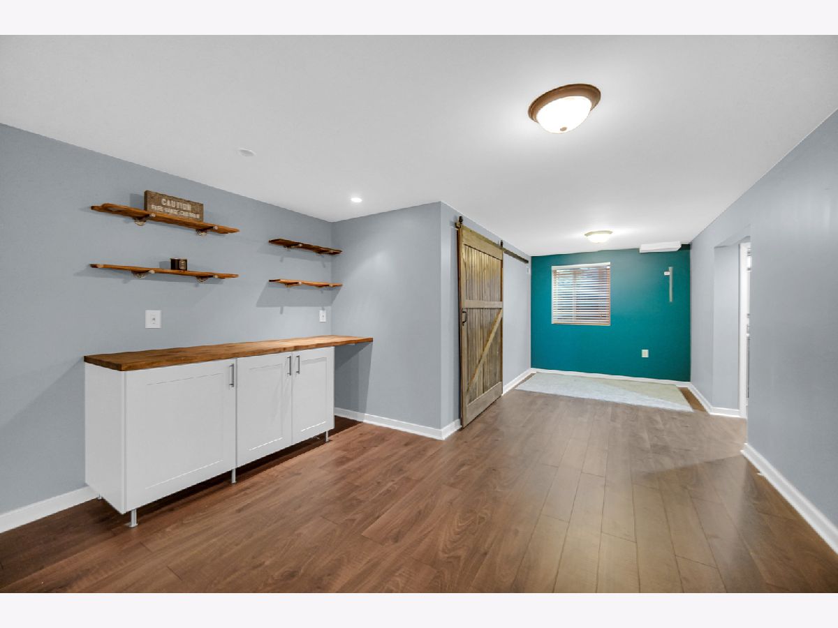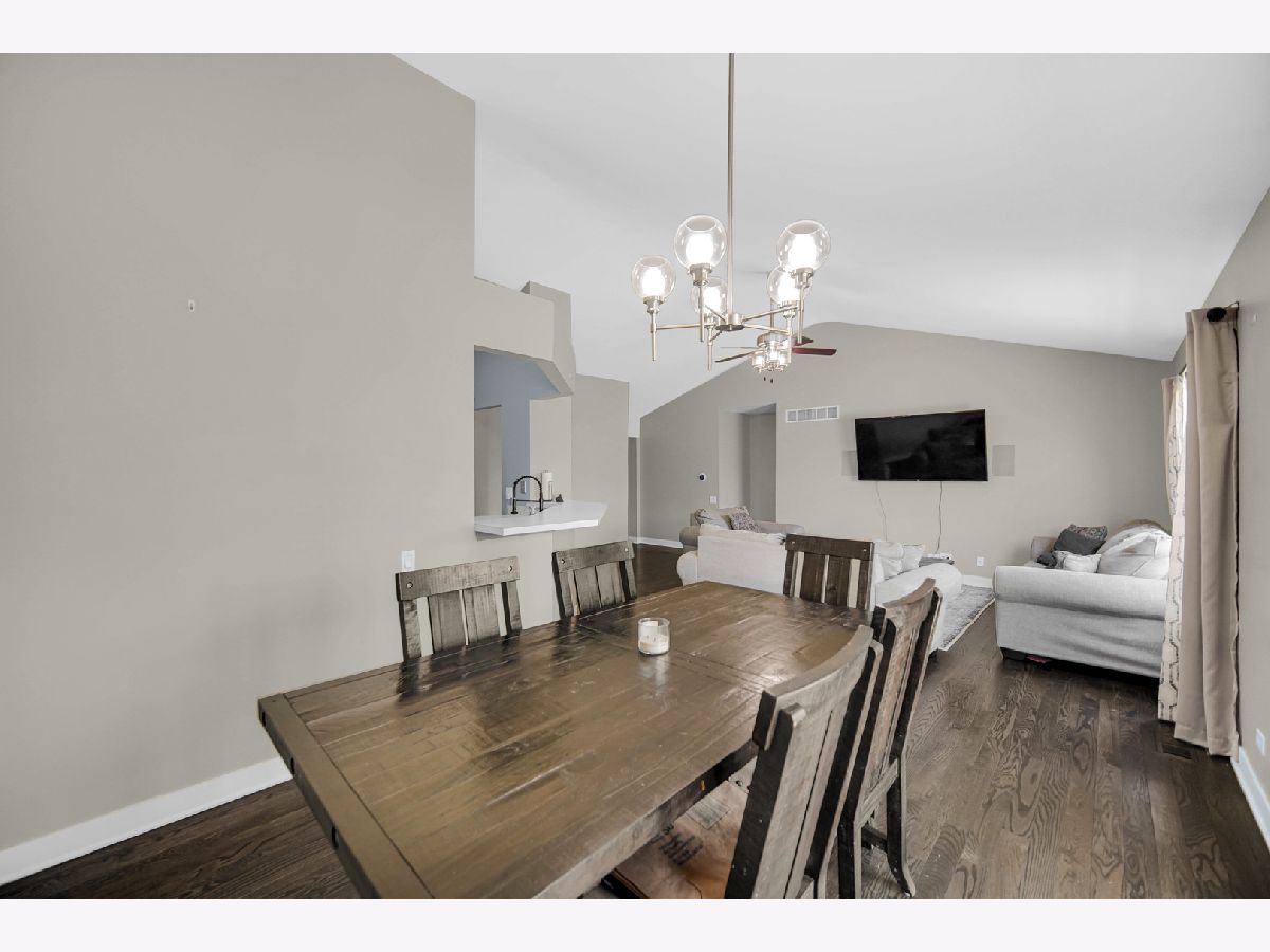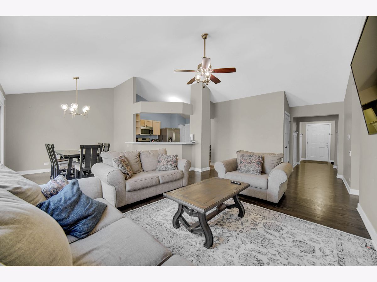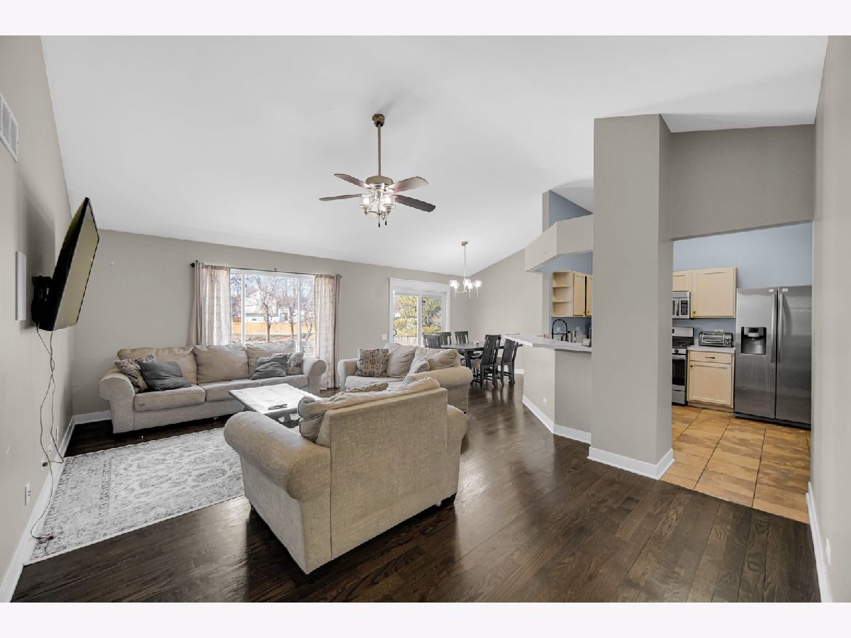 Rarely available ranch in desirable Harbor Springs with beautiful water views! Enjoy stunning sunsets from your fenced backyard overlooking the pond. Step inside to a welcoming foyer featuring gleaming hardwood floors and upgraded wainscoting, setting the tone for the quality finishes found throughout the home. Upgraded paneled doors add an elevated touch rarely found in homes of this style. The main level offers 3 bedrooms and 2 full baths, including a private primary suite. The kitchen features stainless steel appliances and a pantry and flows seamlessly into the spacious living and dining areas-perfect for everyday living or entertaining. Step outside onto the patio and take in the peaceful setting and scenic pond views from your backyard. The finished basement nearly doubles the living space, featuring a large family room, 4th bedroom, full bath, built-in bar, barn door accents, egress windows, and an impressive storage room. This home has been lovingly cared for: Roof (2017), Furnace & A/C (2016), Patio door and primary bedroom windows (2015), Hardwood floors refinished (2017), Fence (2014), Shed (2016), and Driveway redone July 2023. Located in a highly rated District 308 school area with additional storage including built-in garage cabinets. A spacious backyard with beautiful water views makes this home truly special.