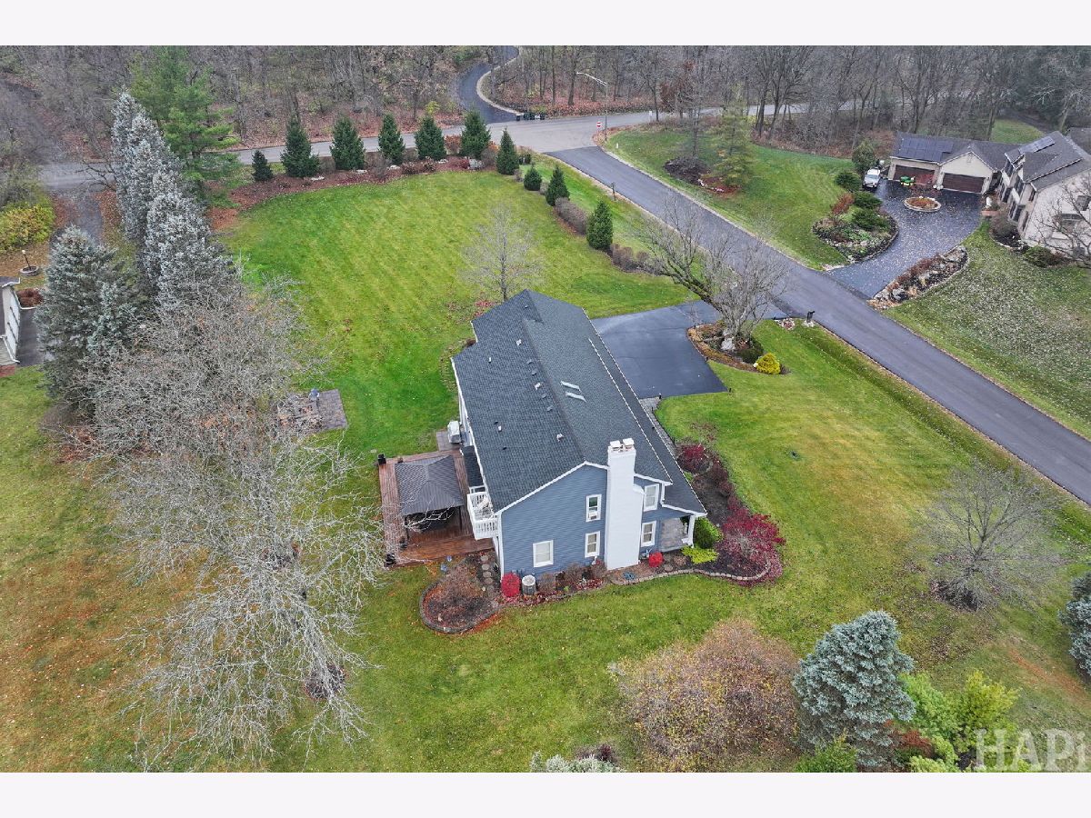 Spacious two-story home on 1.14 acres of beautiful views from every window offers 5 bedrooms and 3.5 baths with thoughtful updates throughout. A refined kitchen design with clean lines and warm finishes include a large center island, deep drawers that balance stye and function. Hardwood floors run throughout the first floor, which also includes both a den and a separate office-ideal for today's telecommuters. The primary suite is a true retreat, highlighted by a fireplace and a beautifully updated bath with a large walk-in shower and a well-designed dressing room that emphasizes style and organization. The professionally finished basement adds exceptional flexibility with a wet bar, theater/rec room (theater equipment included), exercise/yoga room, bedroom, full bath, and ample storage-making it well suited for a multigenerational living arrangement. This home has been maintained with the utmost of care. Outdoor amenities include a fabulous front porch, firepit, and deck with gazebo, creating a enjoyable outdoor space perfect for entertaining..
