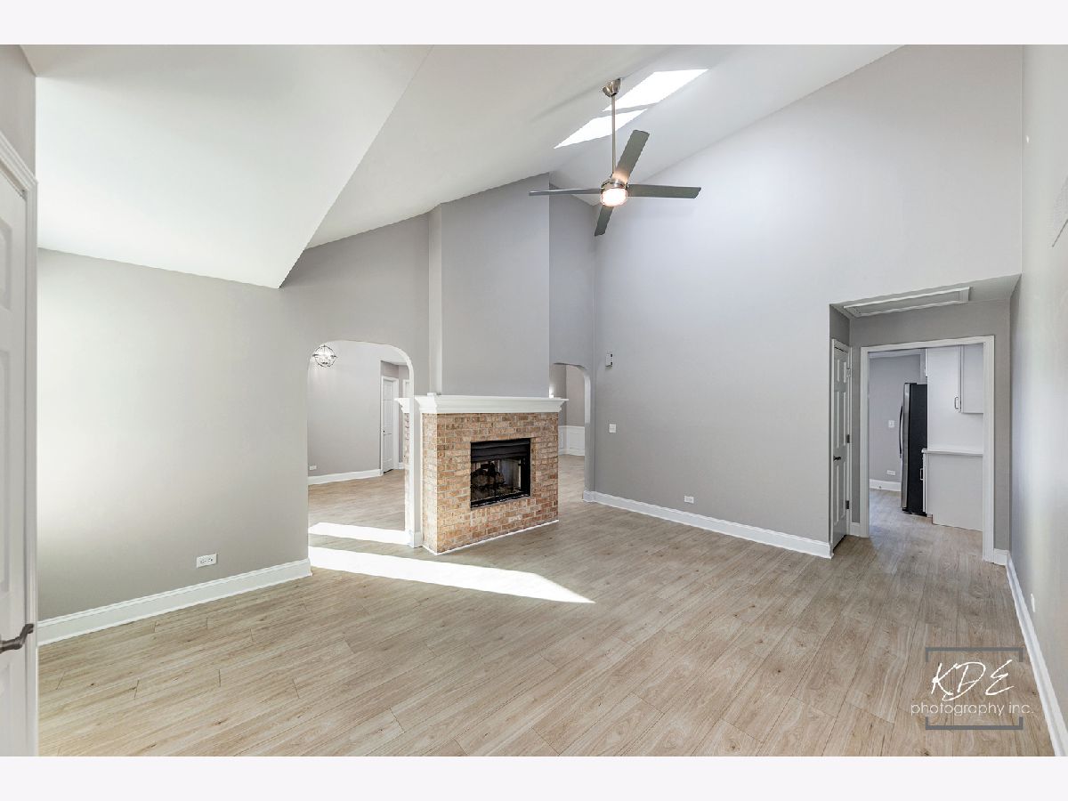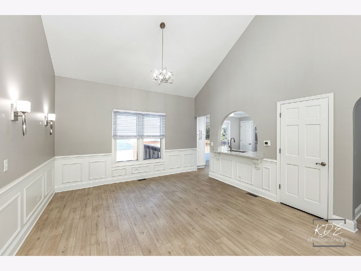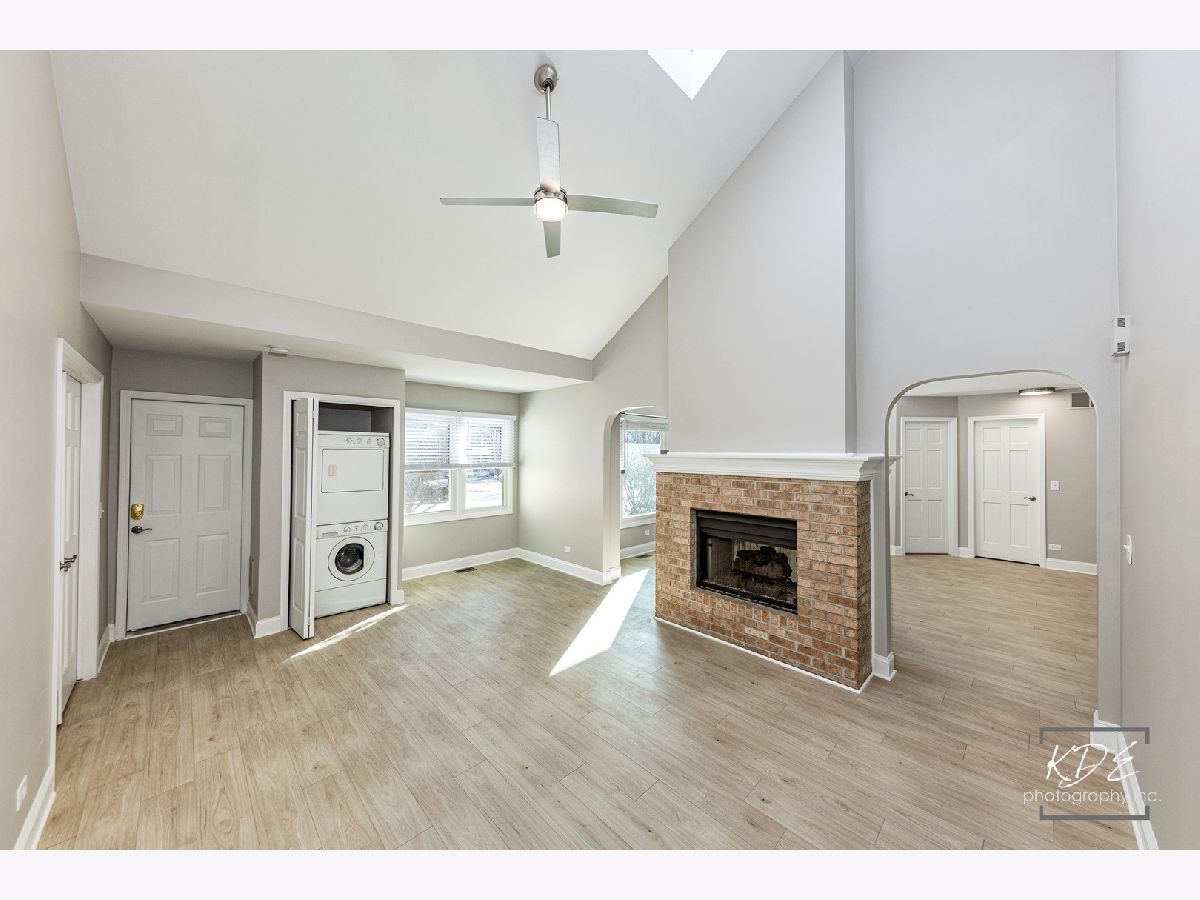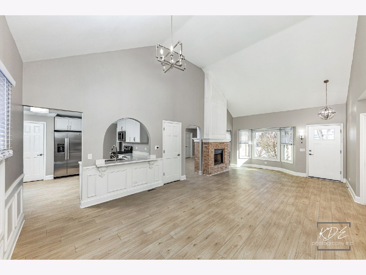 Finally, a completely remodeled ranch! Gorgeous living room with bay window, vaulted ceilings, two- sided fireplace with custom millwork. Dining room with wainscotting, new lighting, new wide plank floors, arch opening. Kitchen has new 42-inch cabinets, soft close drawers, new stainless steel appliances, new quartz countertops with new sink and faucet. Family room with vaulted ceilings, skylight, fireplace, and new ceiling fan. Master suite has double closets, vaulted ceilings, new ceiling fan. Master bath has skylight, new dual raised vanities with quartz tops and soft close drawers, new heated tile floors, large walk-in shower with custom glass door. Beautiful, finished basement with new carpet, can lights, wet bar with full-size stainless-steel fridge, huge storage area! Brand new furnace and A/C. All this plus a spacious deck and a peaceful backyard. Fantastic neighborhood amenities with clubhouse, pool, hot tub, and waterslide.