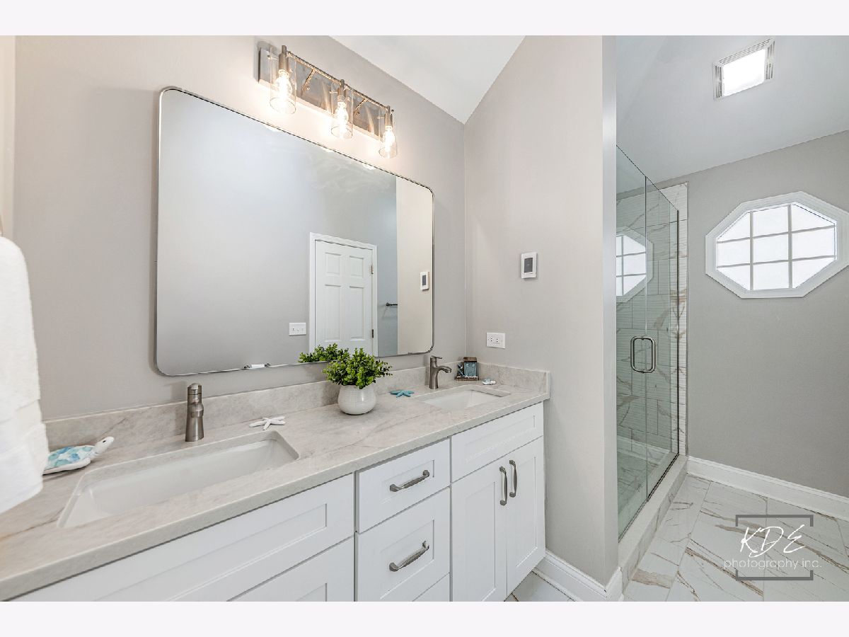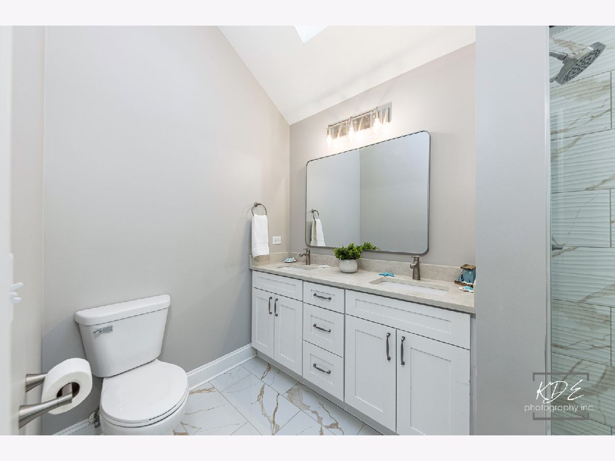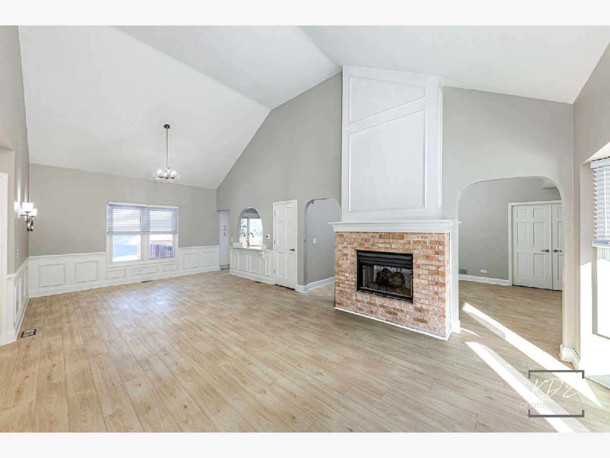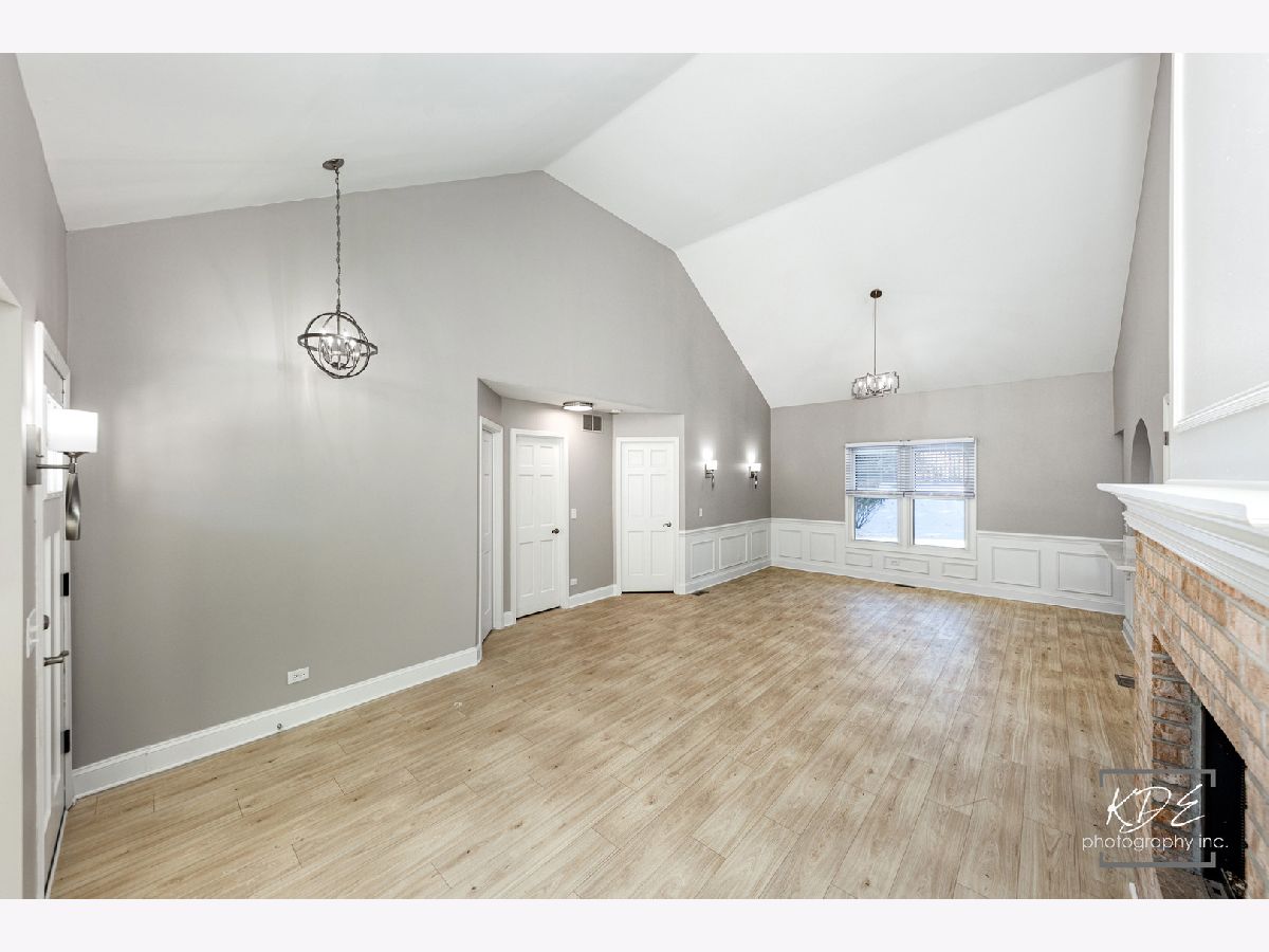 Finally, a completely remodeled ranch! Gorgeous living room with bay window, vaulted ceilings, two- sided fireplace with custom millwork. Dining room with wainscotting, new lighting, new wide plank floors, arch opening. Kitchen has new 42-inch cabinets, soft close drawers, new stainless steel appliances, new quartz countertops with new sink and faucet. Family room with vaulted ceilings, skylight, fireplace, and new ceiling fan. Master suite has double closets, vaulted ceilings, new ceiling fan. Master bath has skylight, new dual raised vanities with quartz tops and soft close drawers, new heated tile floors, large walk-in shower with custom glass door. Beautiful, finished basement with new carpet, can lights, wet bar with full-size stainless-steel fridge, huge storage area! Brand new furnace and A/C. All this plus a spacious deck and a peaceful backyard. Fantastic neighborhood amenities with clubhouse, pool, hot tub, and waterslide.