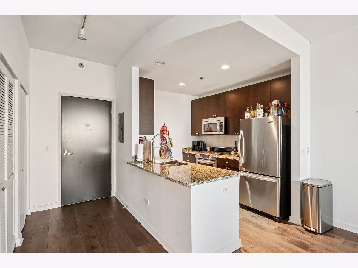 Experience deluxe city living in this stylish River North condo featuring a kitchen with granite counters, island, and stainless steel appliances. Floor-to-ceiling windows flood the space with natural light, showcasing city and lake views from your private balcony. New flooring installed April 2025 adds a fresh touch to the contemporary design. Residents enjoy premium amenities including a fitness center and rooftop deck, perfect for relaxation or entertaining. A prime location close to River North, the Loop, and West Loop's best dining, shopping, and nightlife makes this home a true urban retreat. Parking being sold separately for $25,000!