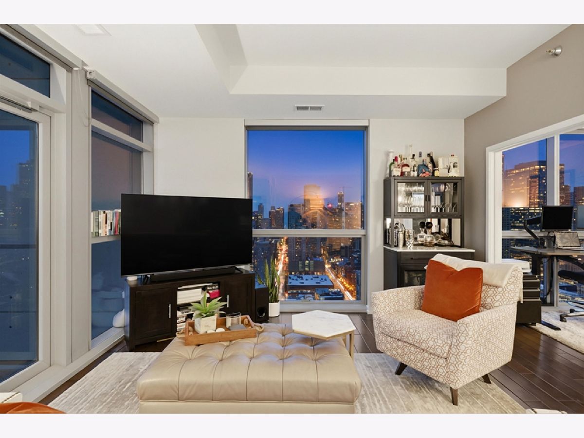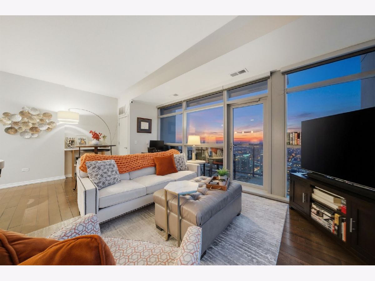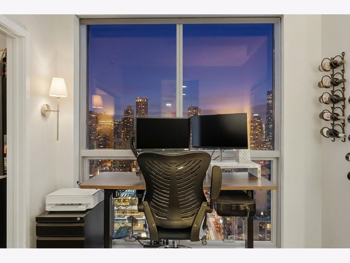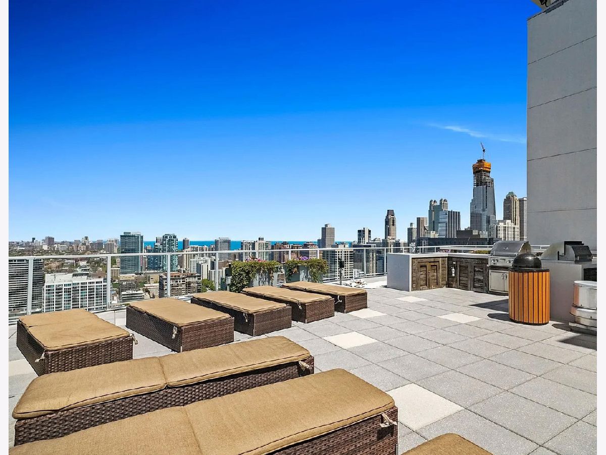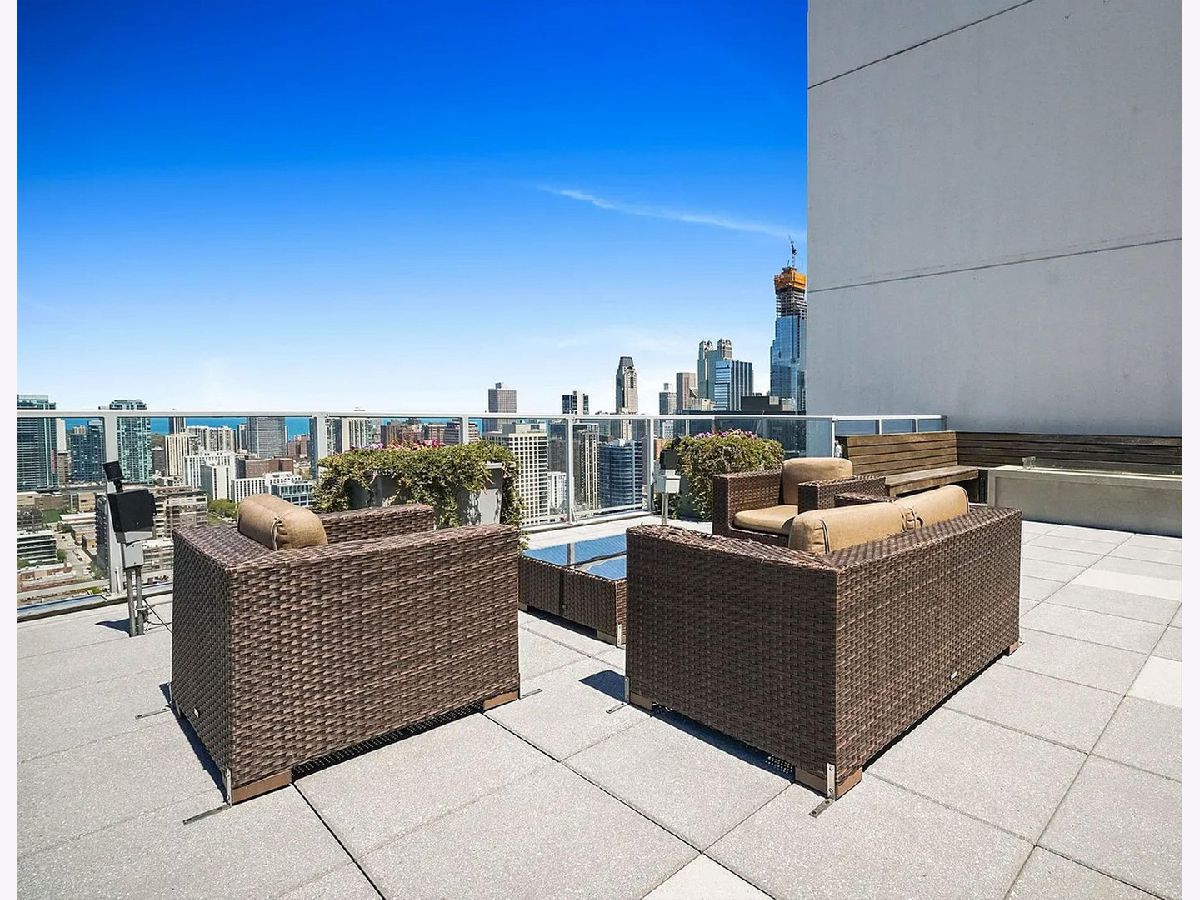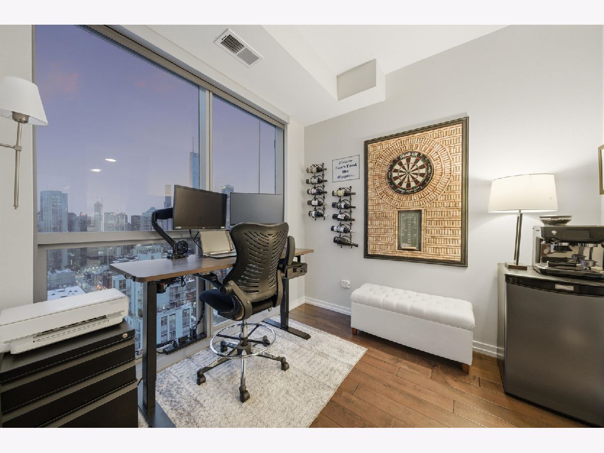 Highly sought-after corner residence at the desirable Silver Tower, showcasing breathtaking north and east city skyline views. This stunning 1-bedroom + DEN, 1-bath home is a must-see! Beautiful hardwood floors run throughout the kitchen, living area, and second bedroom. The updated chef's kitchen features generous counter space, abundant cabinetry, and stainless steel appliances. Floor-to-ceiling windows flood every room with natural light and showcase the spectacular views from every angle. Step out onto your private terrace and take it all in - the skyline backdrop is unforgettable. The spacious primary bedroom offers excellent closet space, while the versatile second bedroom works perfectly as a home office or guest room. An updated bathroom completes this thoughtfully designed layout. Deeded garage parking available for an additional $35k. Silver Tower is a full-amenity building featuring 24-hour door staff, an on-site engineer, fitness center, two sun decks, EV charging station, guest parking, and additional storage. Enjoy unbeatable proximity to East Bank Club, the Chicago Riverwalk, dog parks, restaurants, Target, Michigan Avenue, Lake Shore Drive, and Oak Street Beach. An incredibly convenient location - truly a dream condo. Be sure to explore the property in 3D - click the 3D tour button to virtually walk through every detail.