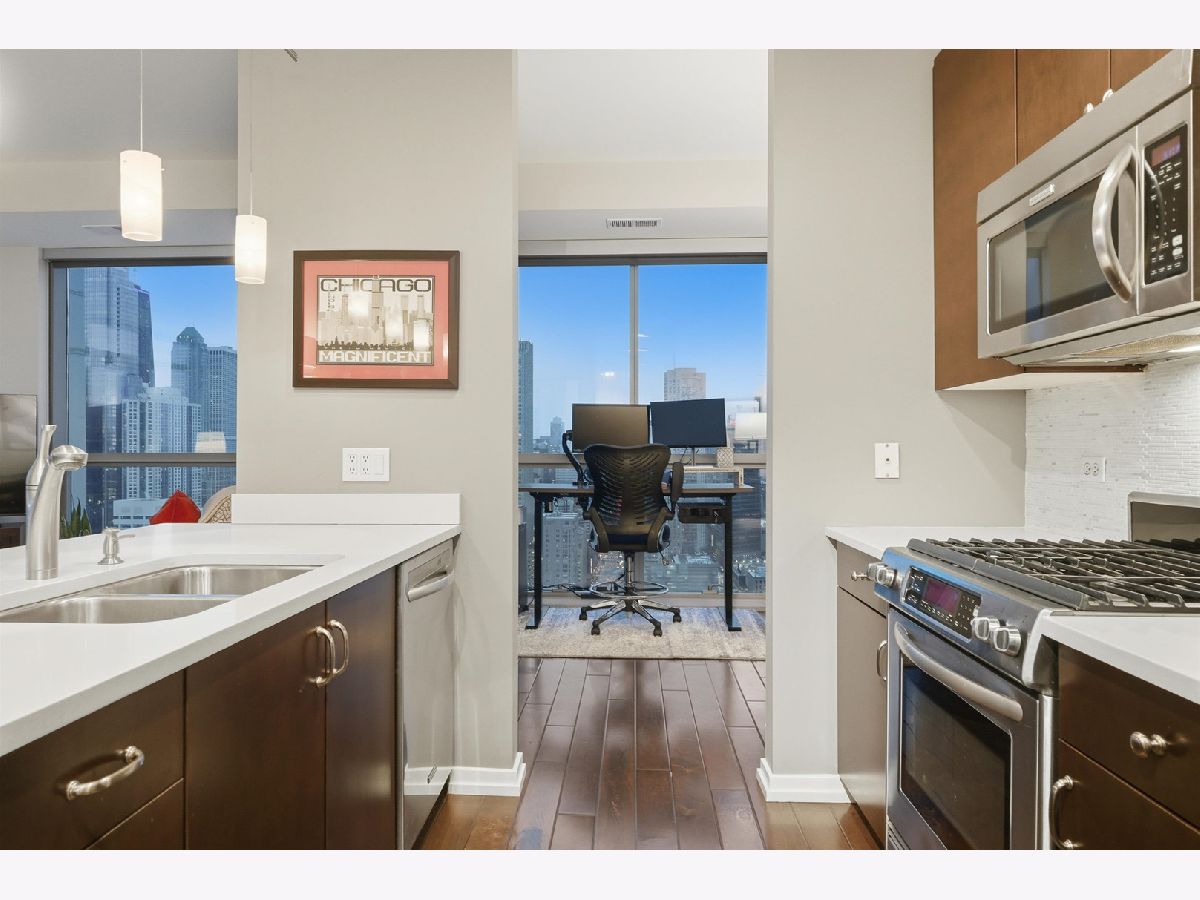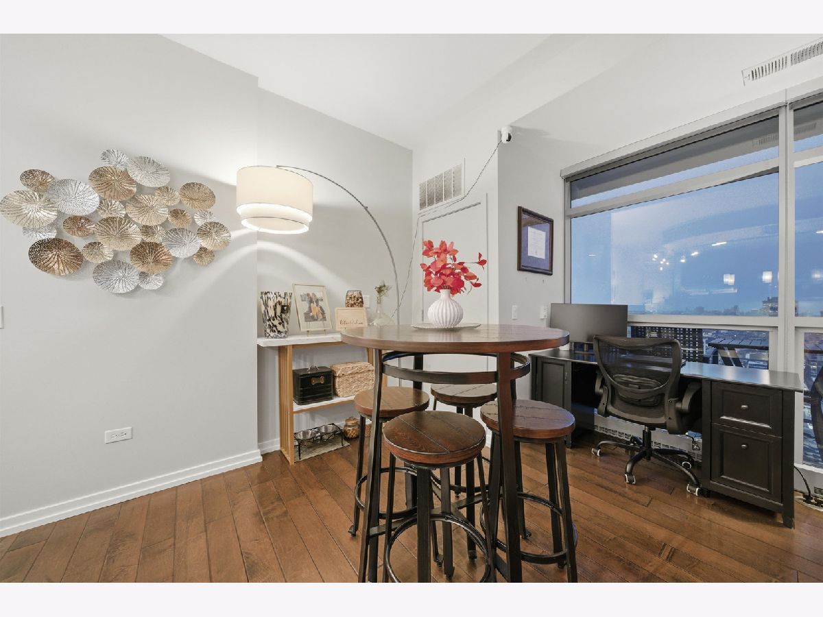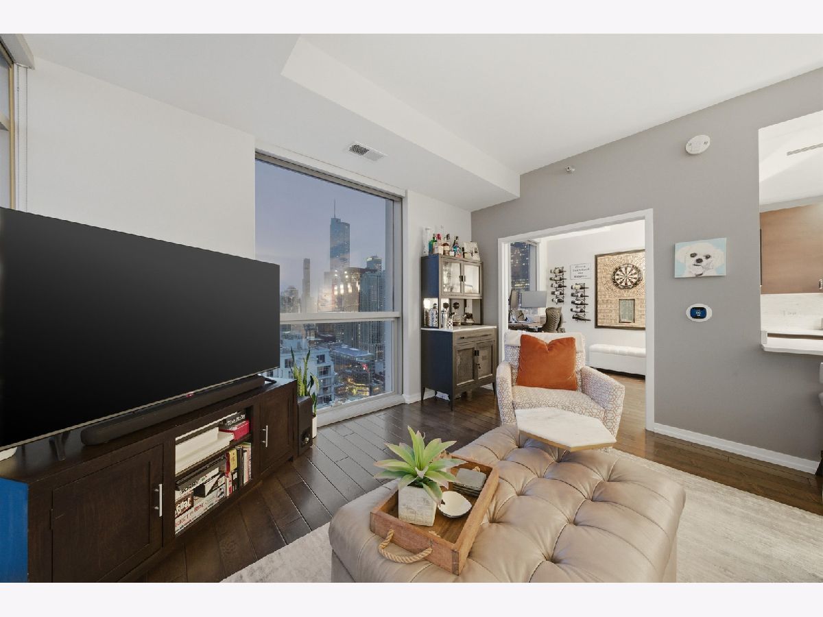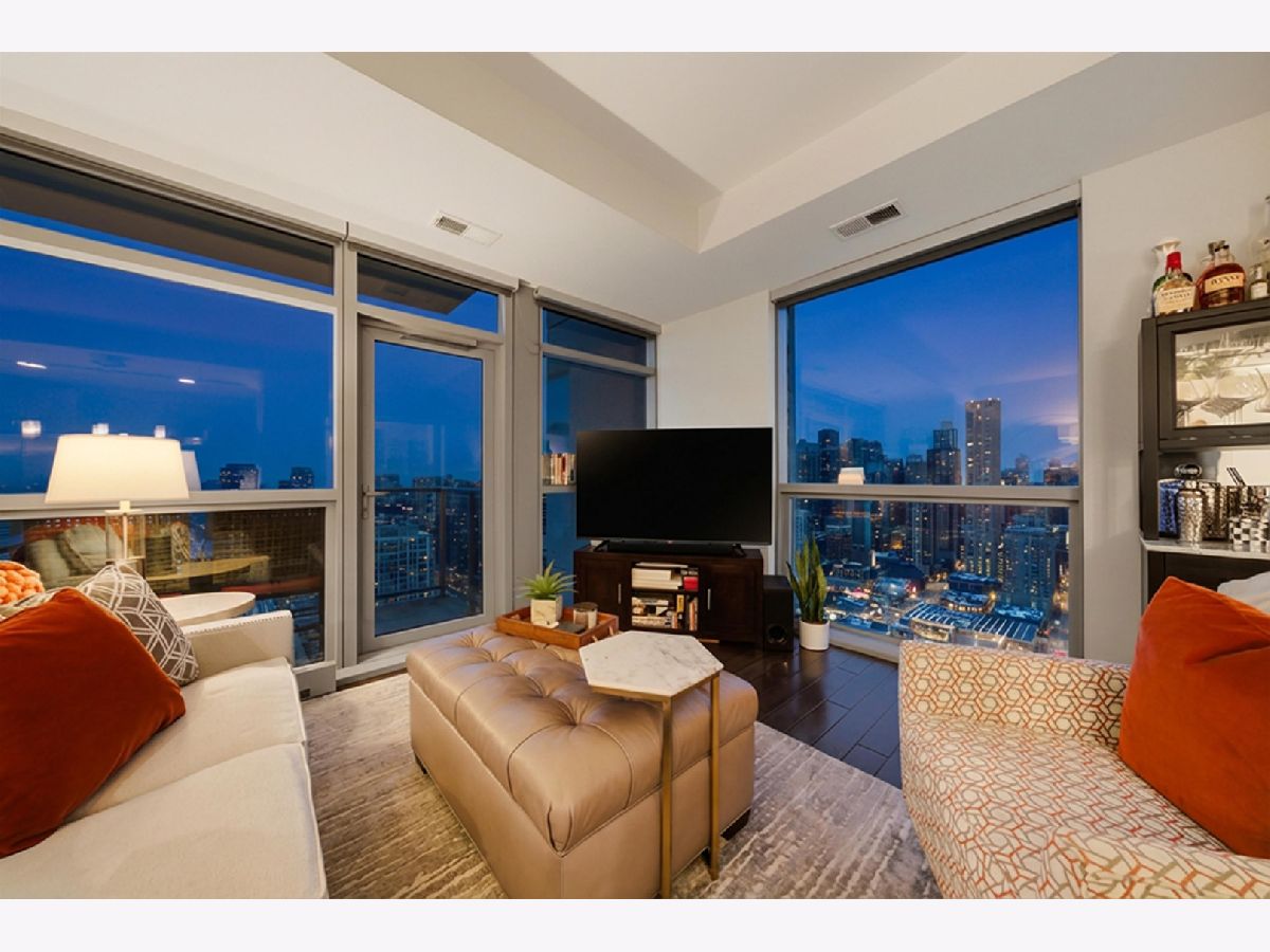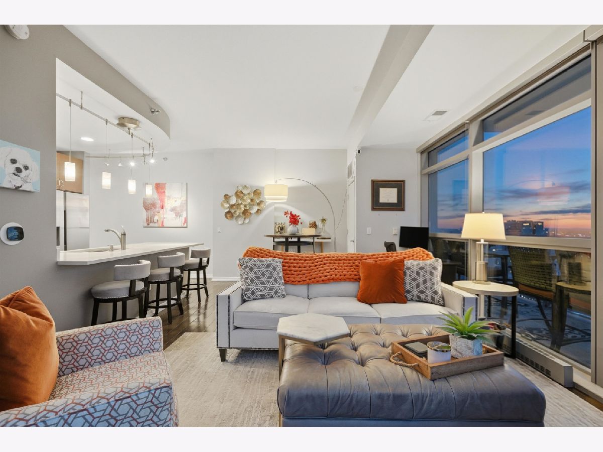 Highly sought-after corner residence at the desirable Silver Tower, showcasing breathtaking north and east city skyline views. This stunning 1-bedroom + DEN, 1-bath home is a must-see! Beautiful hardwood floors run throughout the kitchen, living area, and second bedroom. The updated chef's kitchen features generous counter space, abundant cabinetry, and stainless steel appliances. Floor-to-ceiling windows flood every room with natural light and showcase the spectacular views from every angle. Step out onto your private terrace and take it all in - the skyline backdrop is unforgettable. The spacious primary bedroom offers excellent closet space, while the versatile second bedroom works perfectly as a home office or guest room. An updated bathroom completes this thoughtfully designed layout. Deeded garage parking available for an additional $35k. Silver Tower is a full-amenity building featuring 24-hour door staff, an on-site engineer, fitness center, two sun decks, EV charging station, guest parking, and additional storage. Enjoy unbeatable proximity to East Bank Club, the Chicago Riverwalk, dog parks, restaurants, Target, Michigan Avenue, Lake Shore Drive, and Oak Street Beach. An incredibly convenient location - truly a dream condo. Be sure to explore the property in 3D - click the 3D tour button to virtually walk through every detail.