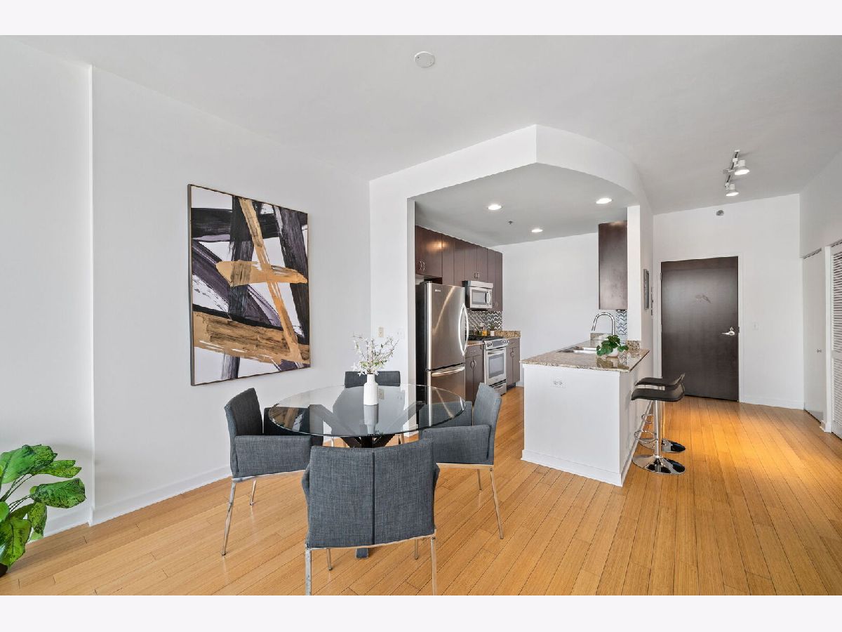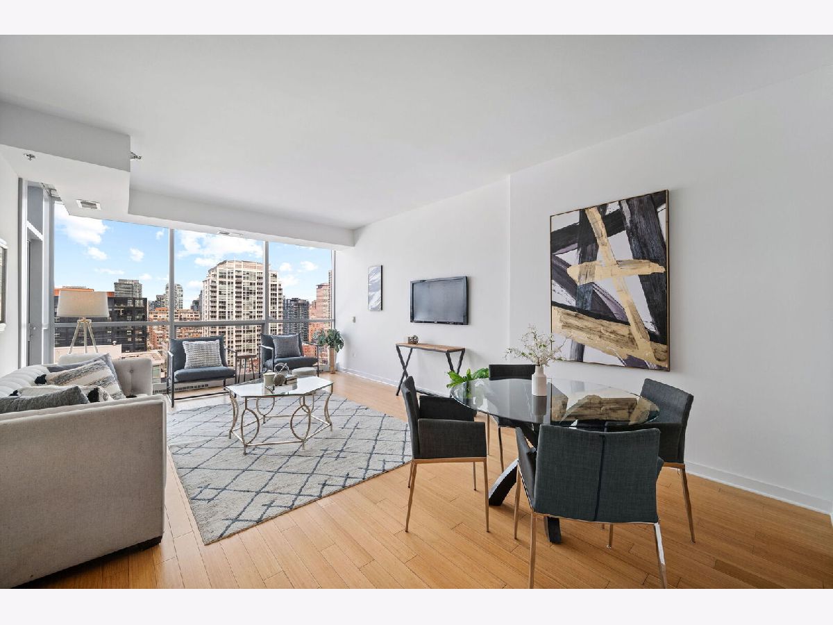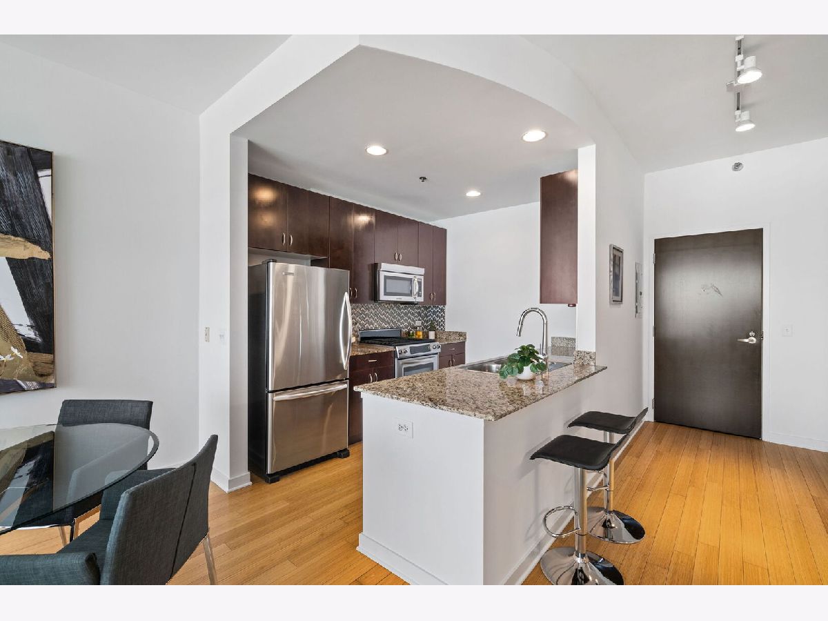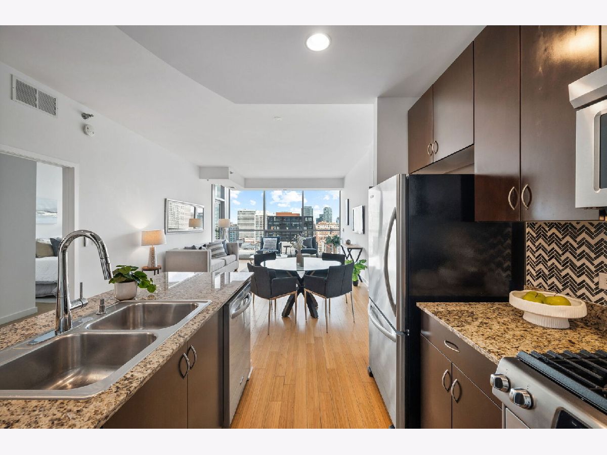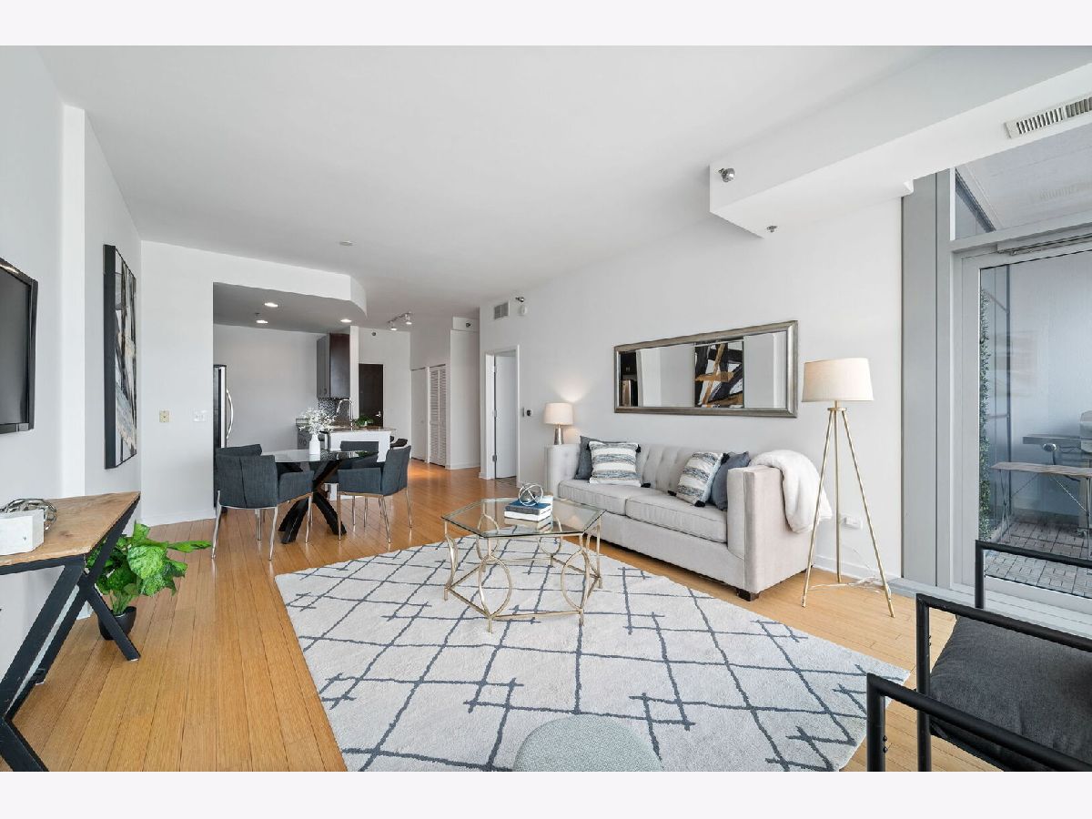 Spacious one-bedroom condo in one of River North's most desirable buildings - Silver Tower. This floor plan offers an open kitchen, living, and dining room - perfect for entertaining. Kitchen boasts custom cabinetry, stainless steel appliances, and granite countertops. Engineered hardwood floors, floor to ceiling windows with stunning views complete the living/dining room. Escape outdoors on your private balcony! Washer/dryer is conveniently in the unit. This building offers 24-hour door staff, management on-site, 24-hour fitness center & a gorgeous rooftop deck with grills, a fireplace, and lounge areas. This home is steps from CTA stops, East Bank Club, restaurants, coffee shops & the nightlife River North has to offer. Parking is $25k and must be sold with the unit.