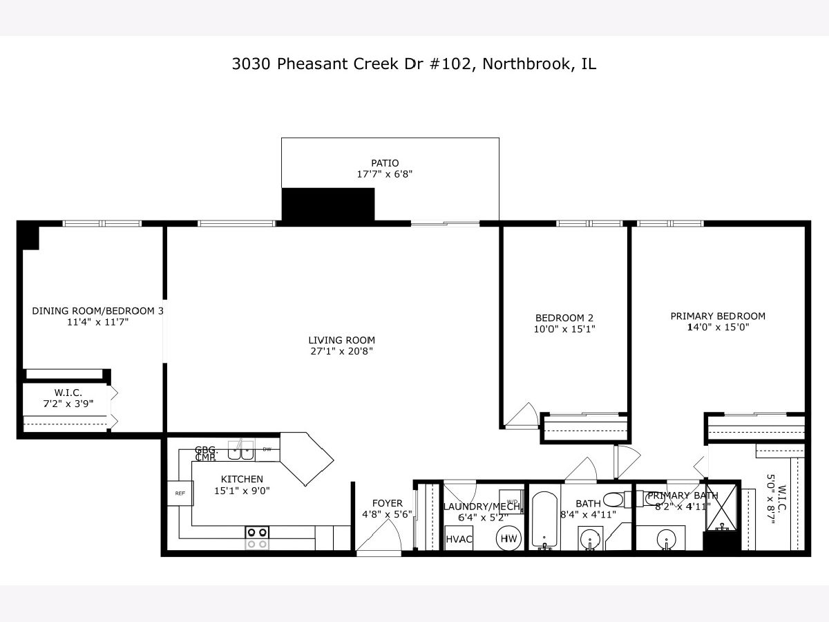 A 3 Bedroom Showcase!!! Enjoy one floor, ranch-like living in one of the largest units available sought-after Pheasant Creek has to offer! This popular community, filled with fun amenities including two outdoor pools, an active clubhouse with on-site management plus tennis, pickleball and basketball courts, is also just blocks away from nationally acclaimed District #27/225 public schools, restaurants, shopping and the gorgeous, newly redone Heritage Golf Course-it just doesn't get any better! Be impressed the moment you step into this remodeled beauty! This extra-large condo, the rarely offered 3 bedroom model, offers a wonderful open floor plan perfect for today's way of living with walls removed making for a trendy, open look. Gorgeous luxury planked vinyl flooring and recessed lighting is throughout the main living areas and the all-white kitchen, with stainless appliances and breakfast bar, opens to the stunning living room featuring great room proportions that could easily accomodate a dining table, too if desired! Oversized windows overlook the lush grounds and glass doors open to a private patio just steps to one of the sparkling pools. Nearby is the formal dining room (which could be converted back to the 3rd bedroom or used as an office--see virtually staged pics) and has a large, walk-in closet. There are two additional, spacious bedrooms along with two full baths in this unit. The primary suite, with its own private bath, boasts two large closets including a big walk-in. There is a convenient in-unit laundry and heated parking (space #111--Perlman) along with storage in the lower level. Recent updates include: New ('25) Samsung oven with convection & built-in air fryer, new ('24) luxury 7"x60" vinyl planked flooring, new ('24) Karastan carpeting in bedroom #2, new ('22) Kitchenaid dishwasher, new ('22) 50 gallon hot water heater, new ('24) window treatments in living room and most all has been freshly painted throughout. Just unpack and move right into this sought-after main floor unit that truly feels like a single family ranch home--without the maintenance! You will love it!