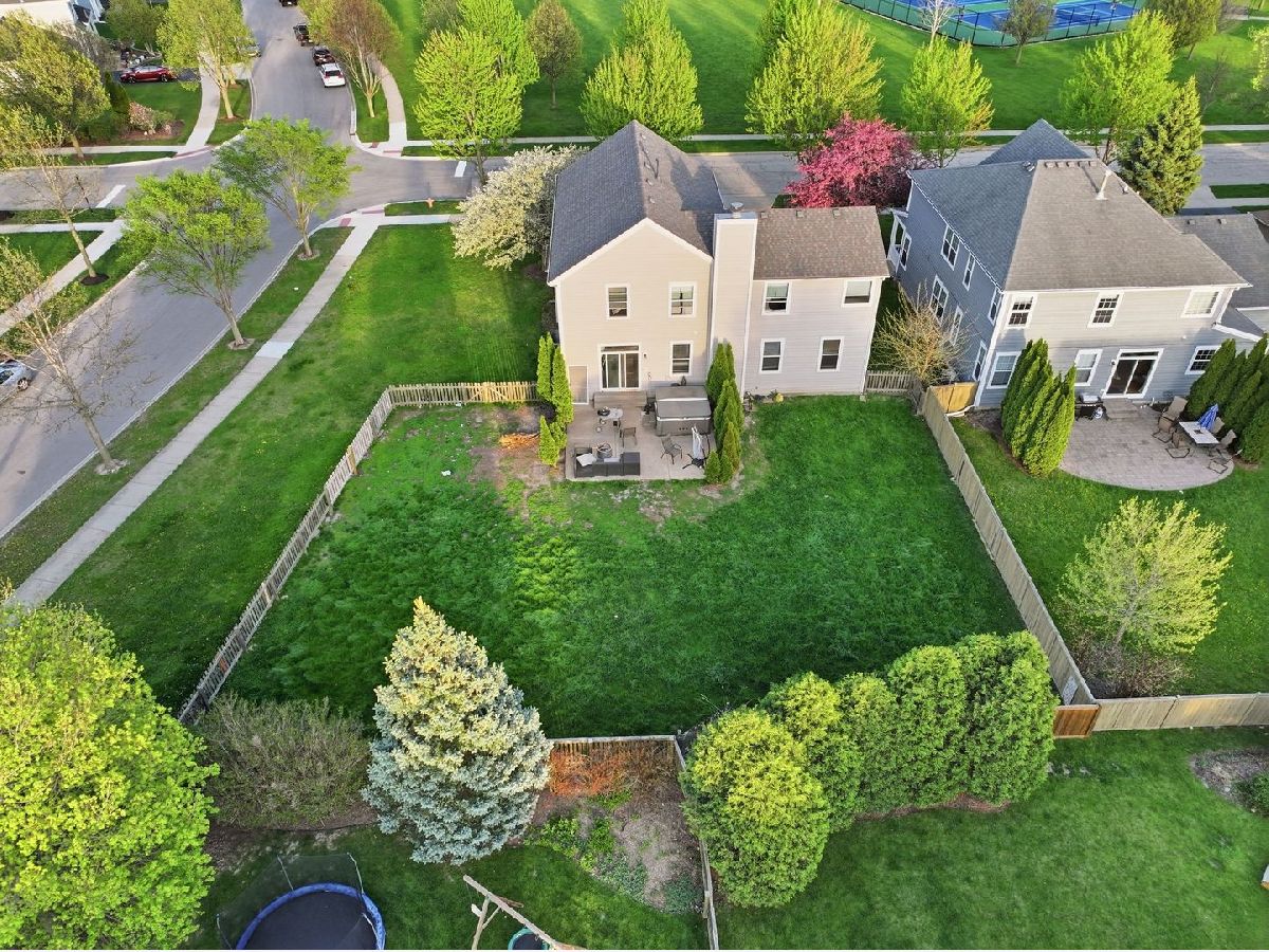 Outstanding location! Deep corner lot with fenced in yard and across the street from park. Huge big concrete patio. Home has newer architectural shingled roof, furnace, ac and hot water tank. Exterior door with windows above. Vinyl flooring t/o 1st floor and 2nd floor loft. Kitchen features 42" cabinets, quartz counter tops, tiled back splash, window above sink, SS appliances and deep SS sink. Island center with breakfast bar. Sliding glass door to backyard. Pantry closet. Family room features fireplace. First floor den or bedroom. 9 ft ceilings t/o 1st floor. 6 panel doors. Master bedroom can accommodate oversize furniture. In addition, huge walk-in plus 2.more closets (holy crap). Master bath has double sinks, whirlpool tub, separate shower. In addition, 3 other bedrooms are nice size plus a finished basement. Photographer removed some furniture and clutter from the pics