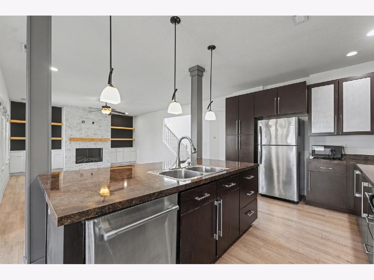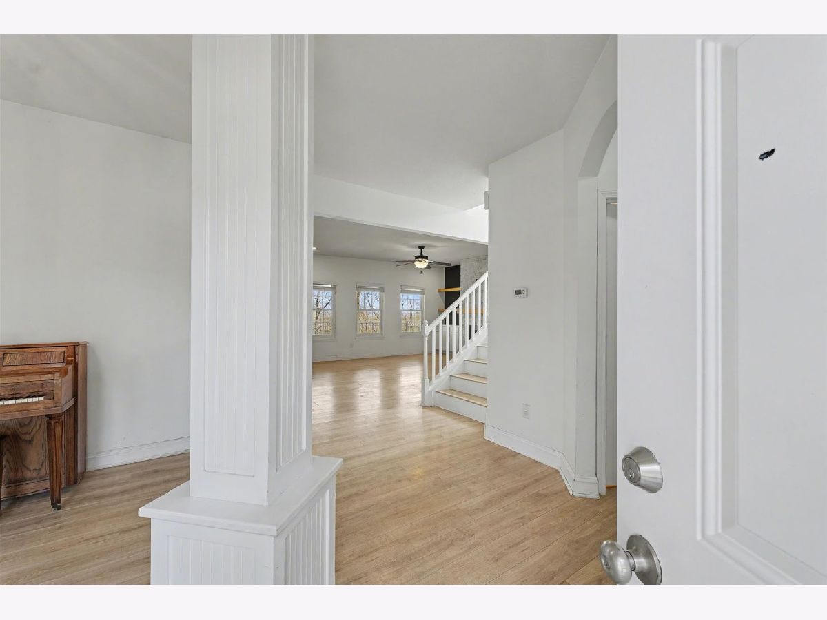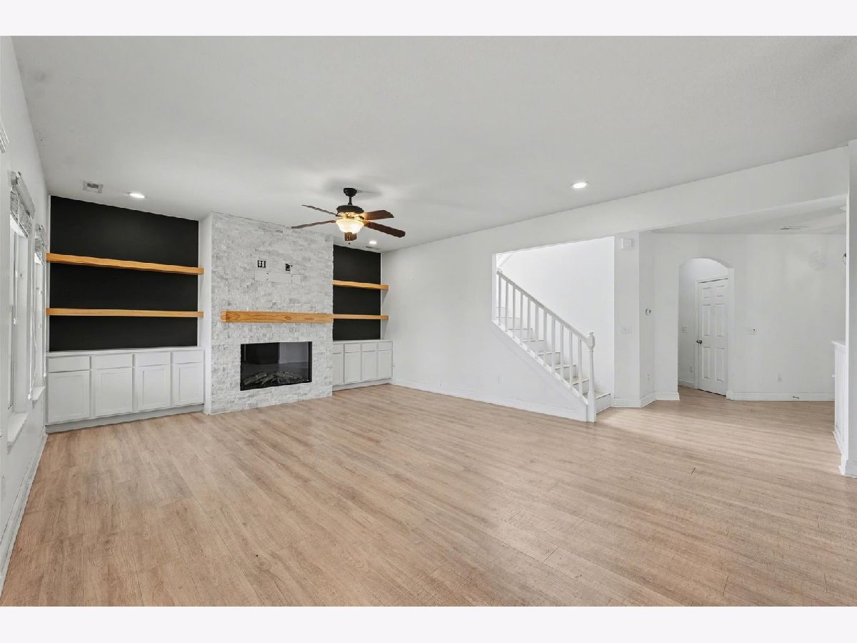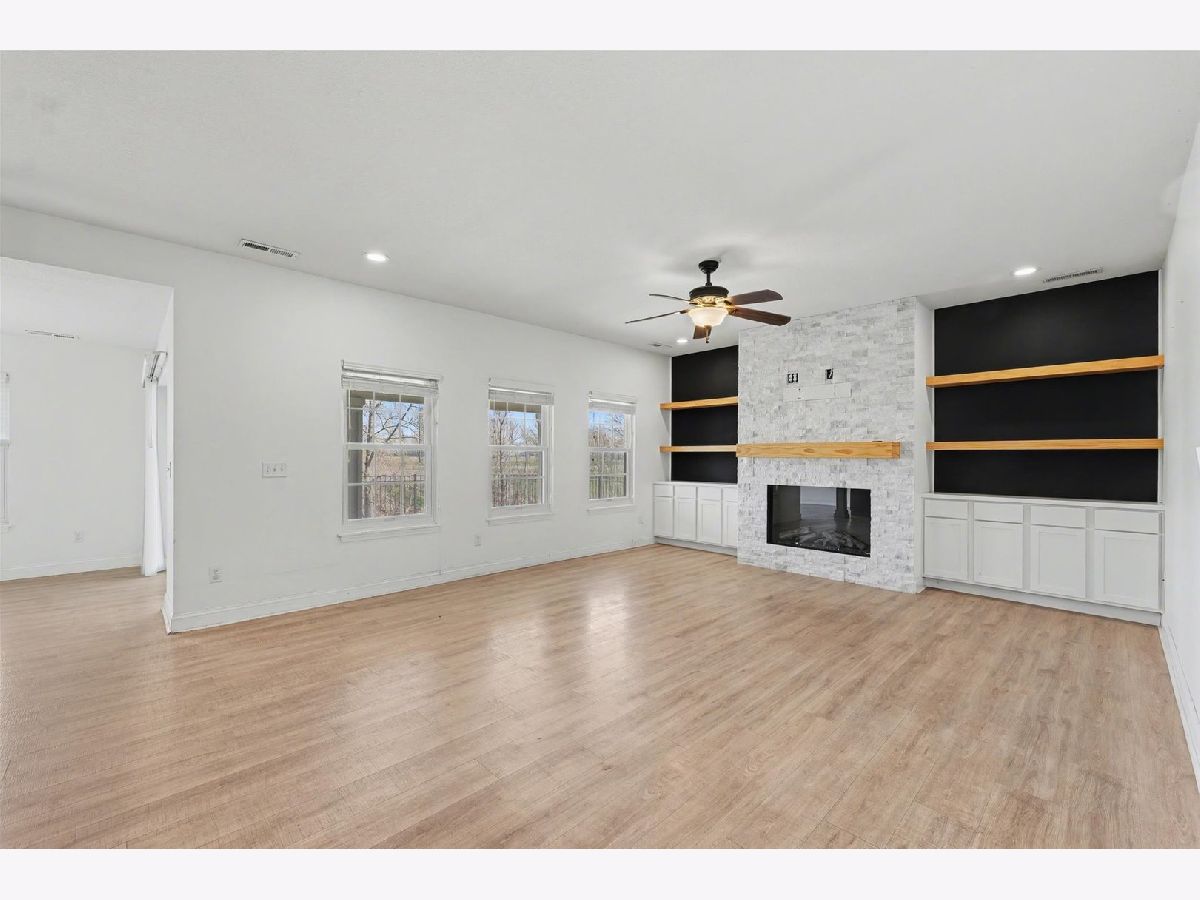 Welcome home to this beautifully updated 3-bedroom, 2.5-bath residence in the highly desirable Ashland Park subdivision. From the moment you step inside, you'll appreciate the bright, airy feel and thoughtful design. Just off the entry, a versatile flex space with custom-built-in cabinetry offers the perfect spot for a home office, music room, or playroom. The heart of the home features an expansive open-concept layout that seamlessly connects the kitchen, dining area, and family room, complete with new custom-built-ins, making it ideal for both everyday living and entertaining. Step outside to the covered patio and enjoy effortless indoor-outdoor living. The fully fenced backyard provides plenty of space for pets to roam, while mornings can be spent sipping coffee as the sun rises over the peaceful landscape. In the warmer months, you'll love harvesting fresh raspberries, blueberries, and rhubarb right from your own yard. The main floor is completed by a refreshed half bath, a convenient laundry room, and additional storage space. Upstairs, a spacious landing offers endless possibilities as a second living area, office, or lounge. The primary suite is a true retreat, featuring a generous bedroom and a sleek, modern bathroom with a stunning tiled accent wall and dual vanities. Two additional bedrooms and a full bath complete the upper level. Enjoy the best of both worlds, subdivision living with easy access to shopping and dining, paired with a large backyard that opens to the tranquility of the Illinois countryside. Recent updates include new Renewal by Andersen windows and doors, a new washer, dryer, and refrigerator, custom living room built-ins, and a custom wood accent wall in the primary bedroom.