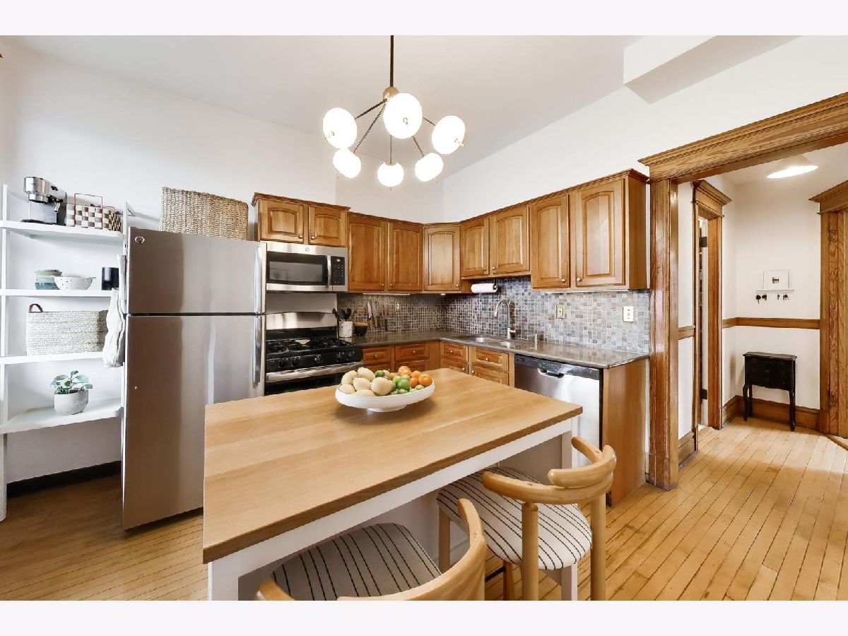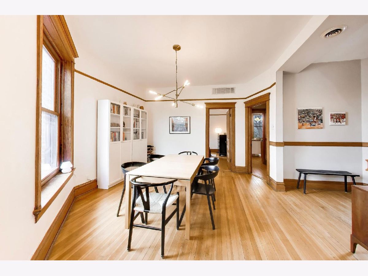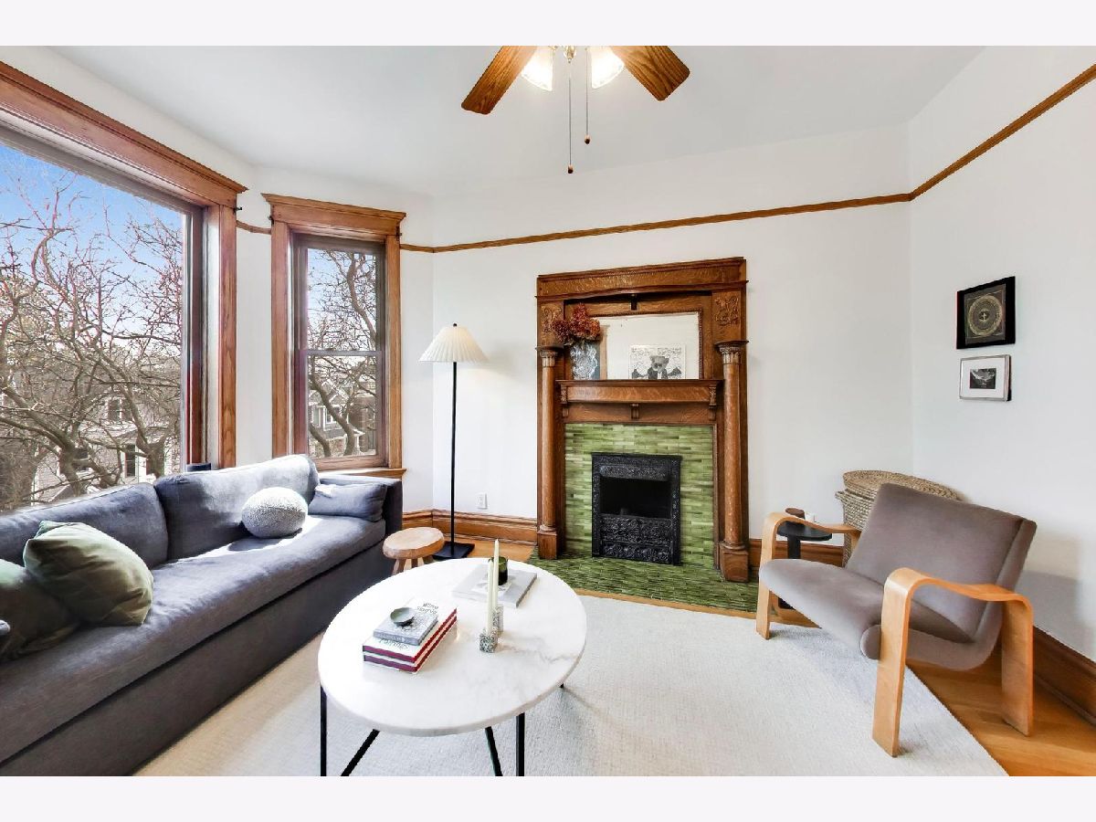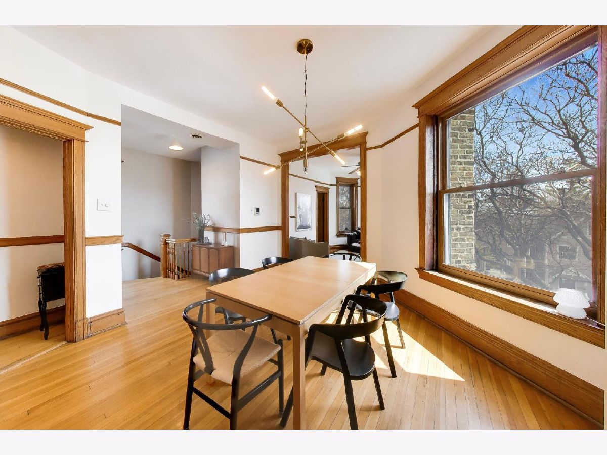 Gorgeous top-floor penthouse 2-bedroom condo set in a stunning greystone on a beautiful tree-lined street in the heart of Lakeview! This exceptional home welcomes you with a private internal staircase and foyer entry, opening to an expansive and thoughtfully designed floor plan featuring a bright living room, separate dining room, and an eat-in kitchen-perfect for both everyday living and entertaining. Flooded with natural light from unobstructed windows on all sides, this home showcases the perfect blend of timeless vintage charm and modern convenience. Rich hardwood floors, a decorative fireplace, original woodwork, and custom built-ins highlight the character throughout, while sought-after updates include central heating and cooling, in-unit laundry, and a beautifully renovated bathroom. The eat-in kitchen is equipped with cherry cabinets and stainless steel appliances, and the home's 9+ foot ceilings and oversized windows create an airy, open feel throughout. Enjoy abundant outdoor space with a spacious rear deck off the kitchen plus a private rooftop deck offering stunning city views. Additional features include easy permit street parking, additional storage, and an unbeatable location just steps to public transportation, restaurants, nightlife, retail, and so much more. Situated near highly regarded Tubman Elementary, this home truly has it all!