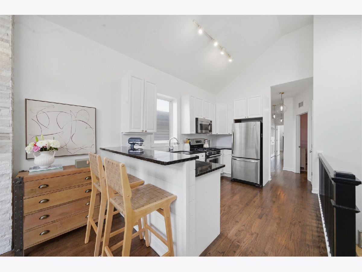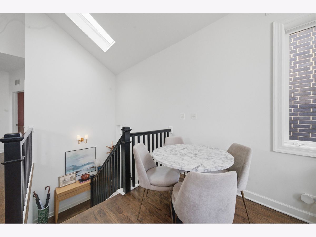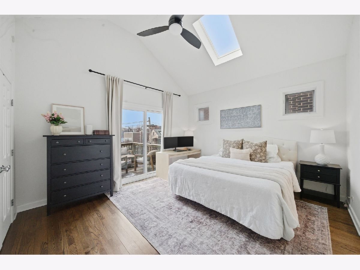 Penthouse, sun-filled 2-bedroom, 2-bath condo in a prime Lakeview location! Vaulted ceilings and skylights brighten the spacious living and dining area, featuring a cozy gas fireplace and seamless flow into a stylish kitchen. The kitchen offers white cabinetry, granite countertops, a breakfast bar, and stainless steel appliances. The primary suite includes generous closet space and an en-suite bath with a dual vanity. A well-sized second bedroom is perfect for guests or a home office, with a second updated bath conveniently located just across the hall. Hardwood floors run throughout, along with a newer washer and dryer. Enjoy a large private deck with direct access from the primary bedroom, perfect for relaxing or entertaining. Garage parking and additional basement storage are included. Recent upgrades include a new sliding glass door in the primary bedroom (2025), full renovation of the primary bath (November 2024), guest bathroom renovation (May 2025), custom closets in all bedrooms, and new paint and light fixtures throughout. Unbeatable location, just steps from the restaurants and shops of Southport Corridor! Explore the property in 3D-click the 3D tour to walk through every detail.