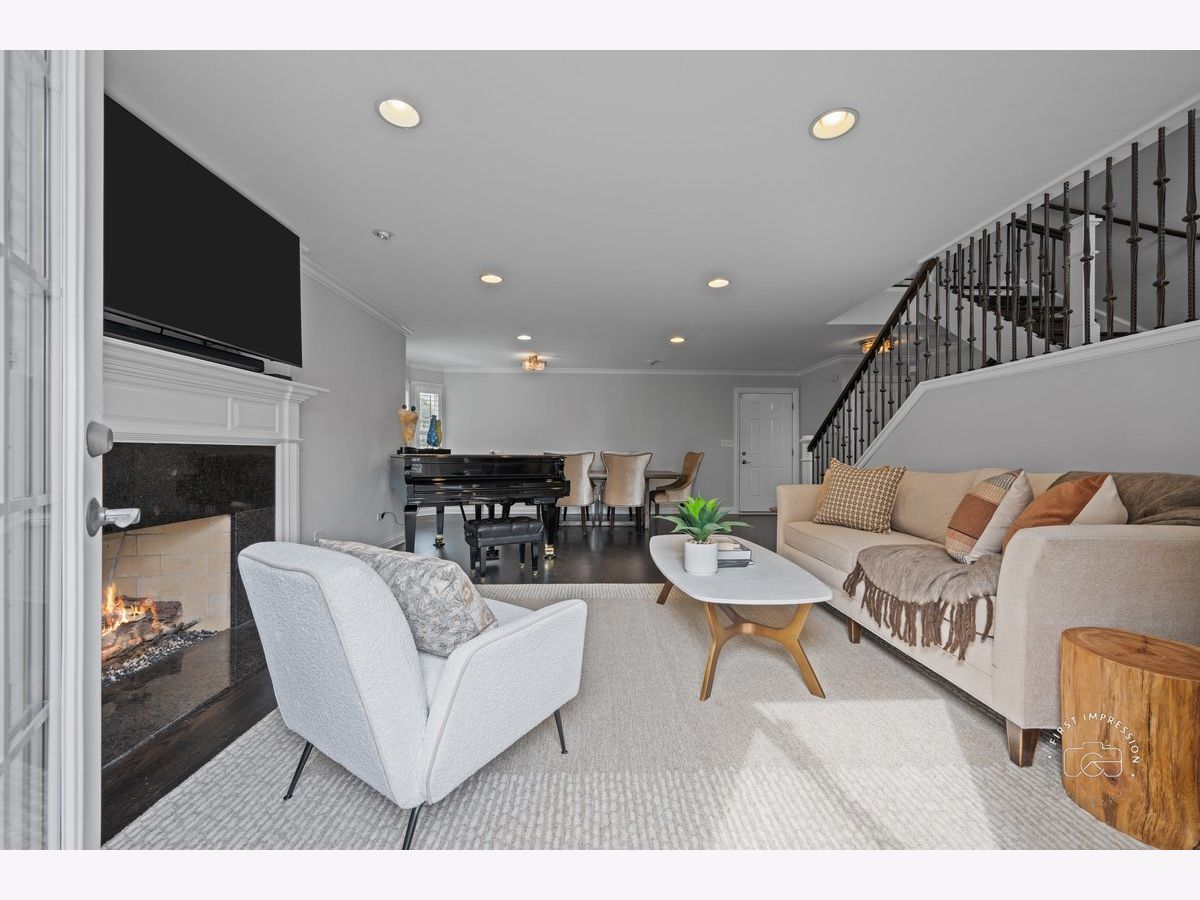Welcome to a rare, fully reimagined 4-level duplex tucked away on a quiet cul-de-sac in the heart of downtown Naperville. Luxury finishes combined with an unbeatable location just minutes from everything. With over $200K in upgrades, this home offers the feel of new construction with thoughtful design at every turn-and no HOA, a huge cost-saving advantage and added flexibility for homeowners. From the moment you enter, you're greeted by a stunning new marble tile entryway, rich hardwood flooring that flows seamlessly throughout all levels and elegant crown molding spanning every floor. Freshly painted and all new lighting, this home feels bright, modern, and completely move-in ready. Updates include kitchen cabinets, primary and main bathrooms, lighting, furnace and A/C, refrigerator, marble tile backsplash in the kitchen, marble tile in the foyer, wood flooring, and wood stairs/balusters and water heater-offering peace of mind and turnkey convenience. Designed for both everyday living and exceptional entertaining, this home features two fireplaces with gas starts-one in the inviting lower-level family room and another in the sophisticated living room. The lower-level family room also opens to a charming stamped concrete patio, creating a perfect indoor-outdoor retreat. The main level showcases an open-concept kitchen, dining, and living space that leads to a newly stained expansive deck-ideal for hosting. The chef's kitchen is beautifully appointed with white cabinetry, island with built-in microwave, under counter lighting, granite countertops, high-end stainless-steel appliances, a cooktop, and a double oven. Custom plantation shutters enhance the space, found on the sidelights by the front door and all but three windows. Upstairs, you'll find three generously sized bedrooms and a convenient third-level laundry area. The primary suite features a bay window with custom plantation shutters, tray ceiling, hardwood flooring, large walk-in closet with organization system and a luxurious ensuite bath. The primary bath has been updated with high-end finishes, a sleek large glass shower, designer tile flooring, and a jetted tub creating a spa-like experience. Additional highlights include a beautifully updated main bath with glass shower, private driveway, side-load garage, security system, front patio, and a large deck-offering multiple spaces for entertaining and relaxation. The unfinished basement includes rough-in plumbing for a future bathroom, providing endless possibilities for customization. Step outside and enjoy being just a few blocks from Centennial Beach, as well as downtown Naperville's vibrant shopping, dining, and Metra station. This rare opportunity to own a meticulously updated home in one of Naperville's most desirable locations-where every detail has been carefully curated for modern living and long-term value.