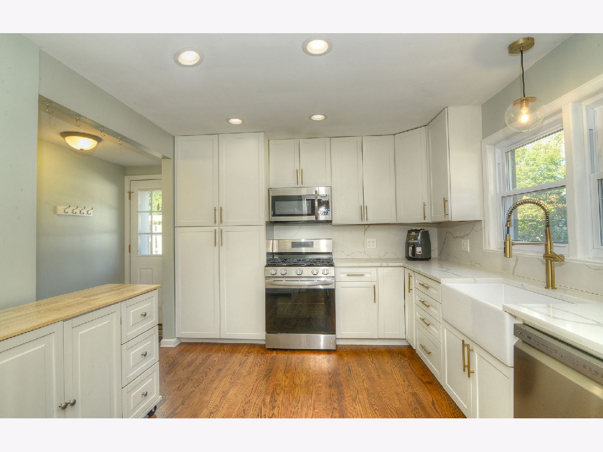 This charming 3-bedroom, 2-bath split-level home in Glen Ellyn features a bright living room with vaulted ceilings, beautiful hardwood floors, and recessed lighting. The updated kitchen boasts 42" cabinets and stainless steel appliances, while upstairs offers three spacious bedrooms and a full bath. The lower level includes a versatile family room, second bath, and laundry area. A private, fully fenced backyard and detached 2-car garage provide plenty of space for outdoor living and storage, all in a prime location near parks, schools, shopping, dining, and the Metra station. New roof in 2023, garage roof done in 2019. Seller is a licensed Real Estate Agent in the State of Illinois