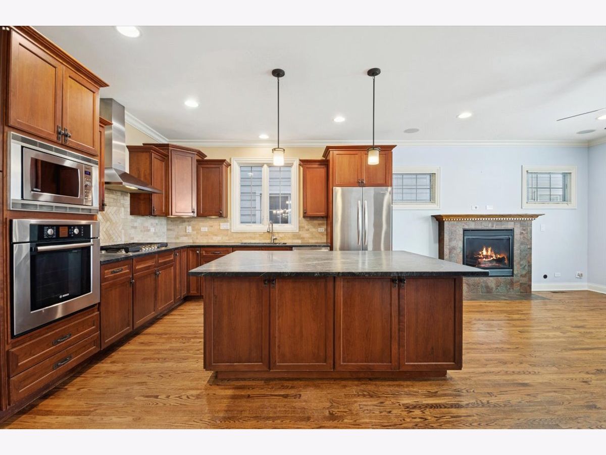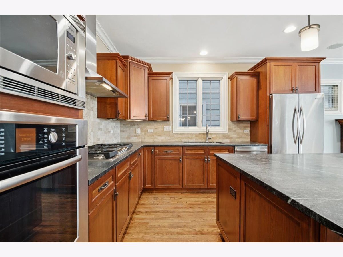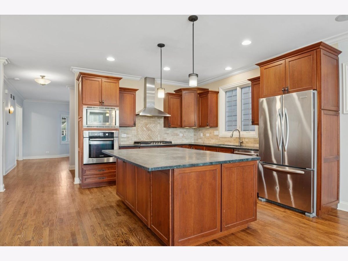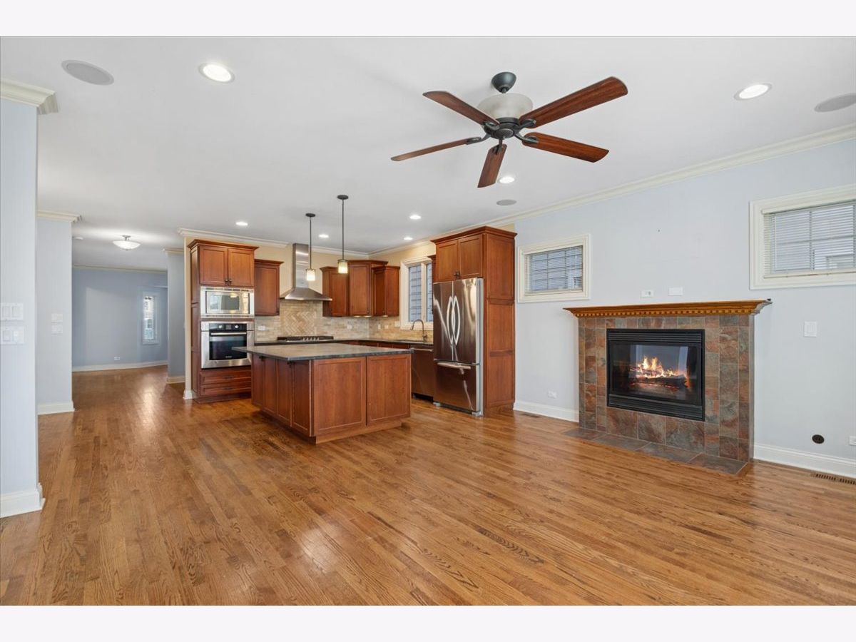 Beautiful, spacious, and light-filled, quality Cherryfield-built home -- walking distance from all that's fantastic about downtown Forest Park. Steps from cafes, boutiques, restaurants, and entertainment. Easy walk to blue and green line/METRA. If you're working at home -- you'll have plenty of space! Perfect live/work, even school from home space. 4BR, 3.5 baths. Super-functional open floor plan, high-end finishes & custom millwork. Great natural light. Lovely kitchen beautiful 42" cabinetry and stunning soapstone counters with huge island that includes deep cabinets and drawers for storage. Perfect for entertaining. Kitchen opens to welcoming family room with gas fireplace w/door to west facing deck -- ideal grilling and entertaining spot. Super bright and expansive primary suite has 15x9 walk-in closet primary bath with gorgeous travertine tile, double sink, & custom oversized shower. 2 additional, really well-sized bedrooms with large closets, and a large laundry room round out the 2nd-floor. The 3rd-floor "tree house" which is full of light and great views, has a large 4th bedroom, large closet, full bath & spacious office/play/school-at-home area. Back entry mudroom with custom cabinetry is charming and functional. Full basement (35'x23' ) with high 9' ceiling is perfect for a home gym, kids' play space, and plenty of storage. Includes a workshop. Freshly painted throughout (including awesome front porch -- enjoy those gorgeous late summer/early fall evenings outside). Amazing space!