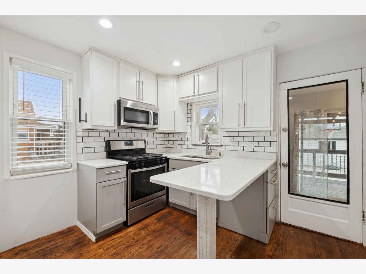 Beautifully updated 4-bedroom, 2-bath home located in the desirable Montclare area. Corner lot, Recent upgrades include a fully remodeled kitchen (2022), new water heater, brand-new carpeting, and fresh interior paint throughout. The backyard features new concrete, a spacious deck, and an attractive pergola-perfect for outdoor entertaining. Enjoy hardwood flooring on the main level and durable laminate flooring on the second floor and basement. The back porch includes a wine cooler for added convenience. The partially finished basement offers recreational space and the potential for two additional bedrooms, providing excellent flexibility for guests, home office, or extended living. Don't miss this incredible opportunity to own a move-in-ready home with room to grow. Agent owned.