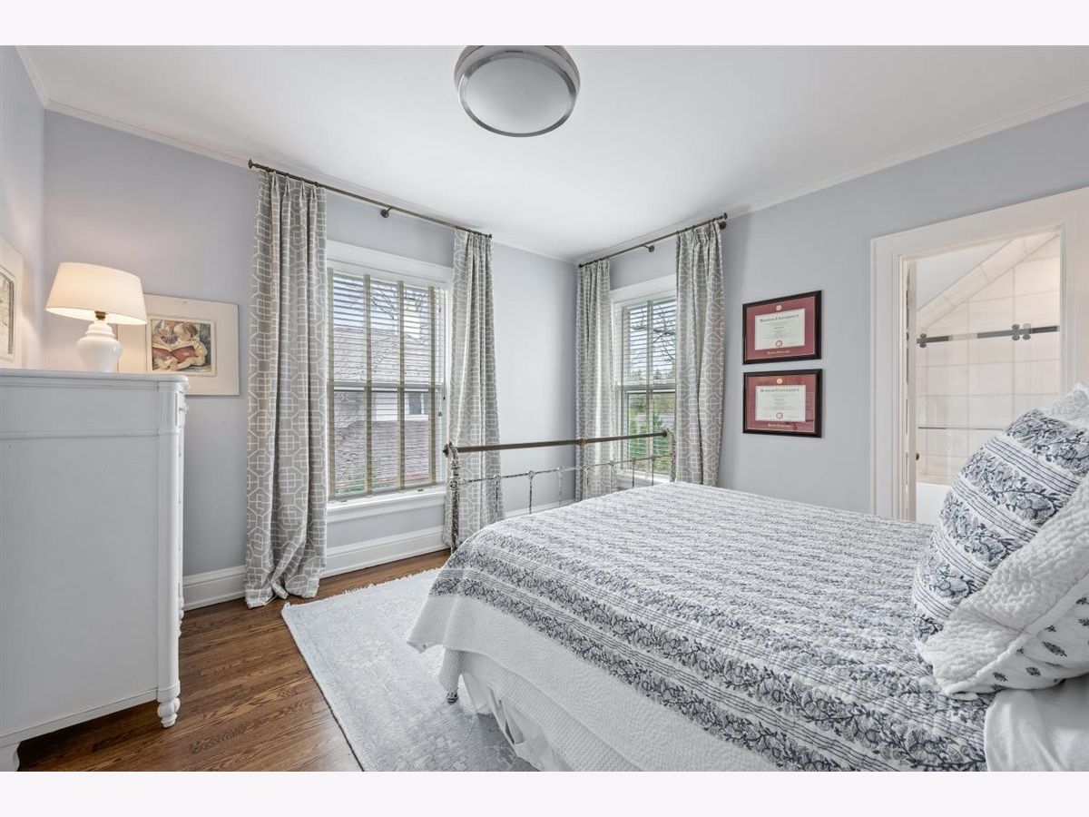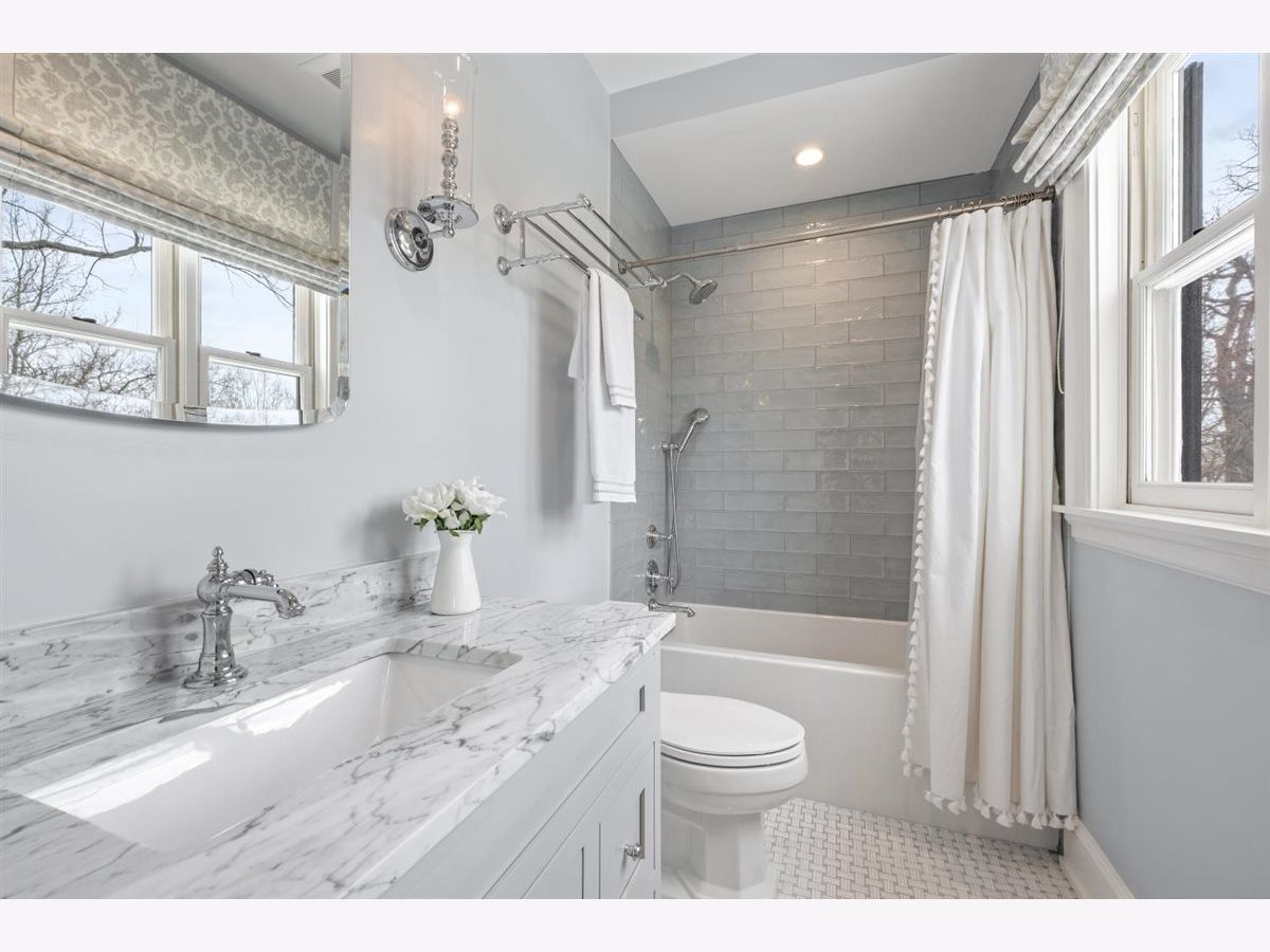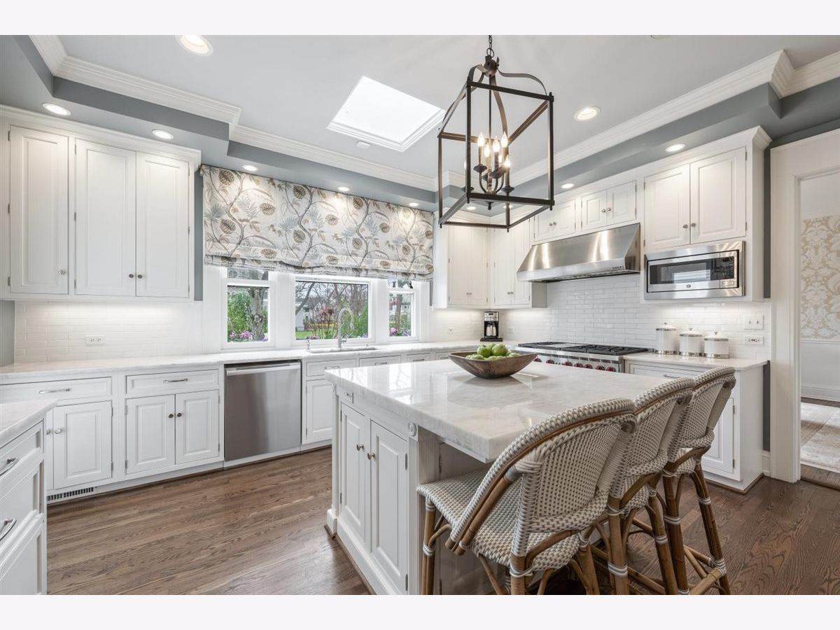 East Kenilworth gem! Lovely, classic colonial with extensive recent renovation by Elmshire builders. Welcoming, newly-rebuilt, front porch leads to the center foyer that opens to a gracious formal living room with marble surround fireplace and wood mantle. First-floor office/den with fireplace and built-in bookshelves. Spacious dining room with large south-facing bay window allowing for lots of natural sunlight. Updated gourmet chef's kithcen with quartzite countertops plus island with extra storage and additional seating, top-of-the-line appliances plus large separate breakfast room with custom built-ins for additional storage. The adjacent family room is perfect for large gatherings! This room has lots of character and charm with south-facing windows, fireplace with mantle, and doors that open to a beautifully landscaped yard with large bluestone patio, fire pit, outdoor TV plus a custom BBQ grilling area. Nicely sized mudroom with two closets leads to the lower level with a second laundry room, half bath, and recreation and exercise area. The powder room completes the first floor. The second floor features an updated primary suite with luxurious spa bath/beautiful marble mozaic tile flooring, double sink with marble countertops, large soaking tub, and and oversized steam shower. Convenient second-floor laundry room with full-size washer and dryer and extra storage space. There are 3 additional nicely-scaled bedrooms--all with updated full en-suite bathrooms. One of the bedrooms has an office/cozy sitting room--a perfect suite for guests. The third floor is a nice retreat with a 5th bedroom plus studio/office and a newer full bath. This very special Kenilworth home is the perfect blend of old world charm and character with all the modern and updated conveniences that today's buyers are looking for. Convenient A+ east location--walk to schools, trains and beaches. A true gem! Turnkey perfection.
