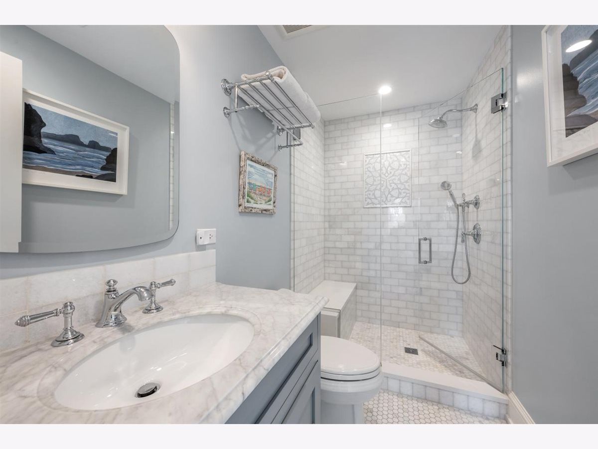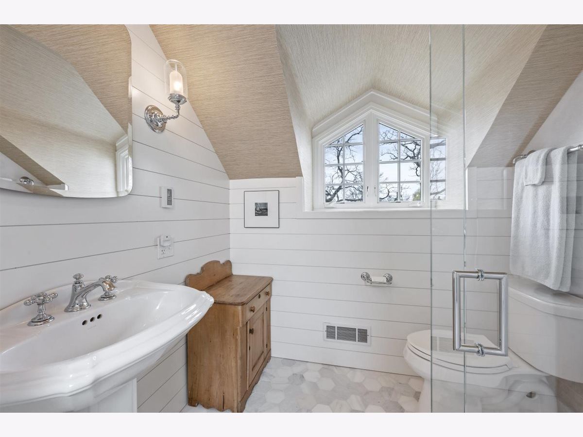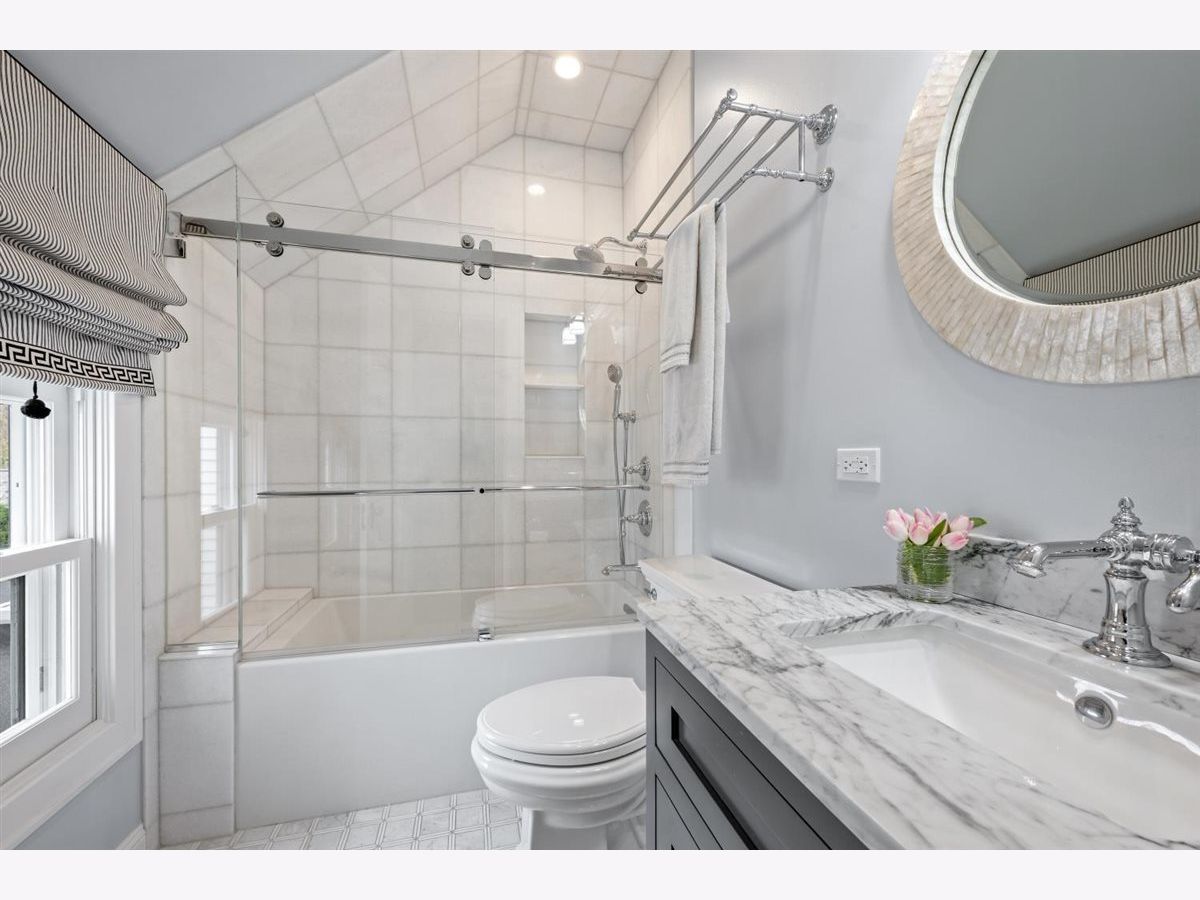 East Kenilworth gem! Lovely, classic colonial with extensive recent renovation by Elmshire builders. Welcoming, newly-rebuilt, front porch leads to the center foyer that opens to a gracious formal living room with marble surround fireplace and wood mantle. First-floor office/den with fireplace and built-in bookshelves. Spacious dining room with large south-facing bay window allowing for lots of natural sunlight. Updated gourmet chef's kithcen with quartzite countertops plus island with extra storage and additional seating, top-of-the-line appliances plus large separate breakfast room with custom built-ins for additional storage. The adjacent family room is perfect for large gatherings! This room has lots of character and charm with south-facing windows, fireplace with mantle, and doors that open to a beautifully landscaped yard with large bluestone patio, fire pit, outdoor TV plus a custom BBQ grilling area. Nicely sized mudroom with two closets leads to the lower level with a second laundry room, half bath, and recreation and exercise area. The powder room completes the first floor. The second floor features an updated primary suite with luxurious spa bath/beautiful marble mozaic tile flooring, double sink with marble countertops, large soaking tub, and and oversized steam shower. Convenient second-floor laundry room with full-size washer and dryer and extra storage space. There are 3 additional nicely-scaled bedrooms--all with updated full en-suite bathrooms. One of the bedrooms has an office/cozy sitting room--a perfect suite for guests. The third floor is a nice retreat with a 5th bedroom plus studio/office and a newer full bath. This very special Kenilworth home is the perfect blend of old world charm and character with all the modern and updated conveniences that today's buyers are looking for. Convenient A+ east location--walk to schools, trains and beaches. A true gem! Turnkey perfection.