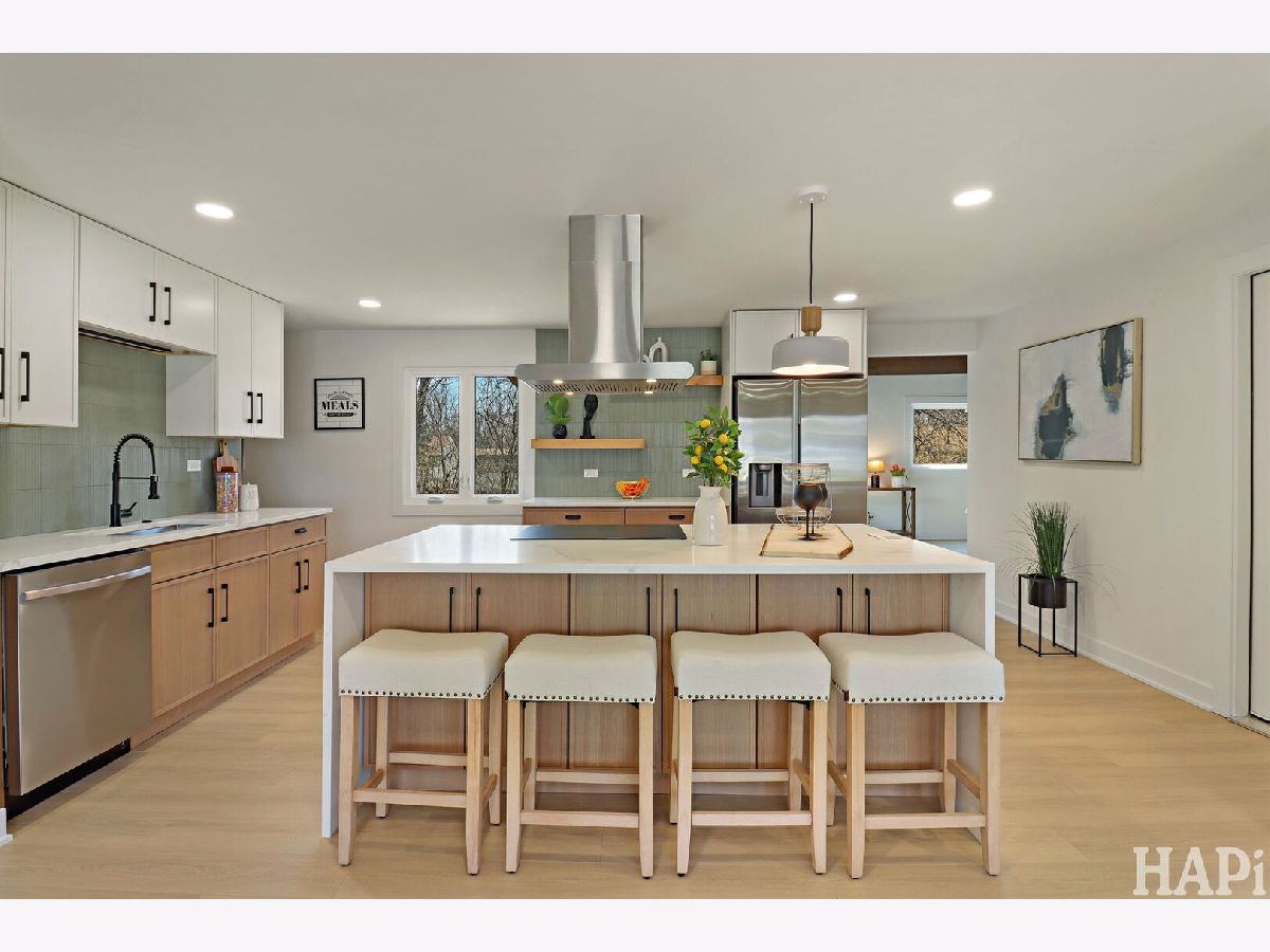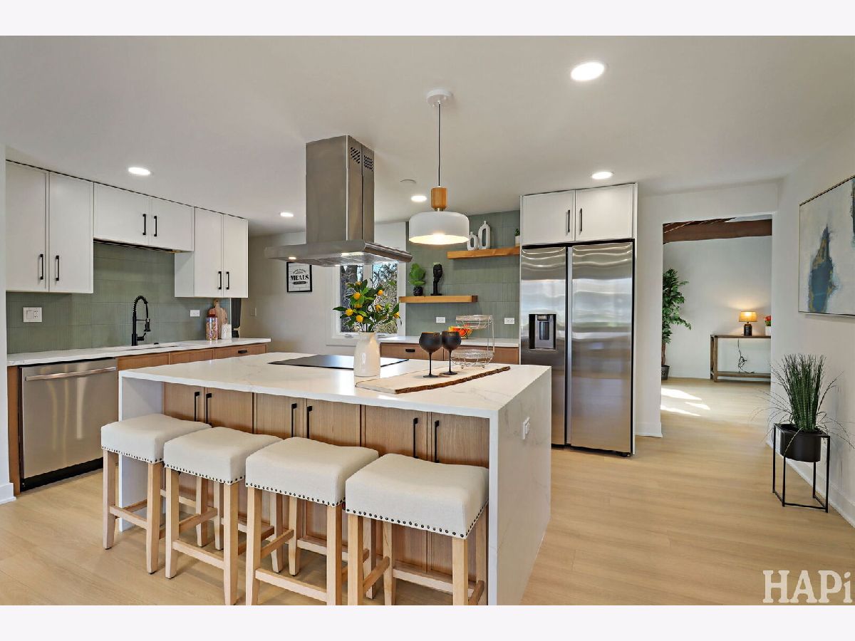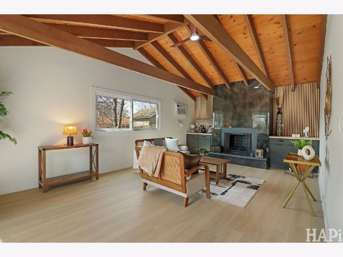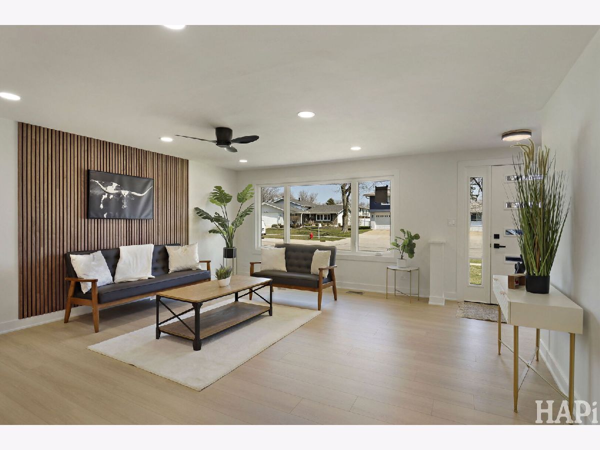 Beautifully updated one-story home, move-in ready for its new owner! As you step inside, you're welcomed by an open-concept layout featuring a spacious kitchen with a large island-perfect for everyday living and entertaining. The kitchen showcases stunning brand-new cabinetry, quartz countertops, and all new appliances. To the left of the entry, you'll find three generously sized bedrooms, along with two fully renovated bathrooms and a conveniently located mechanical closet. Prepare to be impressed by the expansive sunroom with soaring cathedral ceilings and a gorgeous wood-burning fireplace as its centerpiece-an ideal space to relax year-round. Additional highlights include an oversized 2.5-car attached garage, brand-new windows and sliding doors, and a new AC unit. The in-wall HVAC unit serving the sunroom. Step outside to a beautifully private backyard with mature trees and a newly installed paver patio-perfect for outdoor gatherings. Located within the highly desirable Schaumburg school district, and just minutes from parks, restaurants, shopping, major expressways, and entertainment. Turnkey home with nothing to do but move in.