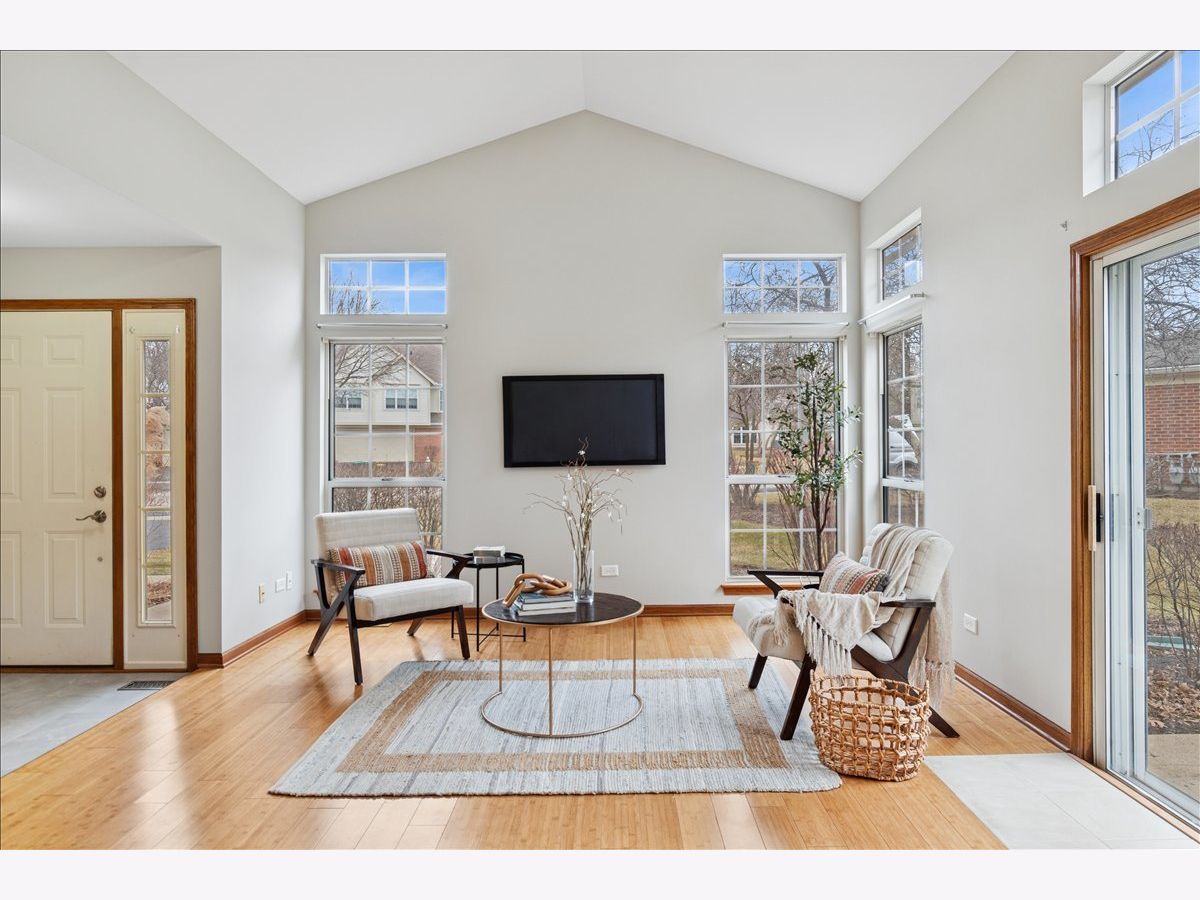 Bright and updated ranch end unit in the sought-after Maple Hill community. This move-in-ready home features fresh paint throughout, new bamboo flooring in the living and dining areas, and new premium vinyl flooring in the kitchen and foyer. The open floor plan includes vaulted ceilings and transom windows that bring in abundant natural light. The kitchen offers stainless steel appliances, a breakfast nook, and a large walk-in pantry. The primary bedroom includes a spacious walk-in closet and a newly renovated private bath with ceramic tile surround and a clear glass shower door. A second bedroom is located near the full hallway bath. The laundry room provides extra space for storage and organization. New water heater installed in January 2026. The two-car garage includes interior access for convenience. Enjoy the private patio and the quiet surroundings. Maple Hill offers a community pool and clubhouse, and exterior maintenance, lawn care, and snow removal are included. Conveniently located near Kress Creek Farms Park, Blackwell Forest Preserve, St. James Farm, shopping, dining, entertainment, and I-88.