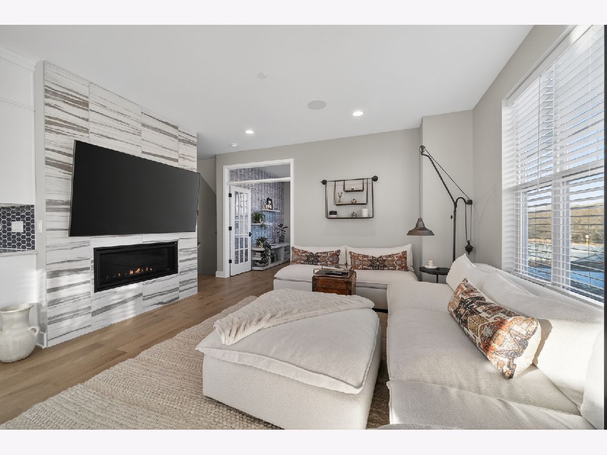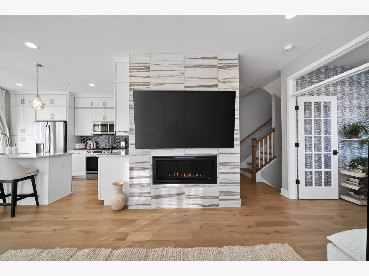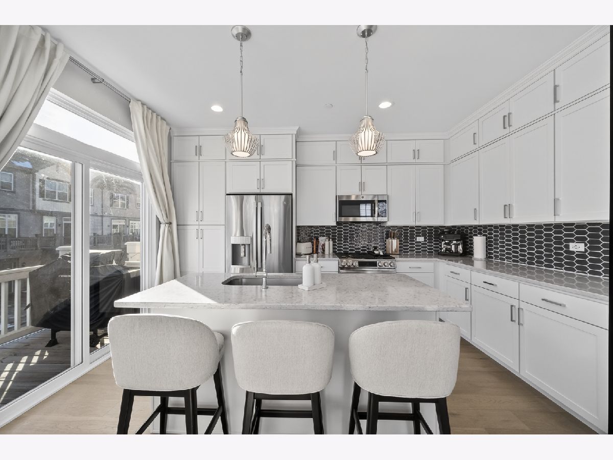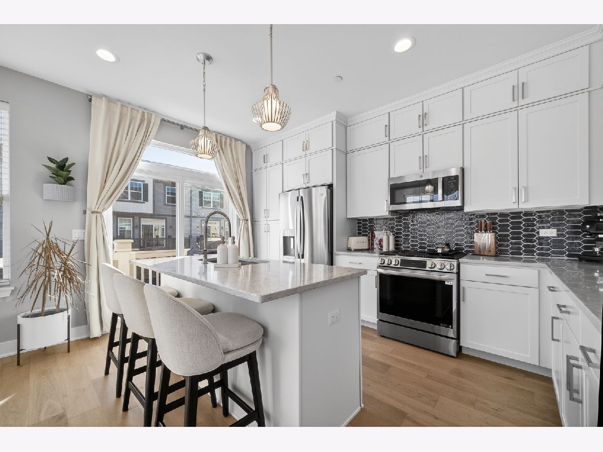Rare opportunity to own a professionally decorated Warrington model home loaded with premium upgrades, designer finishes, and thoughtful enhancements throughout! This stunning newer construction end-location 3-story townhome offers clean, scenic views of the walking path and protected marshland, providing privacy and natural surroundings in a highly desirable setting. The sun-drenched main level showcases an open-concept layout highlighted by 9' ceilings, abundant natural light, and wide plank white oak flooring throughout. The chef's kitchen is beautifully designed with floor-to-ceiling stacked white cabinetry featuring soft-close doors and drawers, crown molding, elegant veined quartz countertops, modern picket tile backsplash, under-cabinet lighting, Hansgrohe premium faucet, spacious eating area, and center island with seating. A full GE stainless steel appliance package includes gas range, vented microwave, dishwasher, refrigerator, and second-floor washer and dryer. Sliding glass doors lead to the expansive 5' x 18' balcony, perfect for entertaining, grilling, or relaxing outdoors. The inviting and centrally located great room serves as the focal point of the home, showcasing a stunning contemporary remote controlled Heat & Glo fireplace with custom floor-to-ceiling marble surround, TV mount, and built-in Klipsch in-ceiling speakers. A spacious private office, hardwire for high speed data, featuring 15-panel glass French doors and a transom window, along with a stylish powder room, completes this thoughtfully designed main level. The upper level features two luxurious bedroom suites and a conveniently located laundry closet with cabinetry. The primary suite offers a soaring vaulted cathedral ceiling, additional windows, dual custom closets with shoe storage, and a spa-inspired bath featuring dual sinks, quartz countertops, designer tilework, and an oversized glass-enclosed shower. The secondary bedroom suite includes a cathedral ceiling, generous walk-in closet with additional shoe storage and private ensuite bath with custom cabinetry, quartz counters, and marble finishes. The versatile lower-level flex space provides exceptional functionality and can serve as a media room, workout space, playroom, or potential additional bedroom. The lower level also provides direct access to the spacious 2.5-car garage. Additional highlights include custom 2" wood blinds throughout, upgraded garage door rollers providing smoother and quieter operation, and a Ring smart video doorbell and camera system offering front and rear/garage security monitoring. This exceptional home combines model-home quality craftsmanship, luxury finishes, functional living spaces, and modern smart-home conveniences in a beautifully upgraded and meticulously maintained residence.