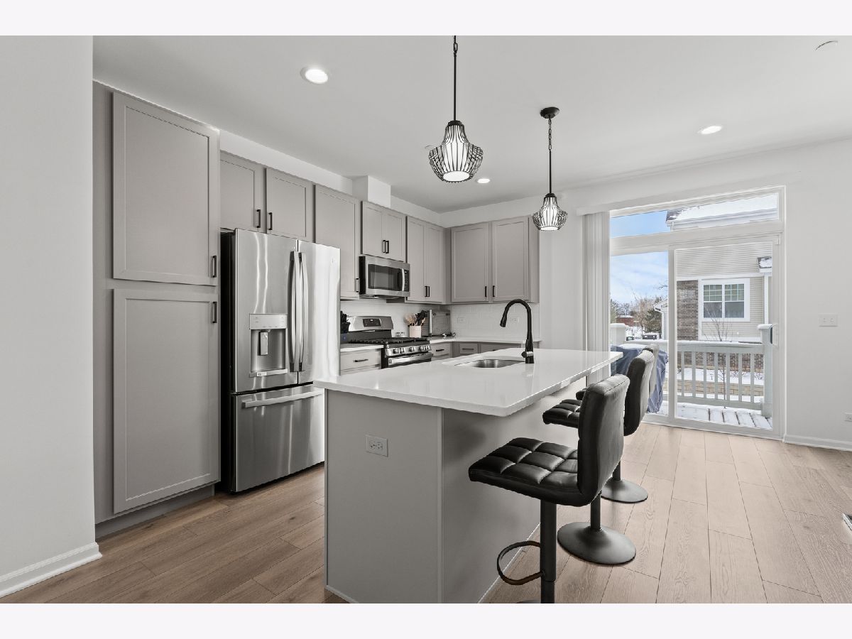 This Incredible Tri-Level Townhouse was built in 2024 and offers over 1,930 square feet of living space. The undeniable features include the transferrable 10 year builder warranty to provide a peace of mind (2 years in), the Electrical Vehicle charger that is conveniently located inside the attached 2 car garage, the spacious open concept floor plan that shows off the kitchen quartz countertops, the dark 4 inch cabinetry hardware, the mounted double sink island with a trash compacter that seats 4 comfortably, the stainless steel appliances, and the spacious dining and family area that you may rest your furniture on the mocha wooden flooring. Enjoy all the beautiful light fixtures, including the benefit of having the newer blue washer and dryer off the hallway on the 2nd floor, that is next to the master suite that provides a luxury and customized walk-in closet, and a bathroom with a roomy standing shower and double sinks. These 3 bedrooms with 2 and half baths townhouse, balcony off the kitchen and lower level recreational or family area has the style you have been waiting for! Schedule your showing now!