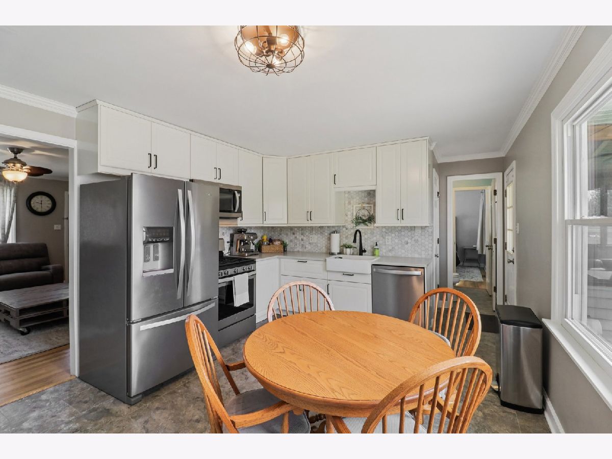 Welcome to this charming 3-bedroom, 1.5-bath ranch home in Naperville offering nearly 1,500 square feet of comfortable living space. Ideally situated between Interstate 88 and the Route 59 Metra station, this home provides exceptional convenience to commuting, shopping, dining, and the vibrant Route 59 business corridor. Step inside to find a bright, open layout featuring hardwood flooring throughout much of the main level, including the spacious living room and bedrooms. The updated kitchen, remodeled in 2018, showcases custom cabinetry, modern countertops, stainless steel appliances, and a functional eat-in dining area. A refreshed half bath adds additional style and convenience. The home offers a full, partially finished basement with a large family room, providing flexible space for entertaining, recreation, or a home office. Outside, enjoy a screened porch and a newly installed fence (2025), creating a private and inviting outdoor setting. Numerous updates provide peace of mind, including new windows (2016), garage door and opener (2016), roof (2014), furnace (2019), water heater (2021), and washer and dryer (2020). Hardwood floors in the living room and primary bedroom were refinished and freshly painted in 2023. This home is also located in the highly rated 204 School District. This move-in-ready home combines thoughtful updates, classic charm, and an unbeatable location-an exceptional opportunity not to be missed.