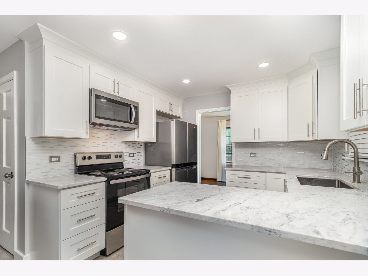 Beautifully updated 4-level split in Oak Meadows offering nearly 3,000 sq ft of finished living space on a .39-acre lot backing to the Illinois Prairie Path! Major 2024-25 upgrades (over $70K) include a full kitchen remodel with quartz countertops, J&K white shaker cabinetry, and stainless-steel appliances; new flooring throughout; fresh paint; new doors and trim; radon mitigation system; Aquasana whole-house water filtration with UV; and attic insulation. Additional improvements include a 2019 roof, 2020 fence, refinished hardwood floors (2020), furnace and A/C (2009), water heater (2016), and a whole-house generator (2010, serviced 2023 with new battery). The home features a bright living and dining area, a finished sub-basement with rec room and storage, plus a screened porch with grill exhaust for year-round entertaining. Upstairs, the bedrooms offer hardwood floors, new trim, and an updated primary suite with a custom walk-in closet. Outside, enjoy a fenced yard with stamped-concrete patios, fire pit, and shed with electricity. Direct backyard access to the Illinois Prairie Path and a location across from St. Andrews Golf Club make this move-in-ready home a rare blend of modern updates, thoughtful maintenance, and an unbeatable setting.