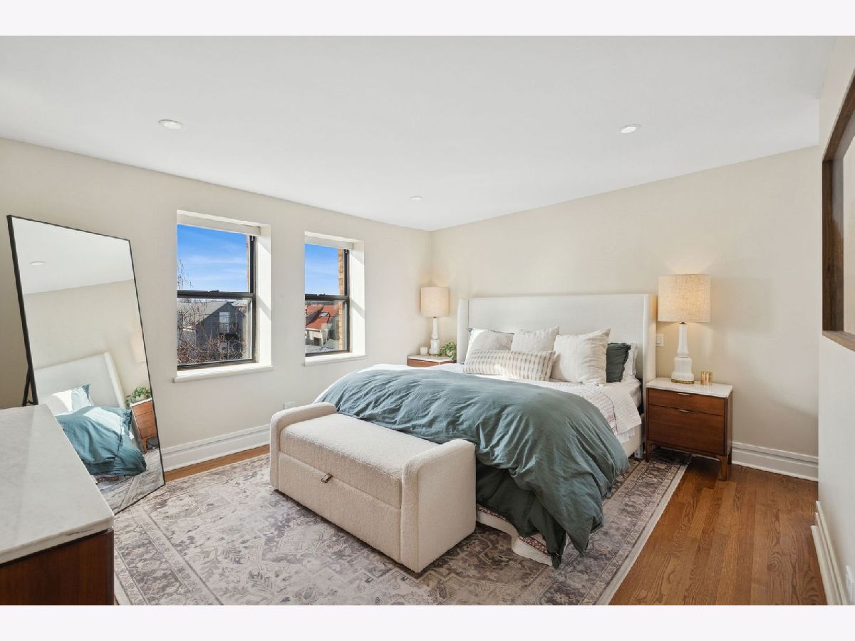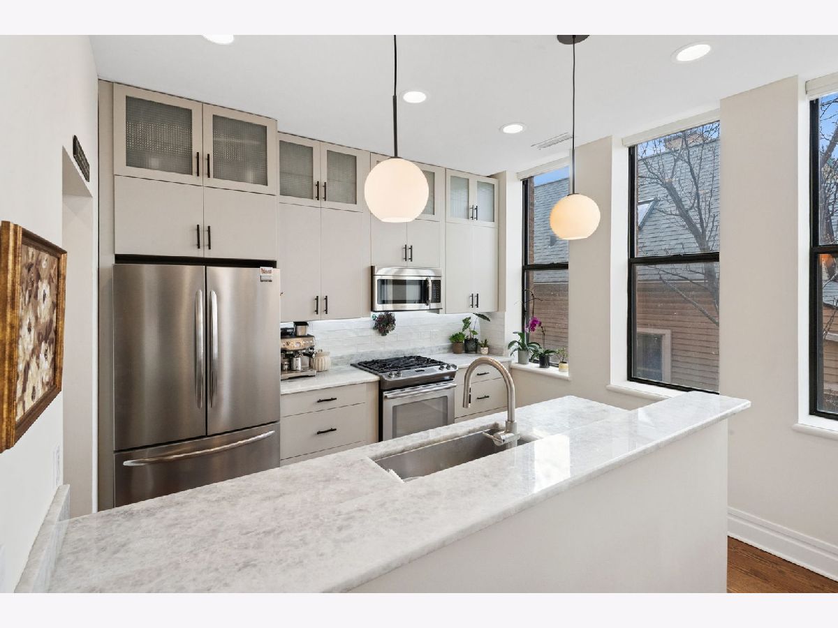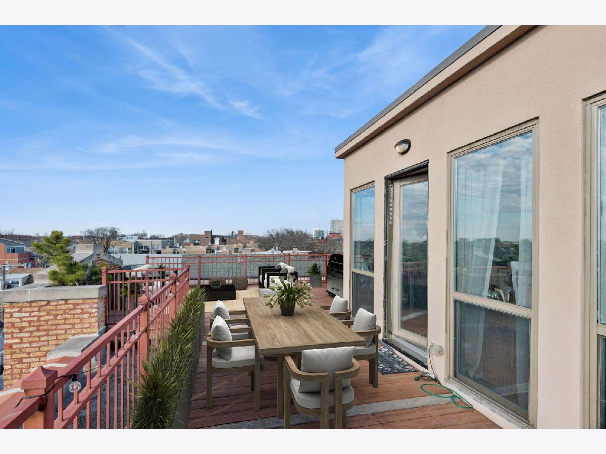 Boutique 10-unit elevator building-originally a former church rectory-tucked on a quiet, one-way, tree-lined street. This full brick and stone masonry building with steel infrastructure showcases timeless architecture and quality craftsmanship, offering a solid, peaceful place to call home. If you're craving something beyond cookie-cutter condos and want the comfort and feel of single-family living in one of Lakeview's most sought-after locations, this Penthouse corner residence delivers. Spanning three levels, it offers 3 bedrooms plus an office/flex space and drenched in natural light throughout thanks to an abundance of windows. The main level features an open-concept layout with a spacious living area, a defined dining space, and an updated kitchen complete with a pantry closet and stunning Quartzite countertops. A guest bedroom and powder room round out this floor. Upstairs, you'll find two bedrooms including the primary suite, a second full bath, and a dedicated walk-in laundry room with front-load washer/dryer and cabinetry. The primary suite is a true retreat, featuring an oversized, 10x9 organized walk-in closet plus a linen closet and a spa-inspired bath with double vanity, walk-in shower, separate soaking tub, and heated floors- keep your toes toasty on those cold days! As you make your way to the top floor, you'll find the office/flex space with a full wall of windows and access to the roofdeck for your exclusive use- great space for entertainment or for your own personal escape and relaxation. Additional highlights include hardwood floors throughout, closets galore, dual zoned HVAC system, and additional storage in basement. Attached heated garage parking with EV charger installed. You'll also love the convenience of the garage with access from Kenmore (not the alley which rarely is plowed), which makes day-to-day parking simpler-especially during Chicago winters. Just two blocks from the Belmont Red, Brown, and Purple Line station (plus the Belmont bus), this home makes getting around the city effortless. Step outside to a great mix of shops, restaurants, cafes, and bars, with the energy of Southport Corridor and Wrigley just a short stroll away-close to everything yet comfortably set apart. For a little extra neighborhood charm, the Kenmore Play Lot is just a half block away.