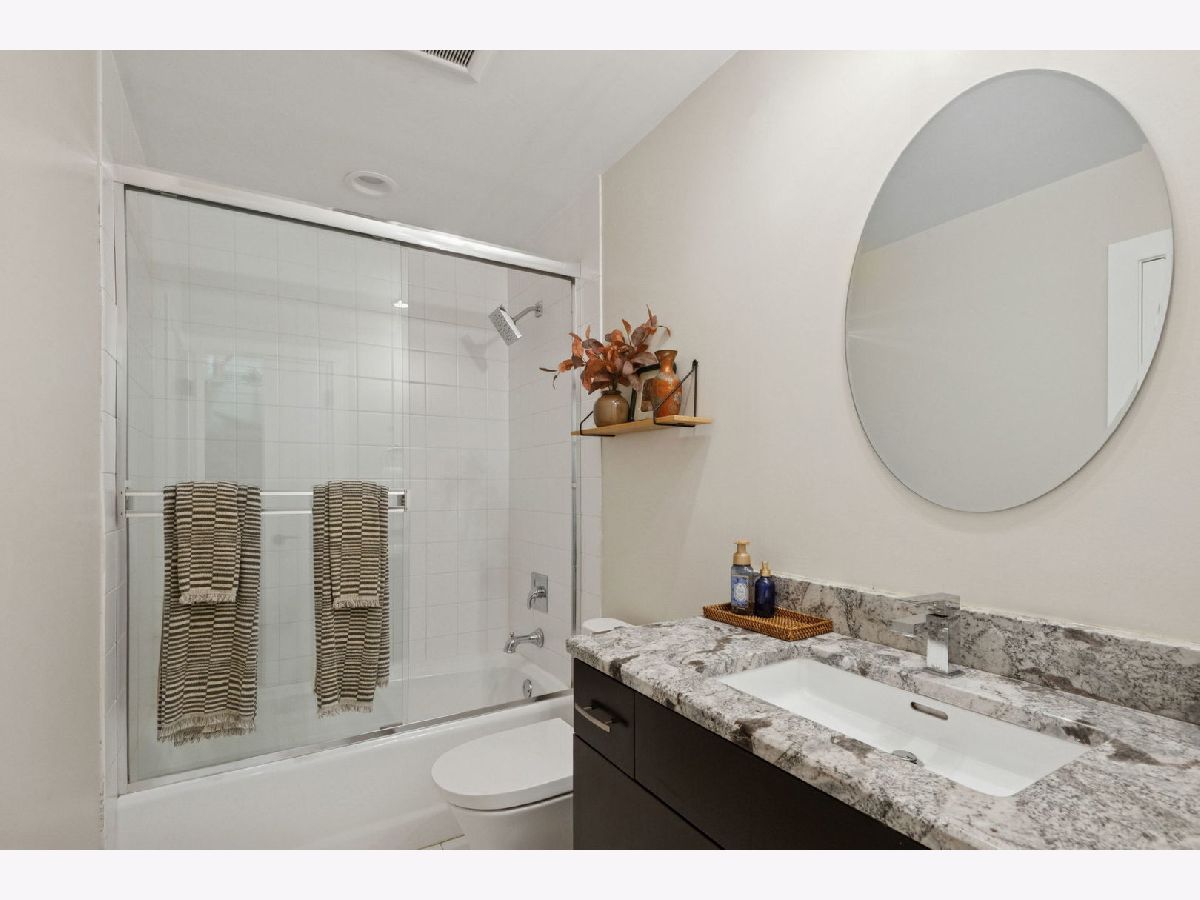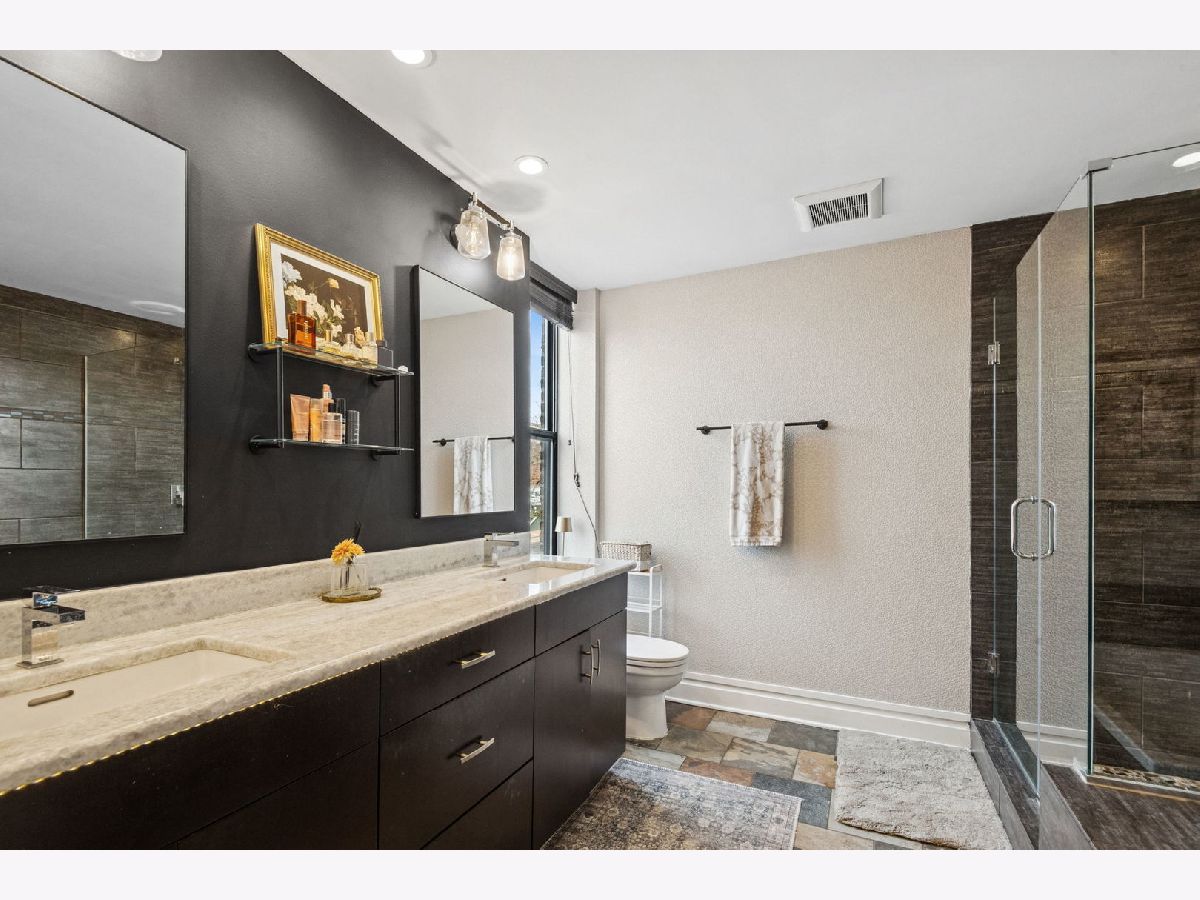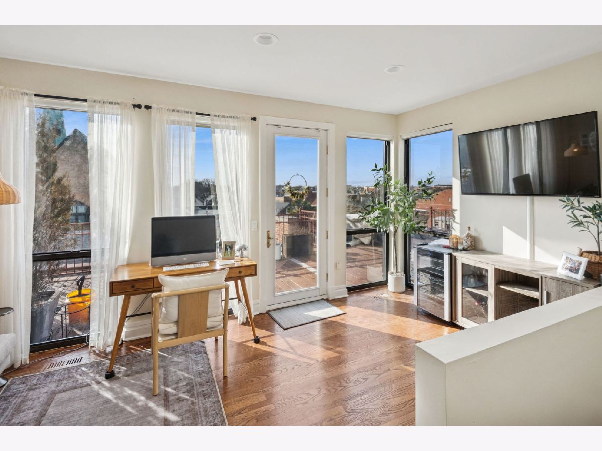 Boutique 10-unit elevator building-originally a former church rectory-tucked on a quiet, one-way, tree-lined street. This full brick and stone masonry building with steel infrastructure showcases timeless architecture and quality craftsmanship, offering a solid, peaceful place to call home. If you're craving something beyond cookie-cutter condos and want the comfort and feel of single-family living in one of Lakeview's most sought-after locations, this Penthouse corner residence delivers. Spanning three levels, it offers 3 bedrooms plus an office/flex space and drenched in natural light throughout thanks to an abundance of windows. The main level features an open-concept layout with a spacious living area, a defined dining space, and an updated kitchen complete with a pantry closet and stunning Quartzite countertops. A guest bedroom and powder room round out this floor. Upstairs, you'll find two bedrooms including the primary suite, a second full bath, and a dedicated walk-in laundry room with front-load washer/dryer and cabinetry. The primary suite is a true retreat, featuring an oversized, 10x9 organized walk-in closet plus a linen closet and a spa-inspired bath with double vanity, walk-in shower, separate soaking tub, and heated floors- keep your toes toasty on those cold days! As you make your way to the top floor, you'll find the office/flex space with a full wall of windows and access to the roofdeck for your exclusive use- great space for entertainment or for your own personal escape and relaxation. Additional highlights include hardwood floors throughout, closets galore, dual zoned HVAC system, and additional storage in basement. Attached heated garage parking with EV charger installed. You'll also love the convenience of the garage with access from Kenmore (not the alley which rarely is plowed), which makes day-to-day parking simpler-especially during Chicago winters. Just two blocks from the Belmont Red, Brown, and Purple Line station (plus the Belmont bus), this home makes getting around the city effortless. Step outside to a great mix of shops, restaurants, cafes, and bars, with the energy of Southport Corridor and Wrigley just a short stroll away-close to everything yet comfortably set apart. For a little extra neighborhood charm, the Kenmore Play Lot is just a half block away.