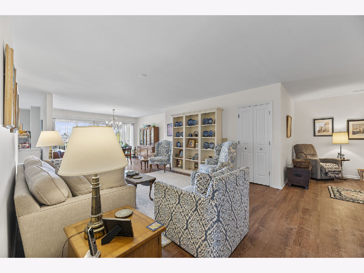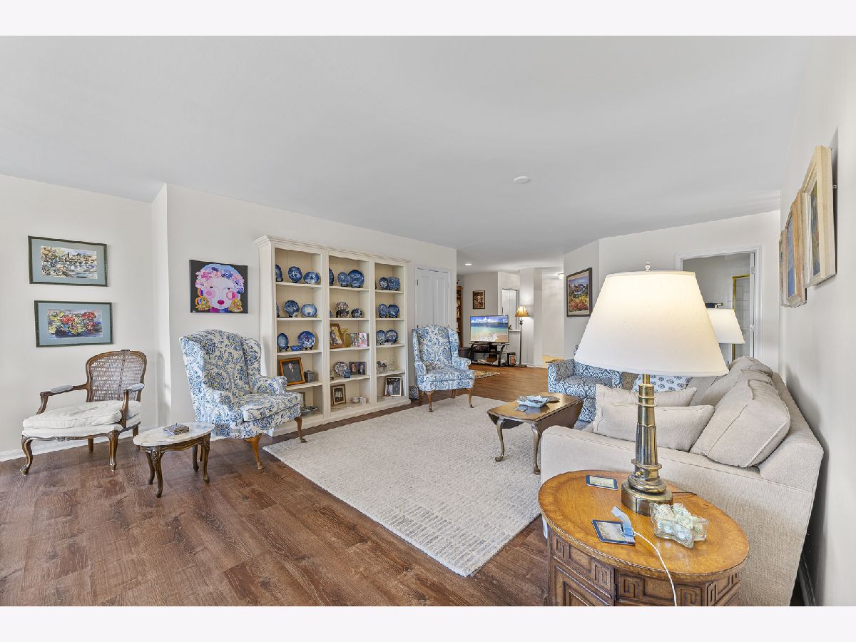 Welcome to 3100 Lexington Ln #201 in the highly desirable Princeton Club! This spacious 2-bedroom, 2-bath residence offers an ideal blend of comfort, functionality, and serene pond views. Filled with natural light, the open living area features direct access to a private balcony overlooking beautifully landscaped grounds and tranquil water views-perfect for morning coffee or evening relaxation. The updated eat-in kitchen offers both style and convenience, while a versatile den provides the perfect space for a home office or additional lounge area. The primary suite is a true retreat, complete with dual walk-in closets and a spa-like bath featuring a double vanity, whirlpool tub, and separate shower. A generously sized second bedroom, full bath, in-unit laundry, and multiple walk-in storage closets add to the home's practicality. Additional highlights include a heated garage parking space and access to Princeton Club amenities, including a clubhouse, outdoor pool, and meticulously maintained grounds. Enjoy maintenance-free living in a prime Glenview location-close to shopping, dining, parks, and more!