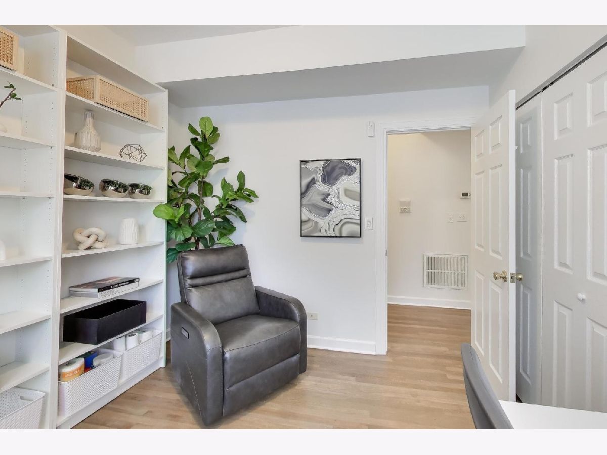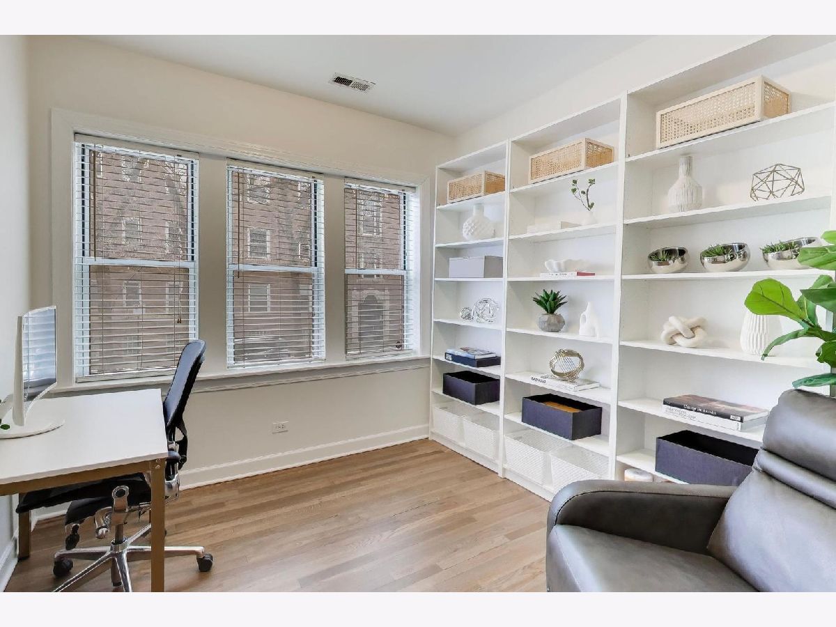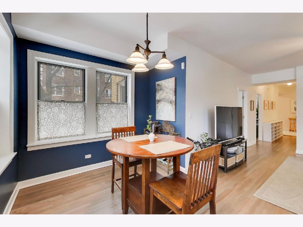 Discover the enchanting charm of Ravenswood Manor in this luminous 2-bed, 1-bath sanctuary, perched half a story above grade for a quiet, private perspective. Step inside, where soaring ceilings and crisp, gallery-white hues create an atmosphere of airy serenity. Elegant millwork and exquisitely refinished hardwood floors evoke a timeless sophistication, inviting you to immerse yourself in a home defined by comfort and style. The heart of the residence is the sun-drenched corner sunroom. Wrapped in north, east, and west-facing windows, this versatile haven basks in sunlight from dawn to dusk-the ideal backdrop for intimate dinners, a creative workspace, or a tranquil morning retreat. The modern kitchen sets the scene for culinary adventures with sleek stainless steel appliances, shimmering quartz countertops, and warm maple cabinetry. Two generously proportioned bedrooms, each organized with a custom Elfa closet system, offer ample space to craft your personal respite. Step outside to your private outdoor oasis-a perfect setting for morning coffee, outdoor culinary pursuits, or unwinding in the fresh air. Designed for an effortless lifestyle, the home includes an in-unit washer and dryer, central air conditioning, a spacious personal storage unit, and a shared bike room. Nestled on a tree-lined street in a professionally managed, pet-friendly building, you are located just two blocks from the Brown Line station. With the shops of Lincoln Square, the global flavors of Albany Park, and the scenic paths of the 312 River Run just moments away, this meticulously maintained home is the perfect canvas for your next chapter.