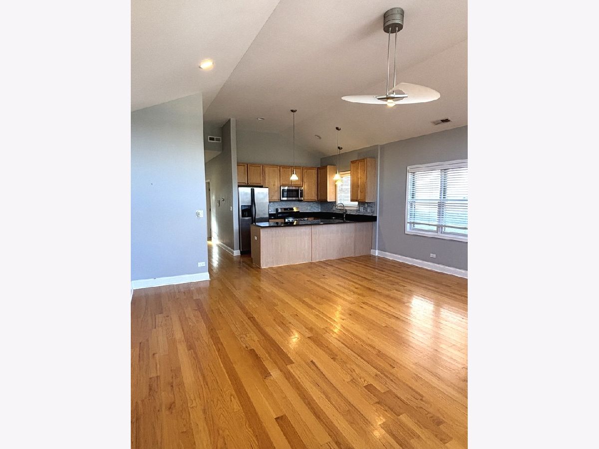 Top floor penthouse unit in boutique style and stately building featuring 2 bedrooms, 2 baths, vaulted ceilings, lots of natural light, spacious living/dining room combo, open floor plan, hardwood floors throughout, in unit laundry, primary bedroom has attached full bath with walk in shower, separate jacuzzi, and double sinks! Beautiful outdoor deck with brand new flooring and perfect spot to enjoy the White Sox fireworks! 1 outdoor parking spot included. All appliances stay...washer/dryer and stove are less tham 3 years old.