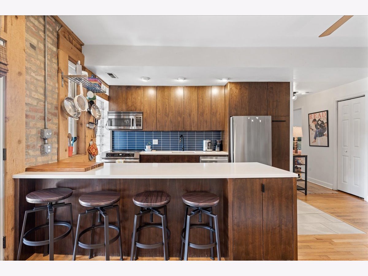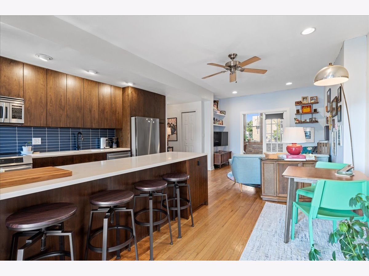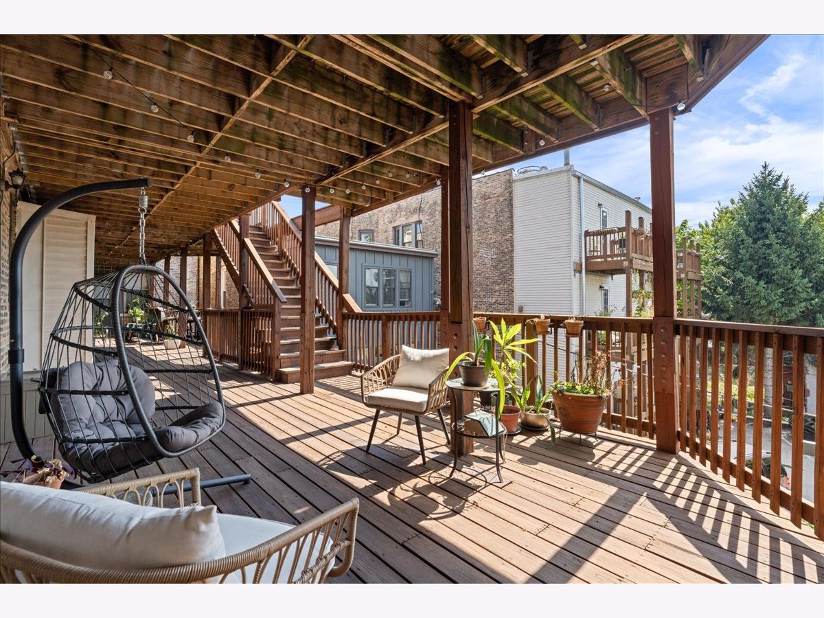 Indication of Multiple Offers. Highest and Best requested by Monday at 3pm. Charming and bright "Logandale" 2nd floor, 2bed/1bath in professionally managed, boutique brick building with GIANT outdoor deck space. Open floor plan with newer kitchen - quartz countertops, huge island, tons of modern cabinetry. Enjoy the newer bathroom featuring beautiful finishes - deep soaking tub with wood trim, subway tile, gorgeous vanity with plentiful storage, and a stackable front-load in-unit w/d. The unit also provides hardwood flooring, exposed brick, central air/heat, tankless water heater, great in-unit storage (plus extra storage closet in basement), nice natural light, and tree-top views. Walk to lots of restaurants, shops, the square, farmer's market, and so much more. Easy walk to Logan Sq blue line stop AND close to 90/94. Enjoy summer nights sitting on the enormous outdoor deck under twinkly lights!