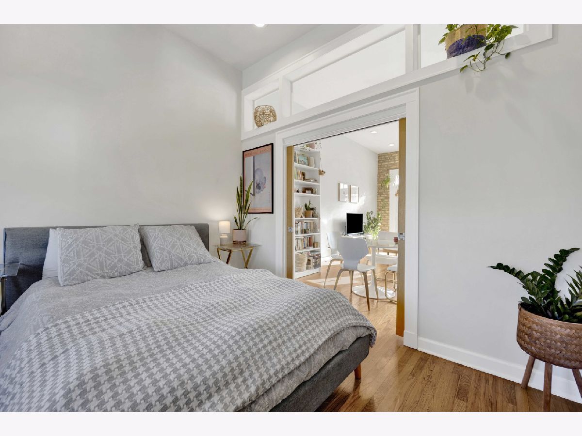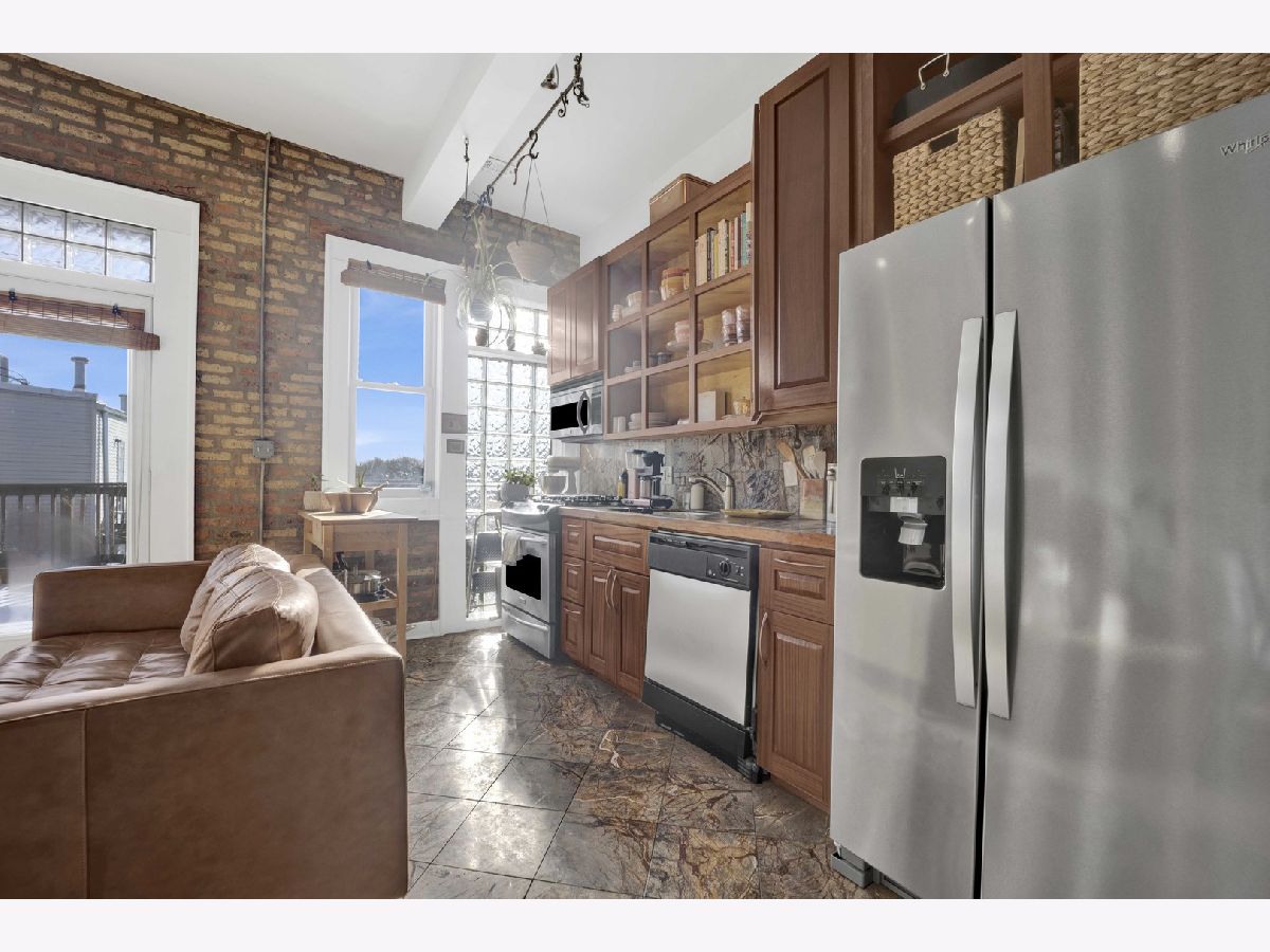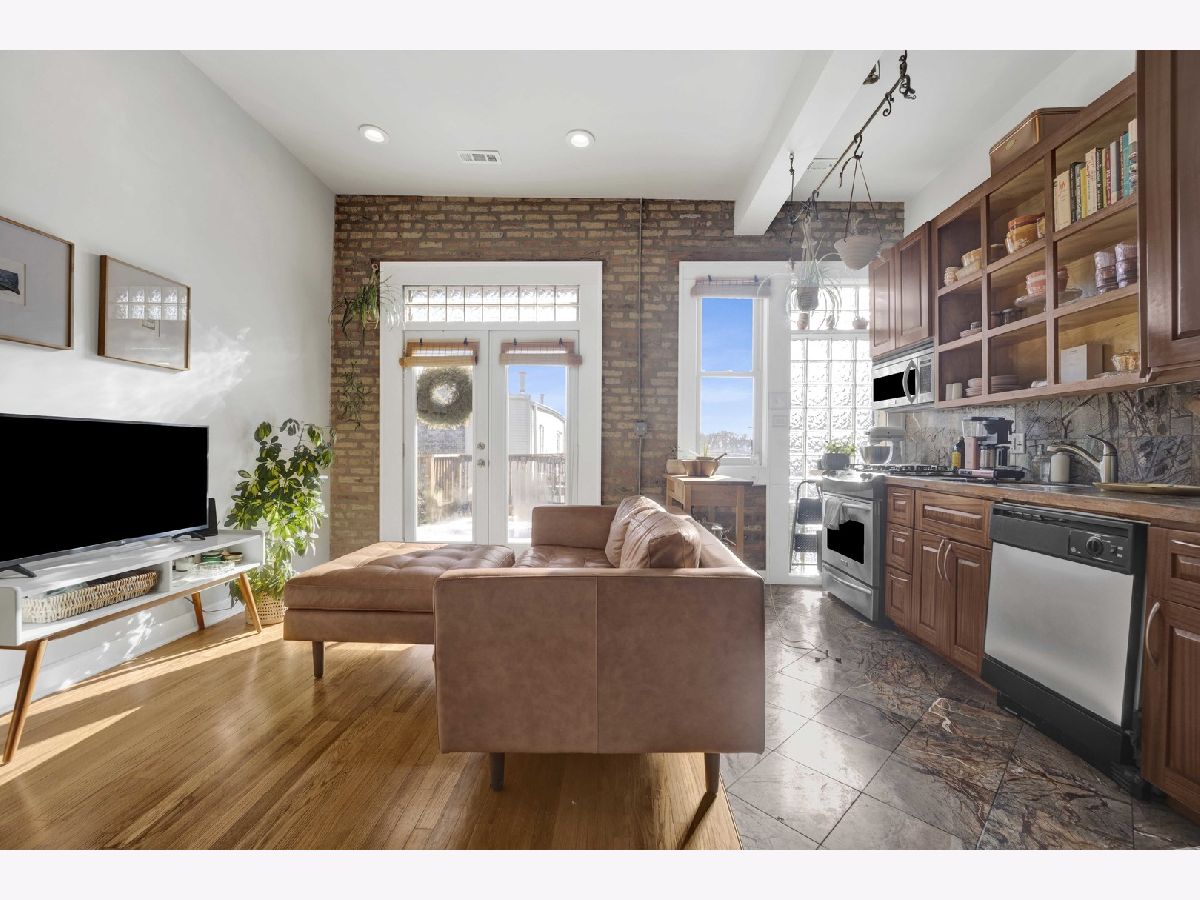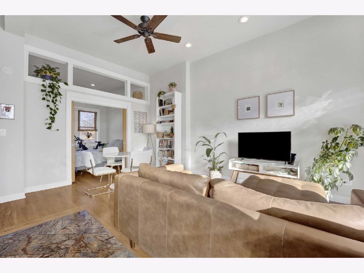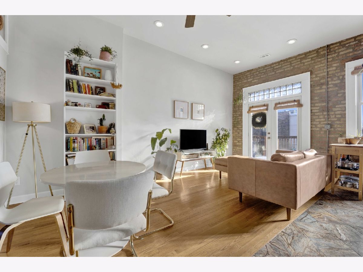Positioned at the crossroads of Logan Square and Avondale, with quick access to 90/94, this top-floor 2BR/1BA residence pairs vibrant city living with a peaceful, elevated retreat above it all. Natural light fills the open living and dining areas, where soaring ceilings and exposed brick add warmth and architectural character. The layout offers generous room proportions and seamless flow throughout. Just off the kitchen, the oversized deck opens to wide sky and treetop views, creating an impressive outdoor footprint ideal for entertaining or unwinding above the neighborhood rooftops. Additional highlights include an in-unit washer and dryer, hardwood flooring, a tankless water heater, central air and heat, a dedicated storage unit, a low monthly HOA, and easy permit street parking provided by the city. Moments from neighborhood restaurants, coffee shops, parks, the farmers market, the Blue Line, and everyday conveniences - all while enjoying the perspective and privacy of top-floor living. *New shower/tub, tankless hot water heater, and refrigerator. Tenant occupied through 4/30/2026. All showing requests require 24-hour notice.