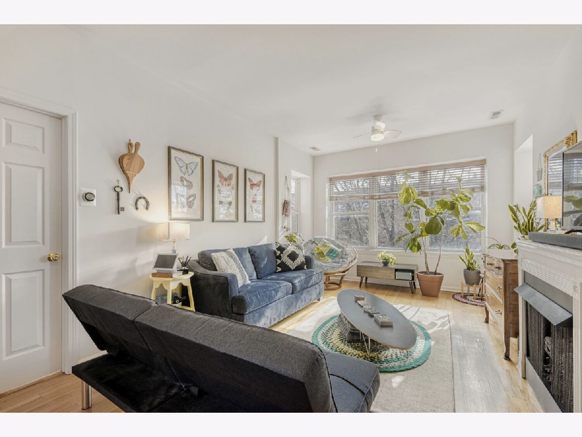 Multiple offers received. Best & Final offer deadline is Monday, 2/9 at 3pm. Step inside this delightful, south-facing, top-floor 2-bedroom, 1-bath condo and be immediately greeted by a flood of warm, natural sunlight. You'll feel right at home the moment you walk into the foyer. The entire space has been professionally repainted and features beautiful hardwood floors, creating a fresh and inviting atmosphere. Comfort is key with in-unit laundry, central air, and gas forced heat. Imagine cozy evenings sipping your favorite beverage in the spacious living room, complete with a charming fireplace. Thoughtful updates include new lighting in both the kitchen and bathroom. Just off the kitchen, a private deck is perfect for your summer and fall outdoor entertaining. Take a peaceful stroll down the quaint, tree-lined streets to lovely Horner Park. Easy street parking completes the picture. Welcome home!