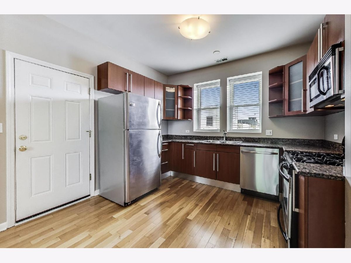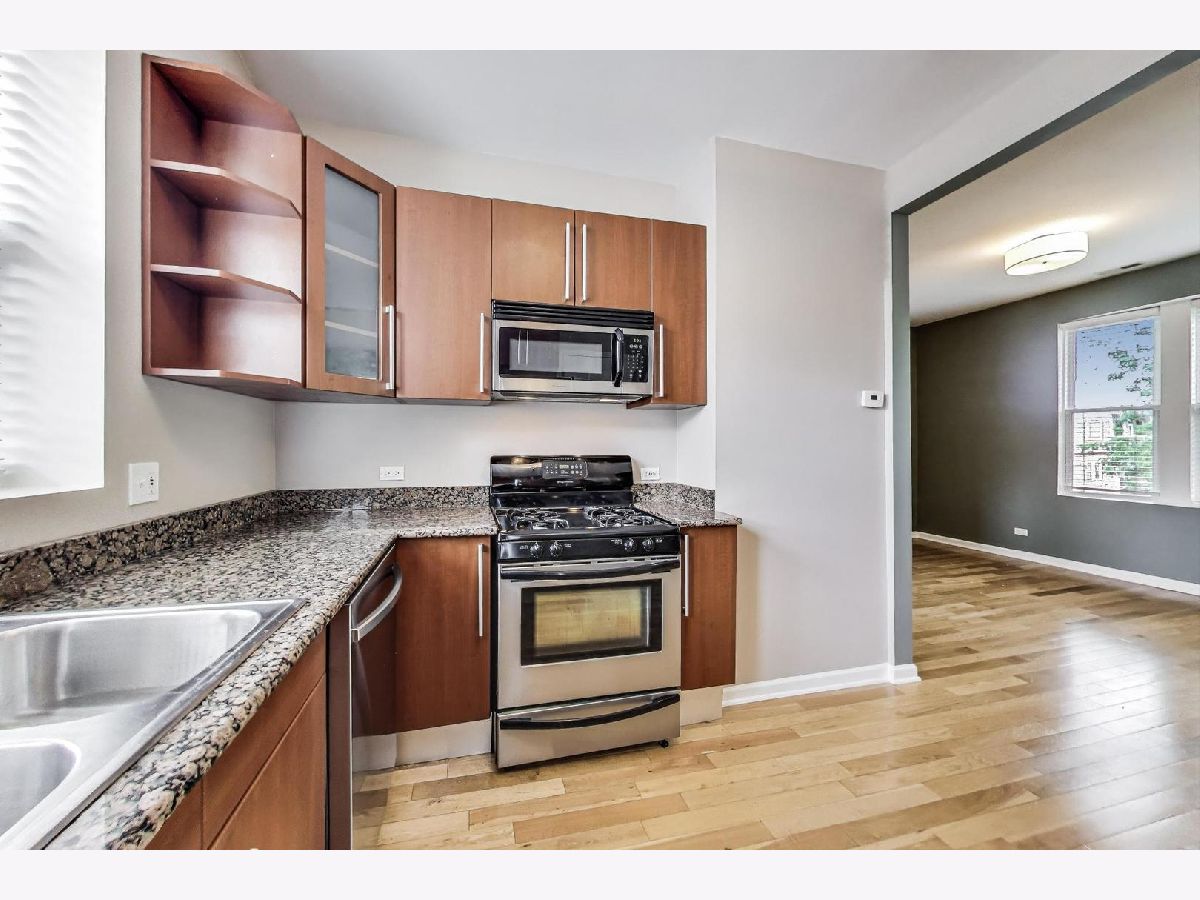 Perched on the 3rd floor, this sunlit condo offers 2 generously sized bedrooms and a full bath. The inviting open-concept layout features gleaming hardwood floors, sleek stainless steel appliances, granite countertops, and a comfortable eat-in kitchen perfect for casual dining. While the in-unit laundry hook-up adds everyday convenience. Walking distance to Brown Line transportation, restaurants shopping and parks!