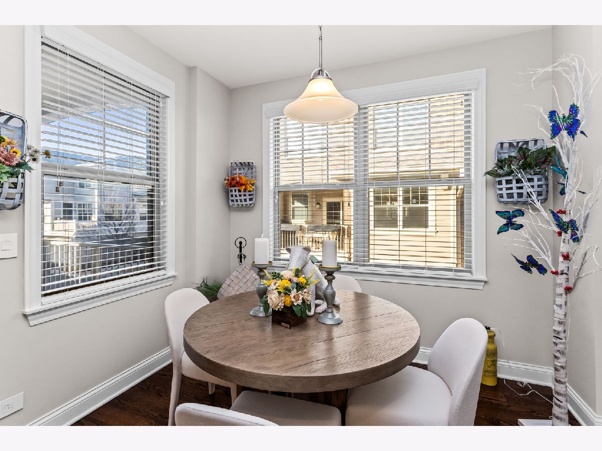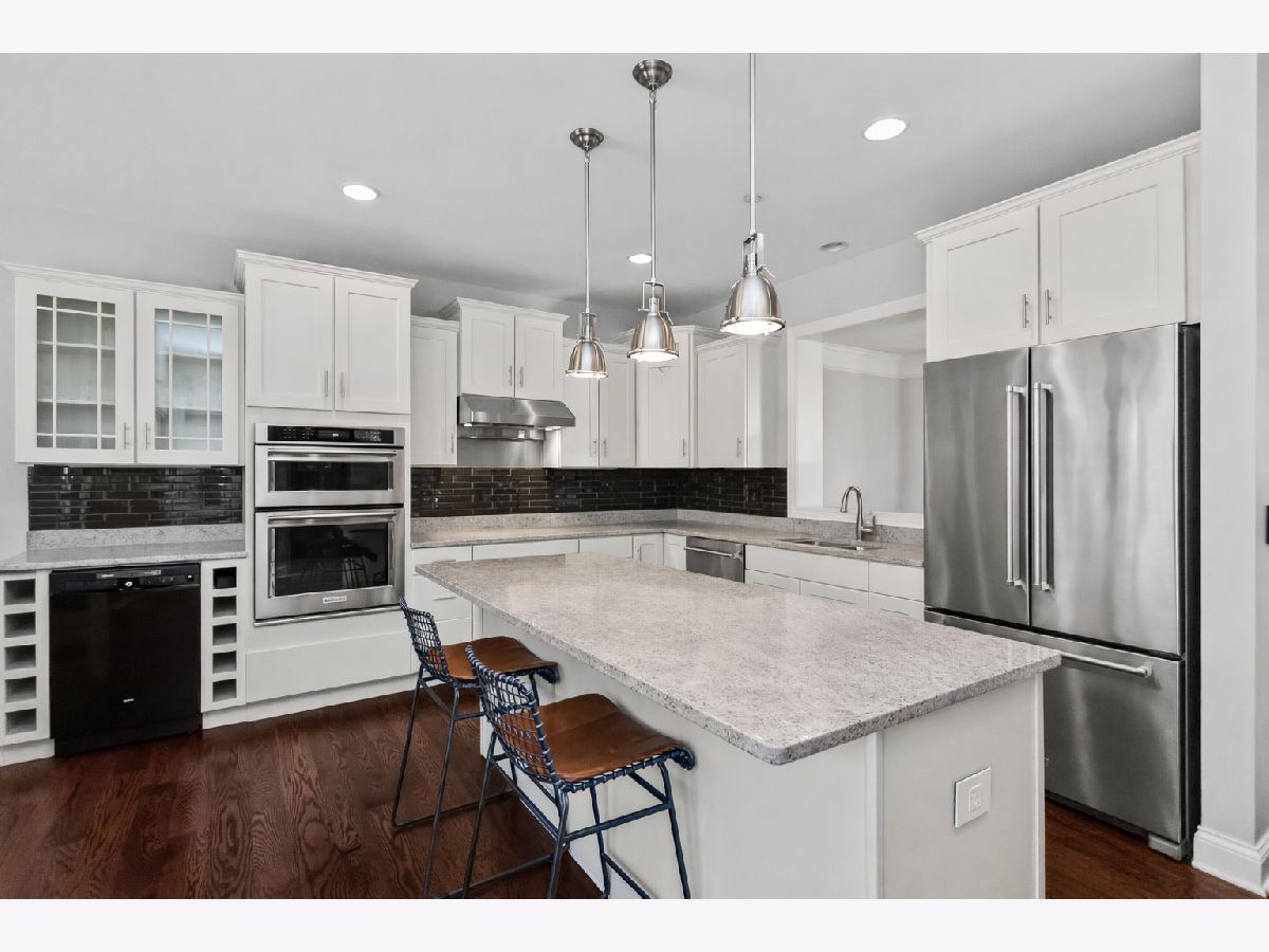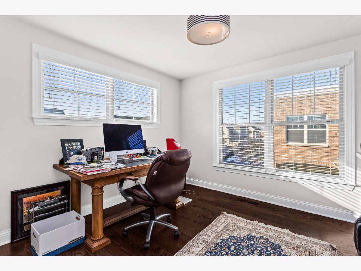 Beautifully maintained and rarely available end-unit townhome in the highly sought-after Gateway Estates community. As the largest model in the development, this residence offers expansive living space filled with natural light from multiple exposures, creating a bright and airy feel throughout. The main living level showcases stunning hardwood floors (2021), a spacious living and dining area, and a thoughtfully designed kitchen featuring custom cabinetry, granite countertops, stainless steel appliances, double ovens, a large center island, walk-in pantry with custom shelving, and an additional bar area complete with a wine fridge-perfect for entertaining. A versatile first-floor family room or office sits adjacent to a full bath and can easily function as a fourth bedroom. Upstairs, the primary suite impresses with a coffered ceiling, a customized walk-in closet, and a spa-inspired bath with double vanity, soaking tub, and separate shower. Bedroom-level laundry adds everyday convenience, while the oversized heated garage provides exceptional storage with built-in cabinetry and shelving. Enjoy both a private front patio and additional covered outdoor space unique to this end unit. H-vac December 2024 - Ideally located just steps from Uptown Park Ridge, Metra, shopping, dining, and everything this vibrant community has to offer, Unit 1 combines space, luxury, and an unbeatable location.