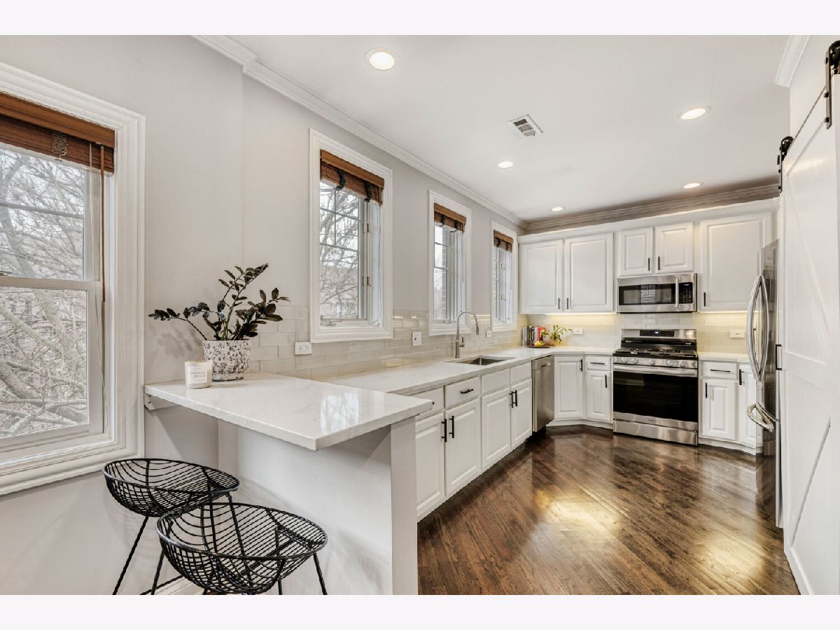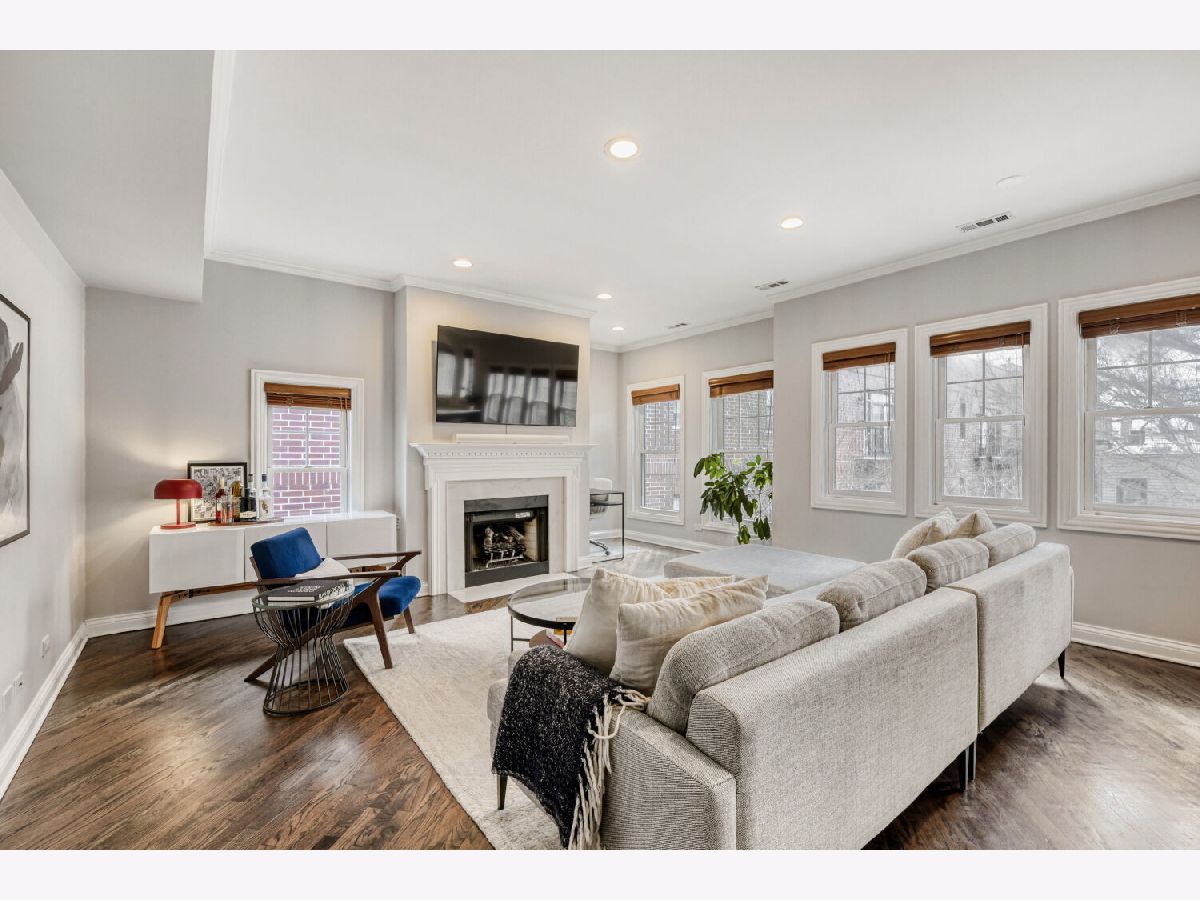Urban Oasis Penthouse in Lakeview! Welcome to this lovely home, a perfectly nestled urban oasis in the heart of one of the city's most vibrant neighborhoods. Experience comfort and charm in this 2-bedroom, 2-bathroom penthouse where an elevator opens directly into your unit. Step into a welcoming foyer and an open, light-filled floor plan ideal for both relaxing and entertaining. Warm hardwood floors and expansive windows create a perfect tree-top setting throughout. The kitchen is a standout, featuring white cabinetry, marble countertops, classic subway tile backsplash, pantry and a convenient breakfast bar. The versatile living and dining area allows for a variety of furniture arrangements and showcases a gas fireplace. The primary suite includes organized closets, a spacious marble-finished bath and overlooks a private balcony. A second full bath is conveniently located across from the comfortable guest bedroom. Additional highlights include in-unit laundry, generous storage space, common patio area, and garage parking with elevator access straight to the unit. This well-maintained building has seen numerous updates: tuckpointing and sealing (2018), tear-off roof (2015), new garage door (2025), gutter warmers (2023), new garage sump pump with heating element (2026), new sewer pipe (2023), new entrance lock and knob (2025), and two new back stairwell windows (2022). Ideally located, this exceptional home combines urban chic with cozy neighborhood living-just steps from transportation, grocery stores, restaurants, boutiques, local taverns, and the lakefront. (See additional information for a full list of features.)