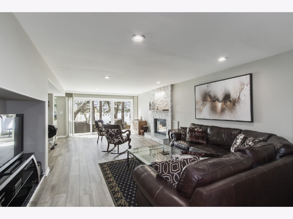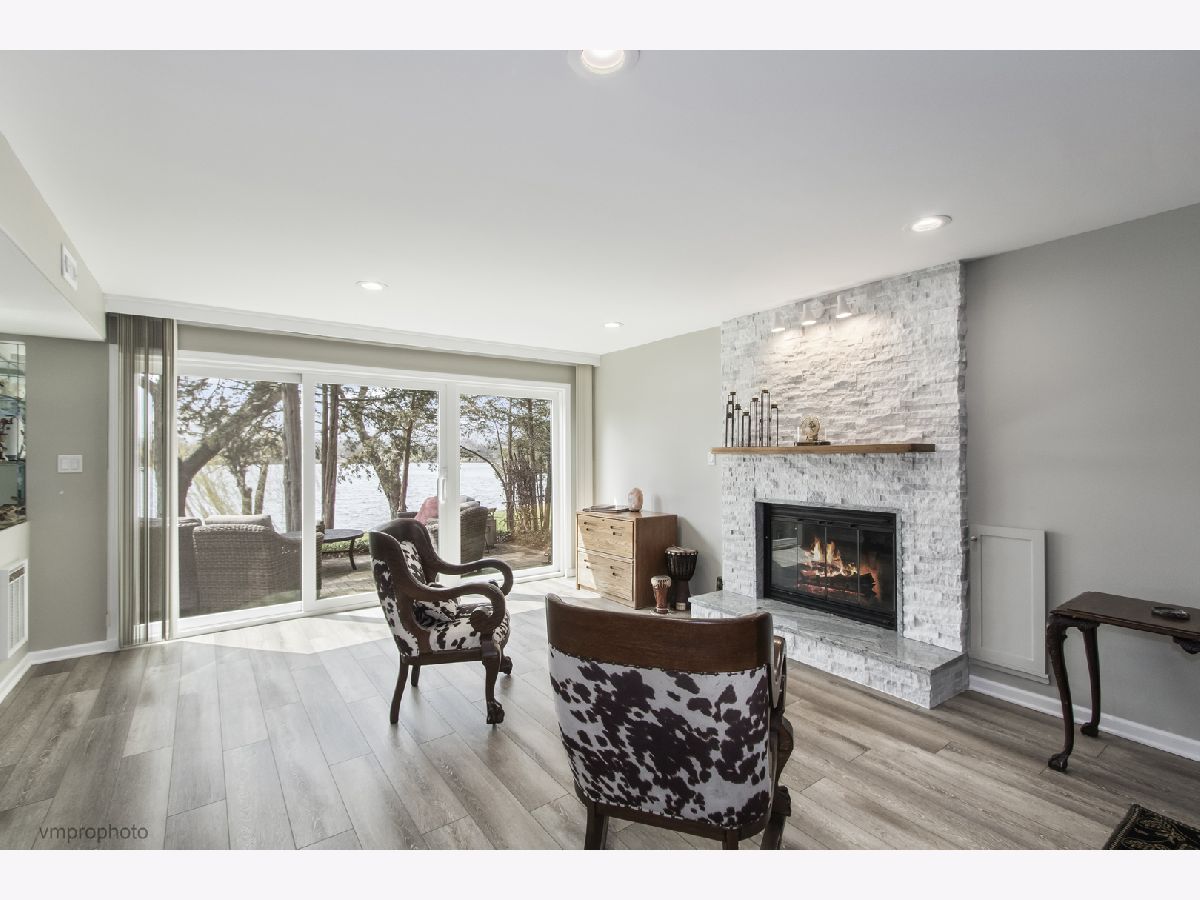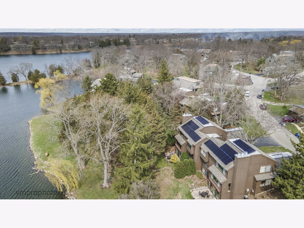 Magnificent Big Lake views from this lakefront Fenimore model. Enjoy a Northwoods vacation vibe from this duplex townhome that lives like a single family home. The mature trees dot the rolling lawn that cascades down to the water's edge where you can relish in all the delights that lakefront living affords. This stunning home has been completely remodeled, has all new windows and the sought after luxury of a direct entry 2 car garage into a large custom designed walk in pantry and mud room. The 2 story Foyer opens up to the cozy, yet spacious Den with Butler's Pantry featuring a wet bar & Sub-Zero bar refrigerator. An elegant Living Room feels like you are living in a lavish treehouse complete with stunning fireplace flanked by windows and another full wall of windows viewing the water. A rare find is the formal large Dining Room with plenty of space to entertain in style where you can access the private deck to flow onto with stepping stones down to the lakeside paver patio. The remodeled Kitchen is open and ideally planned with custom Amish soft close drawers, task lighting, granite counters, 2 separate breakfast counters & high-end appliances featuring Wolf, Bosch & Sub-Zero. The 2nd floor has a loft landing with transom window and conveniently located washer and dryer. The Primary Suite is drenched in sunlight and is unbelievable spacious in design with full lake views. One whole wall is custom closet with organizers and an additional closet as well. The luxury updated primary bath boasts elevated granite vanity with dual sinks and large custom designed shower with seat, grab bar, niche, body sprayer and frameless glass door - complete with window as well! The two additional bedrooms are very large, featuring great closet space and are neutral in design - all new carpet on 2nd floor! The glamorous hall bathroom has been updated and boasts a window, elevated vanity with dual sinks, tub/shower with custom tile work, glass corner shelves and frameless shower door. The Full Finished Walk-Out Lower Level has been recently remodeled! The focal point fireplace is stunning with a shimmering stacked stone design & raised hearth -perfect for cozying around while taking in the stunning lake views. The office space has a granite credenza with cabinetry and wet bar area with glass cabinetry, granite counter and a bar refrigerator - the perfect spot to work or entertain. The luxury feel of the lower level is complete with rounded corner beading, luxury vinyl plank flooring, mirrored art & collectible display shelves and great window lines and a 3 pane sliding glass door to the private paver patio complete with automatic awning. The lower level has an enormous storage room that is finished and the shelving will remain. This home offers everything you could ask for in a single family home, yet offers you the luxury & maintenance free lifestyle. Solar Panels (completely paid for) add value with lowered electric bills averaging $214/month for 2025. Enjoy kayaking, swimming, pickleball, indoor/outdoor pools, hiking the 35 acre forest preserve & trail around the lake, gather with friends at the beach or in the clubhouse - all within the confines of the guarded and gated community of Lake Barrington Shores. Dine at the golf club or play a round with friends (golf is a separate membership). Come see why LBS is the sought after destination for luxury living!