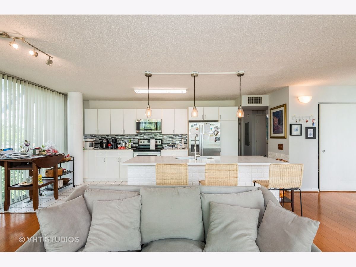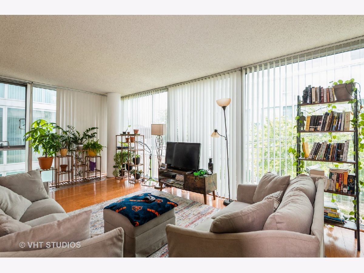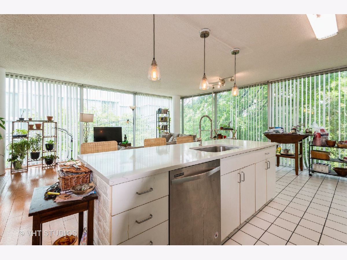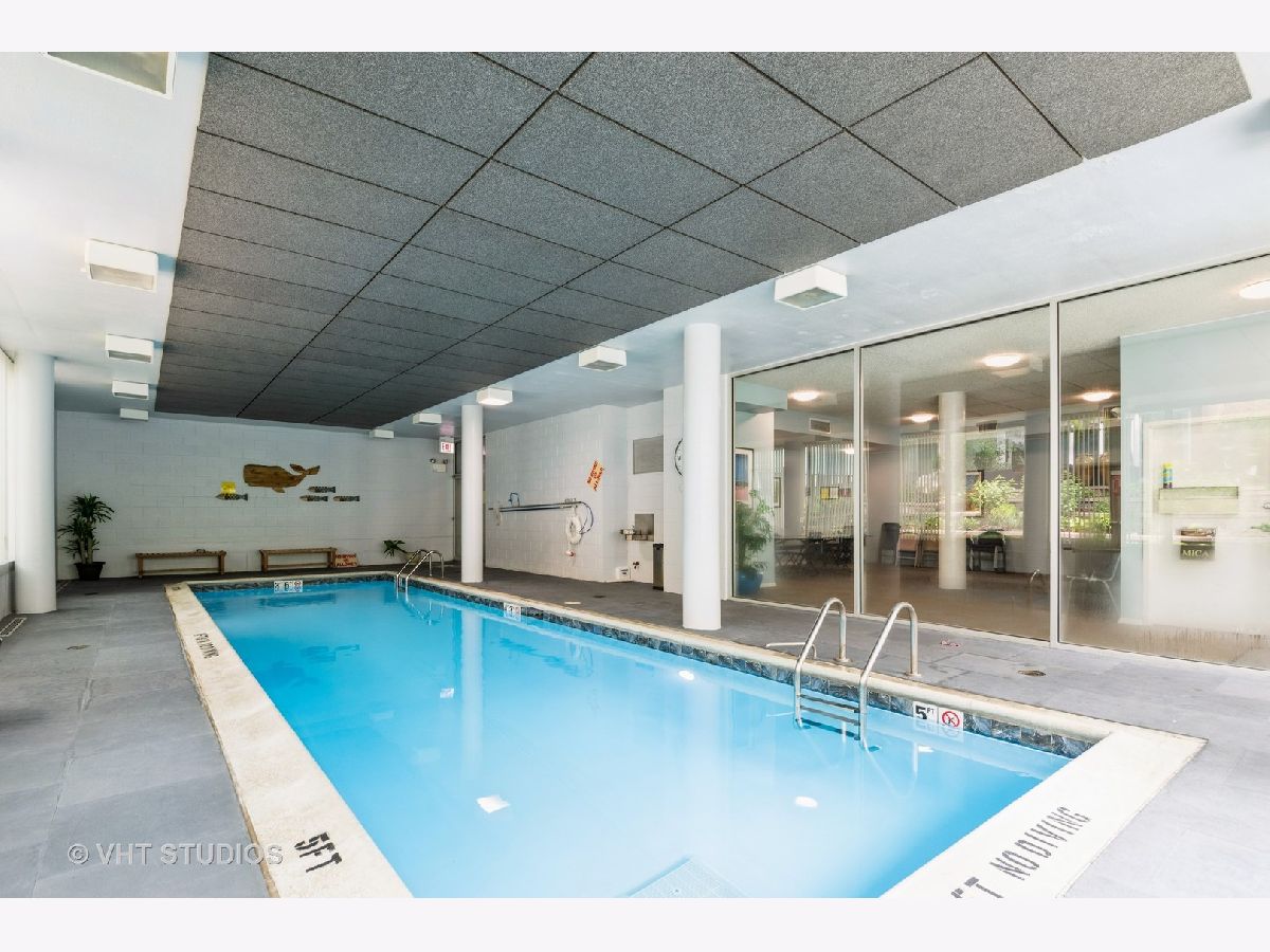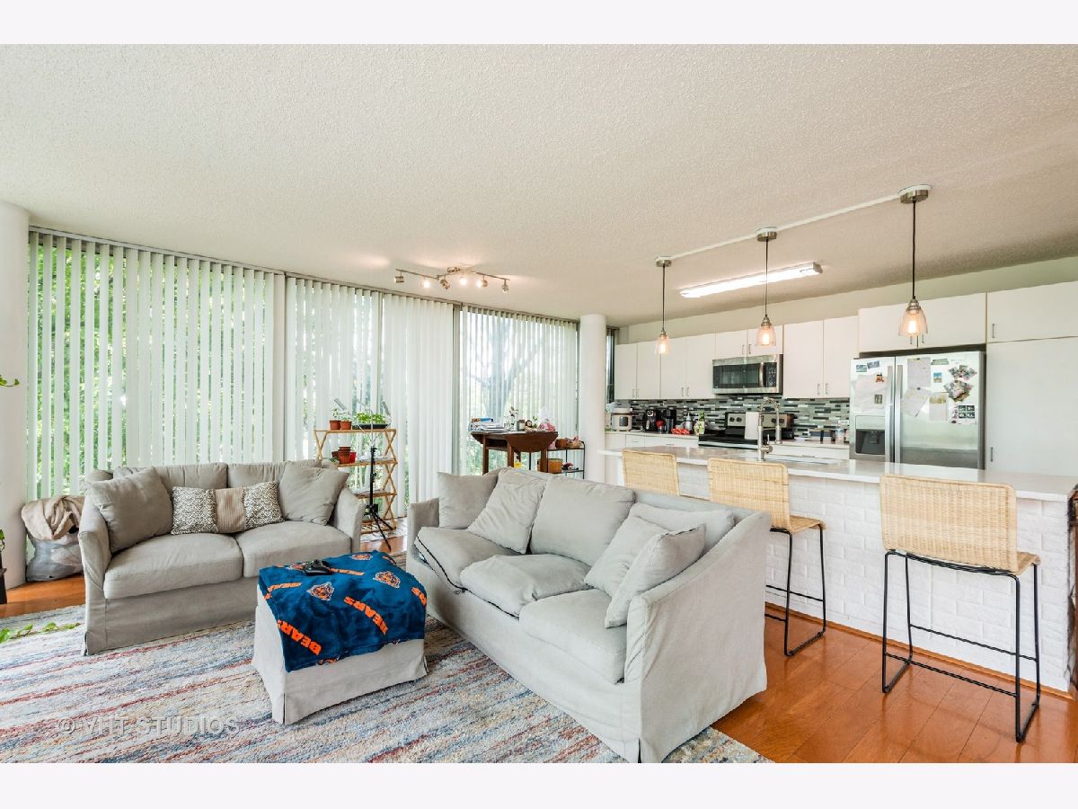 Bright and Airy Mies van der Rohe-Inspired Condo. This spacious 2-bedroom, 2-bath blends modernist style with everyday comfort. An open floor plan and floor-to-ceiling windows fill the space with natural light, while hardwood floors run throughout the main living areas. The eat-in kitchen is outfitted with stainless steel appliances and granite countertops. The large primary suite includes a walk-in closet and an en suite bath. You'll also find a side-by-side washer and dryer with extra storage above. Garage parking is included. The building offers guest parking in the courtyard, a fitness center, indoor pool, and a rooftop deck. Easy access to major expressways, Lake Shore Drive, and public transit.
