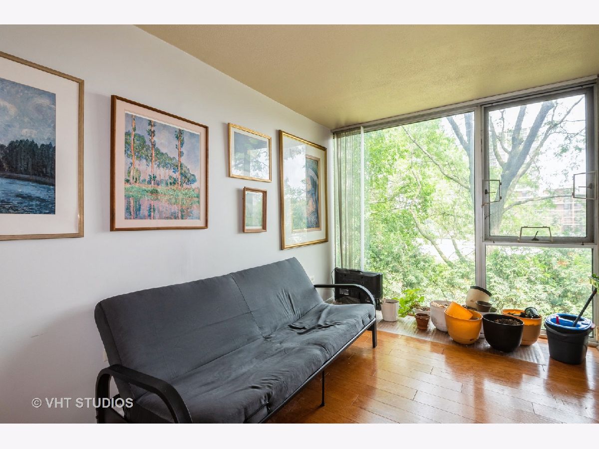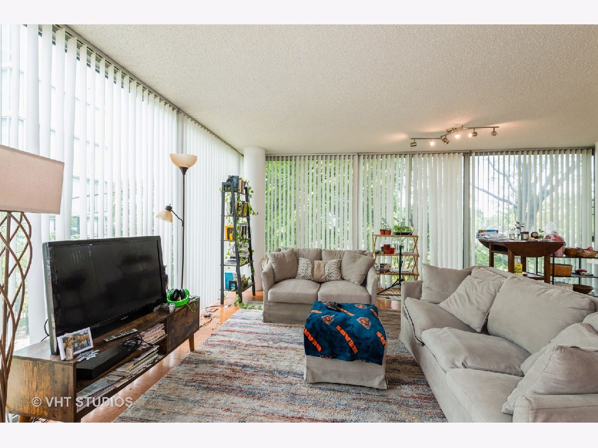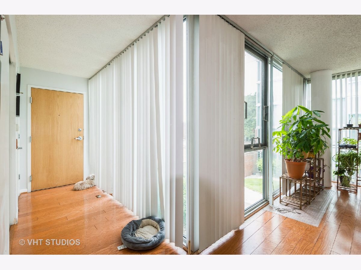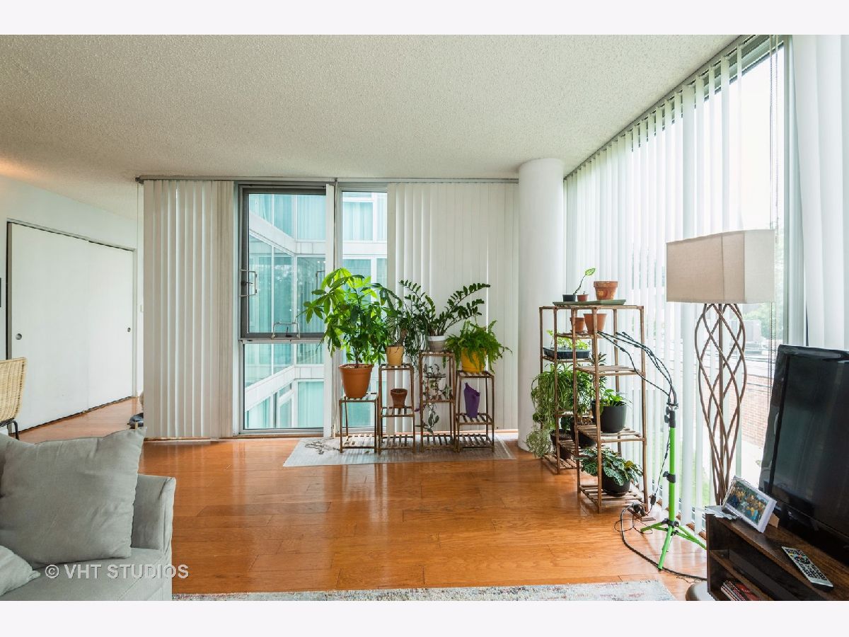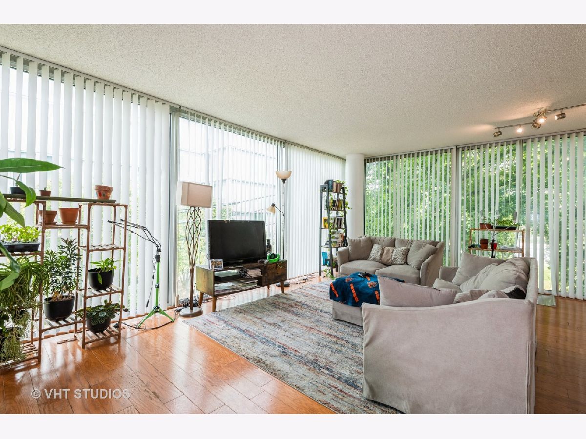Bright and Airy Mies van der Rohe-Inspired Condo. This spacious 2-bedroom, 2-bath blends modernist style with everyday comfort. An open floor plan and floor-to-ceiling windows fill the space with natural light, while hardwood floors run throughout the main living areas. The eat-in kitchen is outfitted with stainless steel appliances and granite countertops. The large primary suite includes a walk-in closet and an en suite bath. You'll also find a side-by-side washer and dryer with extra storage above. Garage parking is included. The building offers guest parking in the courtyard, a fitness center, indoor pool, and a rooftop deck. Easy access to major expressways, Lake Shore Drive, and public transit.