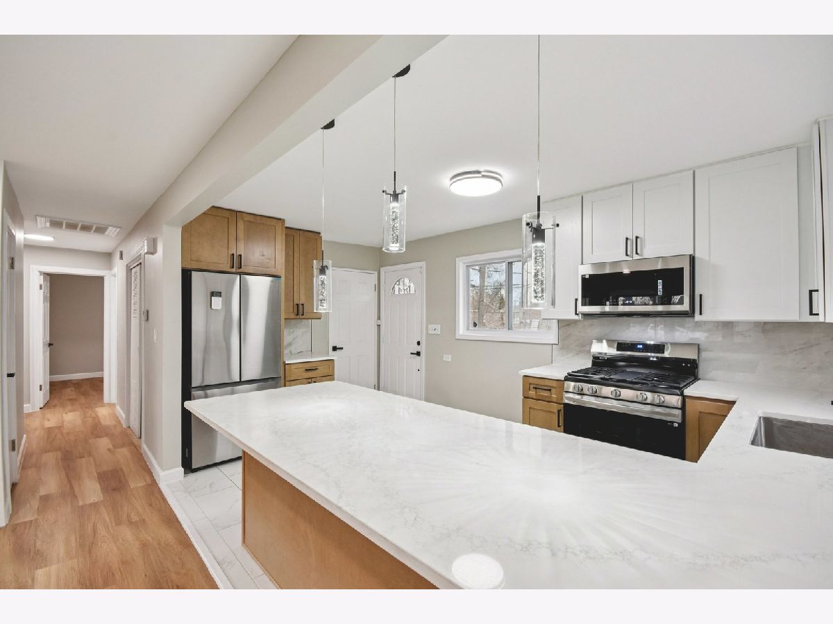 Welcome to this impeccably renovated ranch home offering the perfect blend of modern contemporary design and effortless single-level living. Featuring 3 generously sized bedrooms and 1 beautifully redesigned full bathroom, this home has been thoughtfully updated from top to bottom with luxurious finishes and today's most desirable upgrades. Step inside to a bright, open living space enhanced by LED lighting, fresh designer paint throughout, brand-new flooring, updated baseboards, and sleek new interior doors. The stunning kitchen serves as the heart of the home, showcasing all-new cabinetry, elegant countertops, a designer backsplash, and a full suite of brand-new appliances including a refrigerator, gas stove, dishwasher, and microwave. New light fixtures in the kitchen, closets, and hallways elevate the space with a clean, modern aesthetic, while new kitchen windows invite in natural light. The fully remodeled bathroom offers a spa-inspired feel with a brand-new vanity, an illuminated mirror, updated lighting, a new bathtub, and stylish new faucets. Each bedroom includes new fans, ensuring comfort and functionality throughout. Additional all-new upgrades include the water heater, entrance door, gutters, and paint throughout, making this home truly move-in ready with peace of mind for years to come. With high-end finishes rarely found at this price point and meticulous attention to detail throughout, this beautifully updated ranch is a turnkey opportunity you won't want to miss.