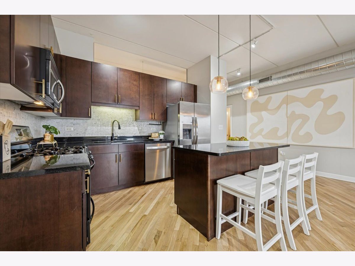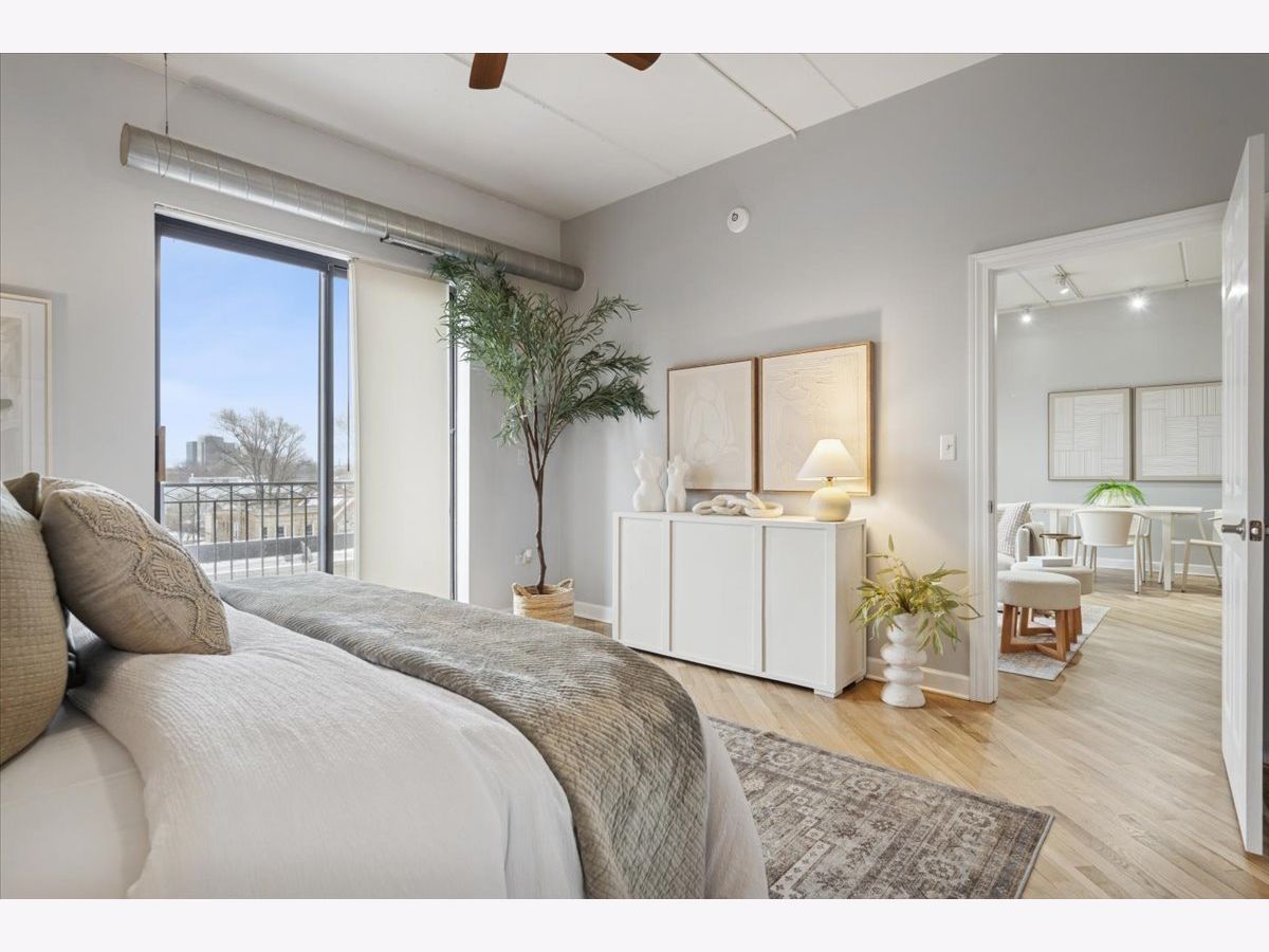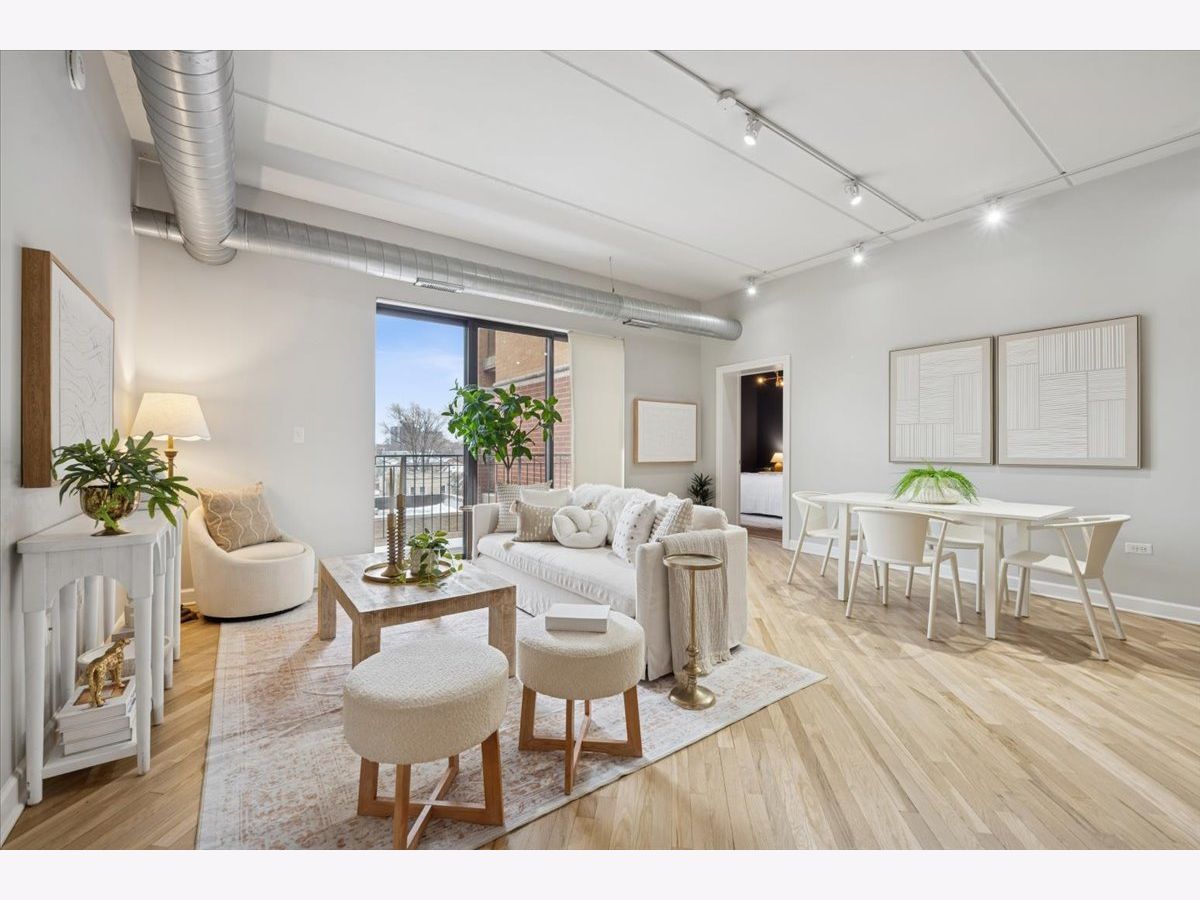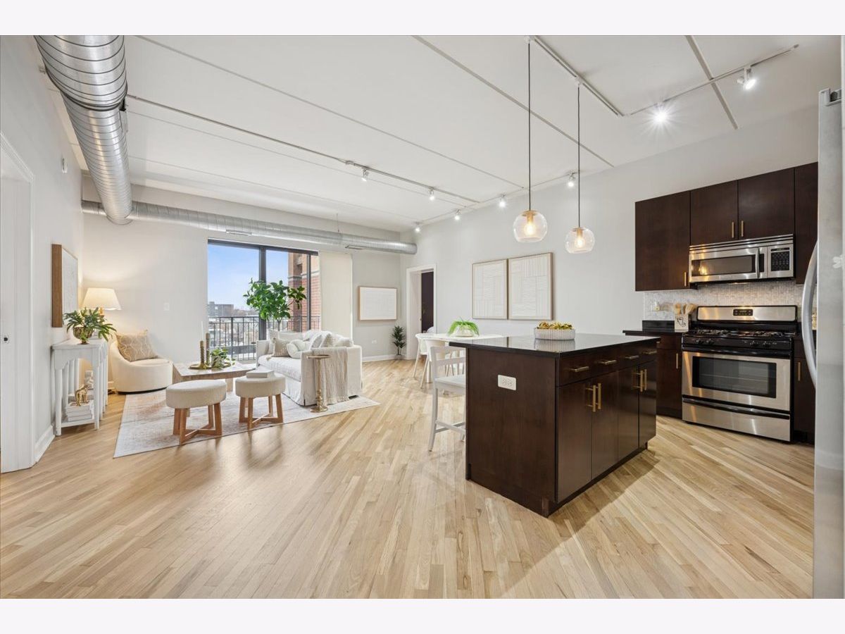 MULTIPLE OFFERS RECEIVED. HIGHEST AND BEST DUE FEBRUARY 9TH AT 3PM. Experience effortless Logan Square living in this beautifully appointed 3-bedroom, 2-bathroom concrete loft residence with unobstructed east-facing skyline views, exposed ductwork, and soaring 9-foot ceilings. A spacious, sun-drenched living and dining area flows seamlessly to an oversized private balcony-perfect for morning coffee or evening entertaining with the city as your backdrop. The chef's kitchen is both timeless and functional, featuring 42" flat-panel cabinetry, granite countertops, a statement oversized island, a full stainless-steel appliance package, and a dedicated pantry for exceptional storage and organization. The serene primary suite is a true retreat, complete with a spa-inspired marble bathroom offering dual vanities, a steam shower, and a generously sized, professionally organized walk-in closet. The second and third bedrooms are thoughtfully proportioned and versatile-ideal for guests, family, roommates, or a dedicated home office. Additional highlights include freshly refinished white oak hardwood floors throughout the main living spaces and primary bedroom, in-unit washer/dryer, abundant professionally organized closets, and one heated garage parking space with additional storage included in the price. This full-amenity, elevator building offers a well-equipped fitness center and a common roof deck with sweeping neighborhood and city views. Enjoy unbeatable walkability to the best of Logan Square, including Pizza Lobo, Lula Cafe, and Estero, plus easy access to shopping along Milwaukee, Logan, Fullerton, and California. Just steps to the Blue Line for a seamless downtown commute.