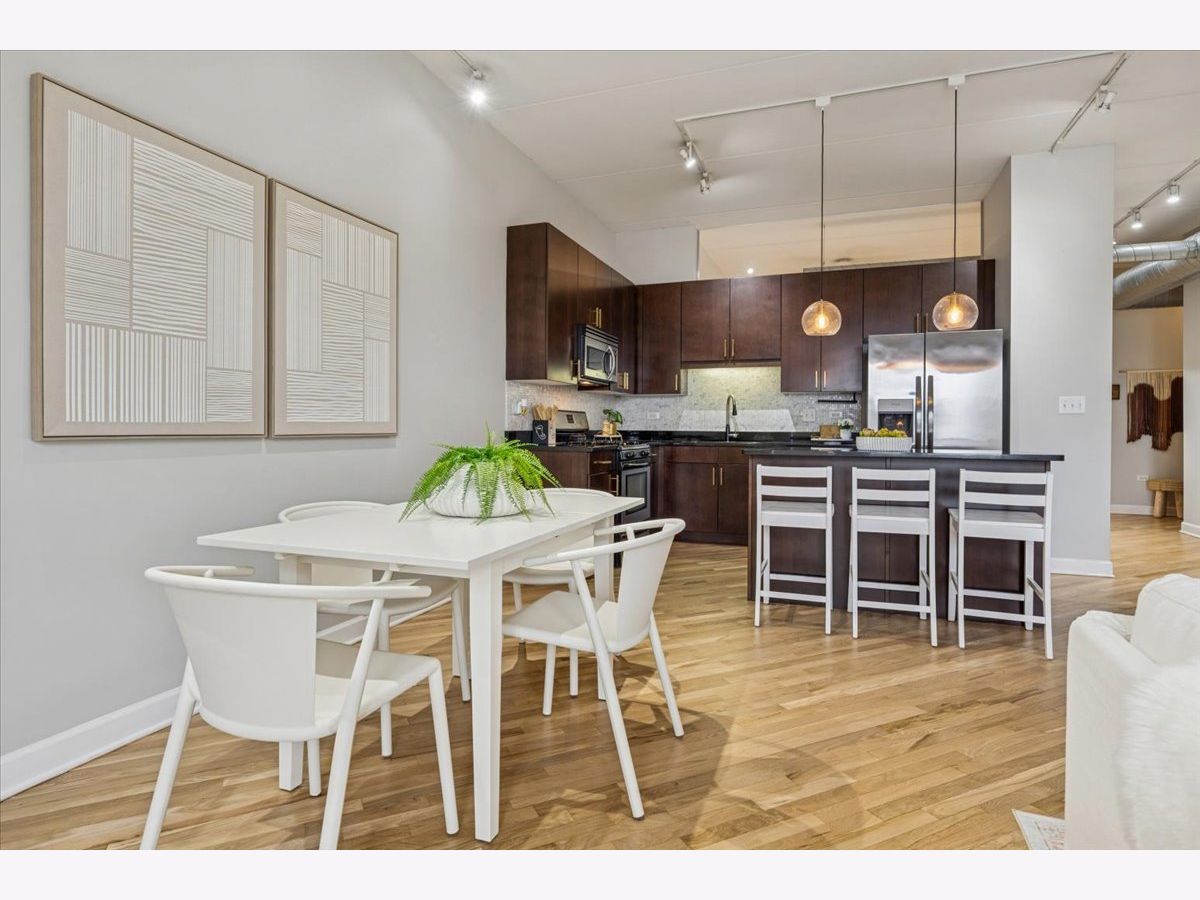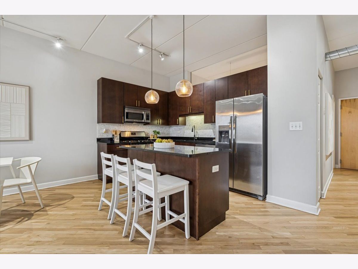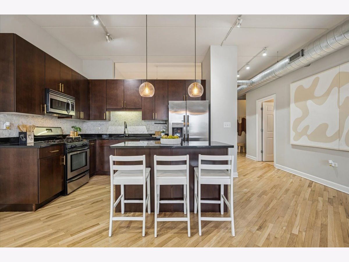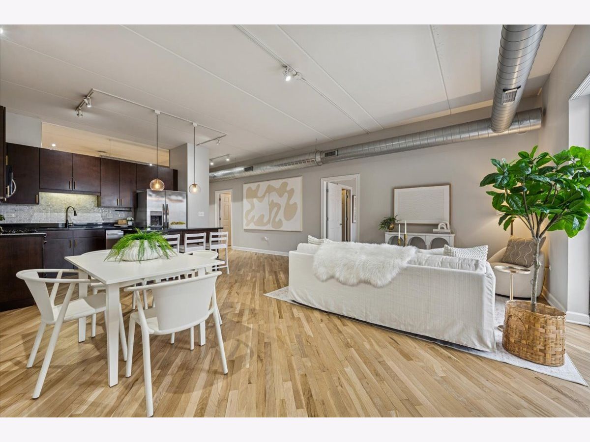 MULTIPLE OFFERS RECEIVED. HIGHEST AND BEST DUE FEBRUARY 9TH AT 3PM. Experience effortless Logan Square living in this beautifully appointed 3-bedroom, 2-bathroom concrete loft residence with unobstructed east-facing skyline views, exposed ductwork, and soaring 9-foot ceilings. A spacious, sun-drenched living and dining area flows seamlessly to an oversized private balcony-perfect for morning coffee or evening entertaining with the city as your backdrop. The chef's kitchen is both timeless and functional, featuring 42" flat-panel cabinetry, granite countertops, a statement oversized island, a full stainless-steel appliance package, and a dedicated pantry for exceptional storage and organization. The serene primary suite is a true retreat, complete with a spa-inspired marble bathroom offering dual vanities, a steam shower, and a generously sized, professionally organized walk-in closet. The second and third bedrooms are thoughtfully proportioned and versatile-ideal for guests, family, roommates, or a dedicated home office. Additional highlights include freshly refinished white oak hardwood floors throughout the main living spaces and primary bedroom, in-unit washer/dryer, abundant professionally organized closets, and one heated garage parking space with additional storage included in the price. This full-amenity, elevator building offers a well-equipped fitness center and a common roof deck with sweeping neighborhood and city views. Enjoy unbeatable walkability to the best of Logan Square, including Pizza Lobo, Lula Cafe, and Estero, plus easy access to shopping along Milwaukee, Logan, Fullerton, and California. Just steps to the Blue Line for a seamless downtown commute.