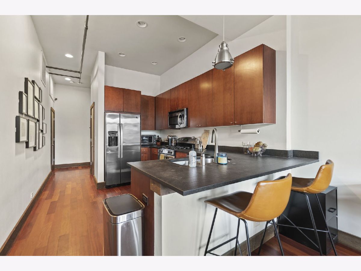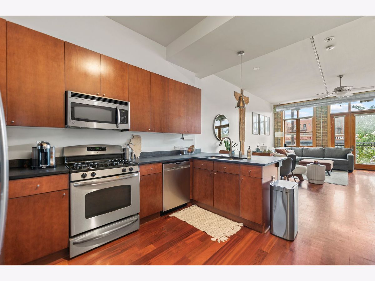 Stunning 2 bed, 2 bath Lakeview condo located in a prime location! This unit is bright, open, and flooded with natural light. Hardwood floors throughout the main living spaces, 13 foot ceilings and large windows create a warm and inviting living space. Large kitchen space with lots of cabinet space, all stainless steel appliances, and kitchen island/breakfast bar opens up to the shared dining and living space. Primary bedroom is spacious, with attached full bath and walk-in closet. In-unit washer and dryer. Close proximity to the Belmont CTA stop, Whole Foods, restaurants and nightlife. Deeded garage parking space included in price!