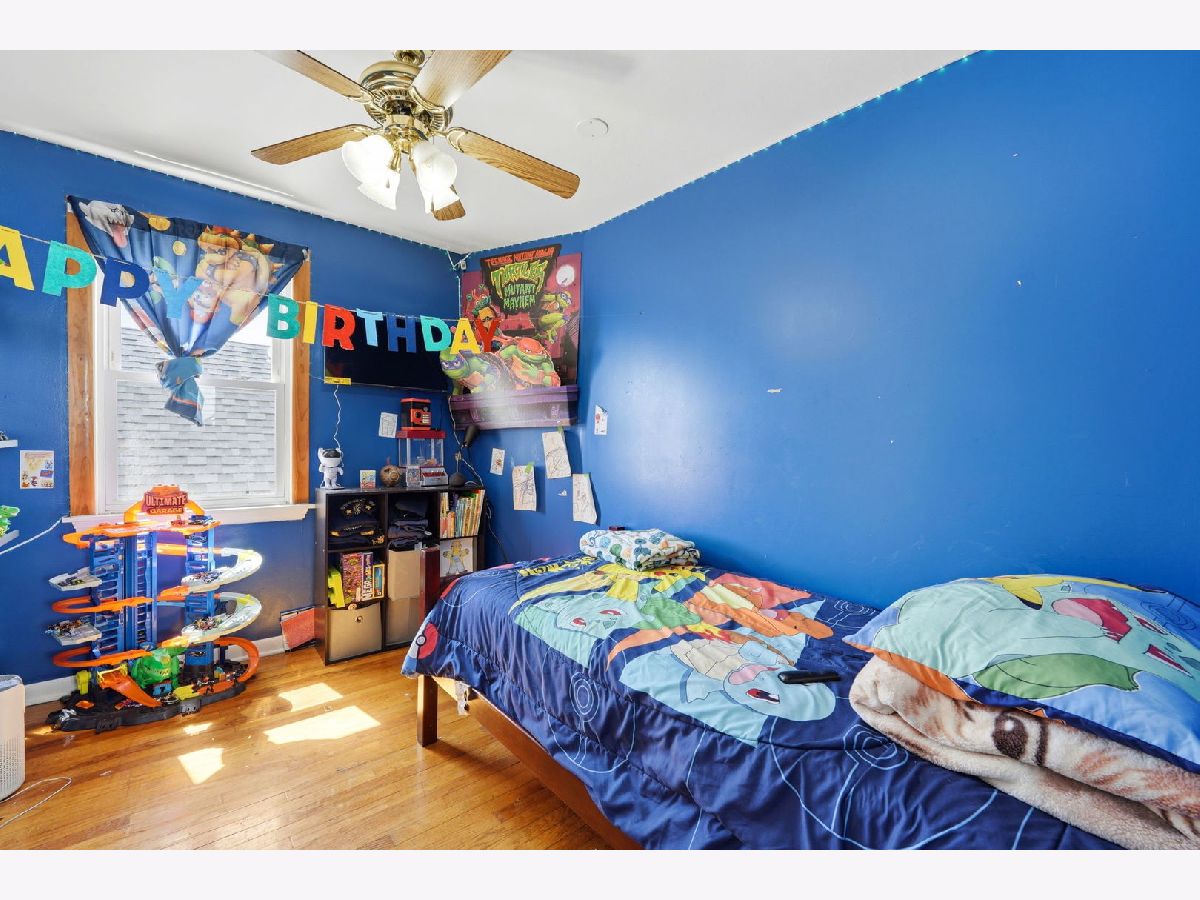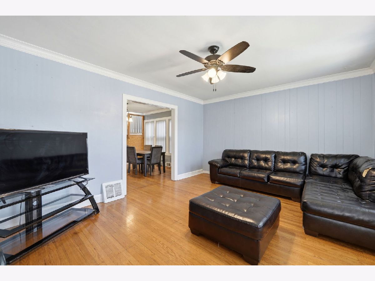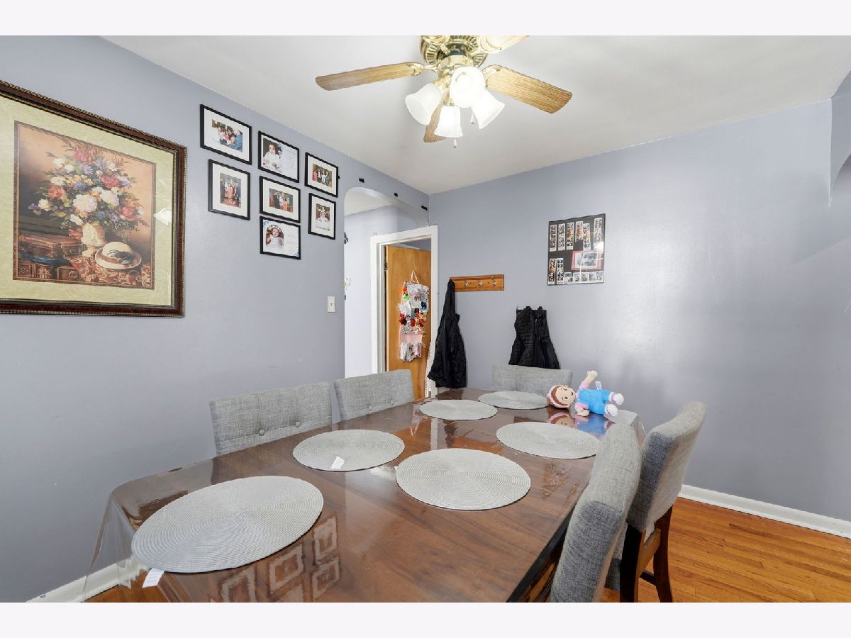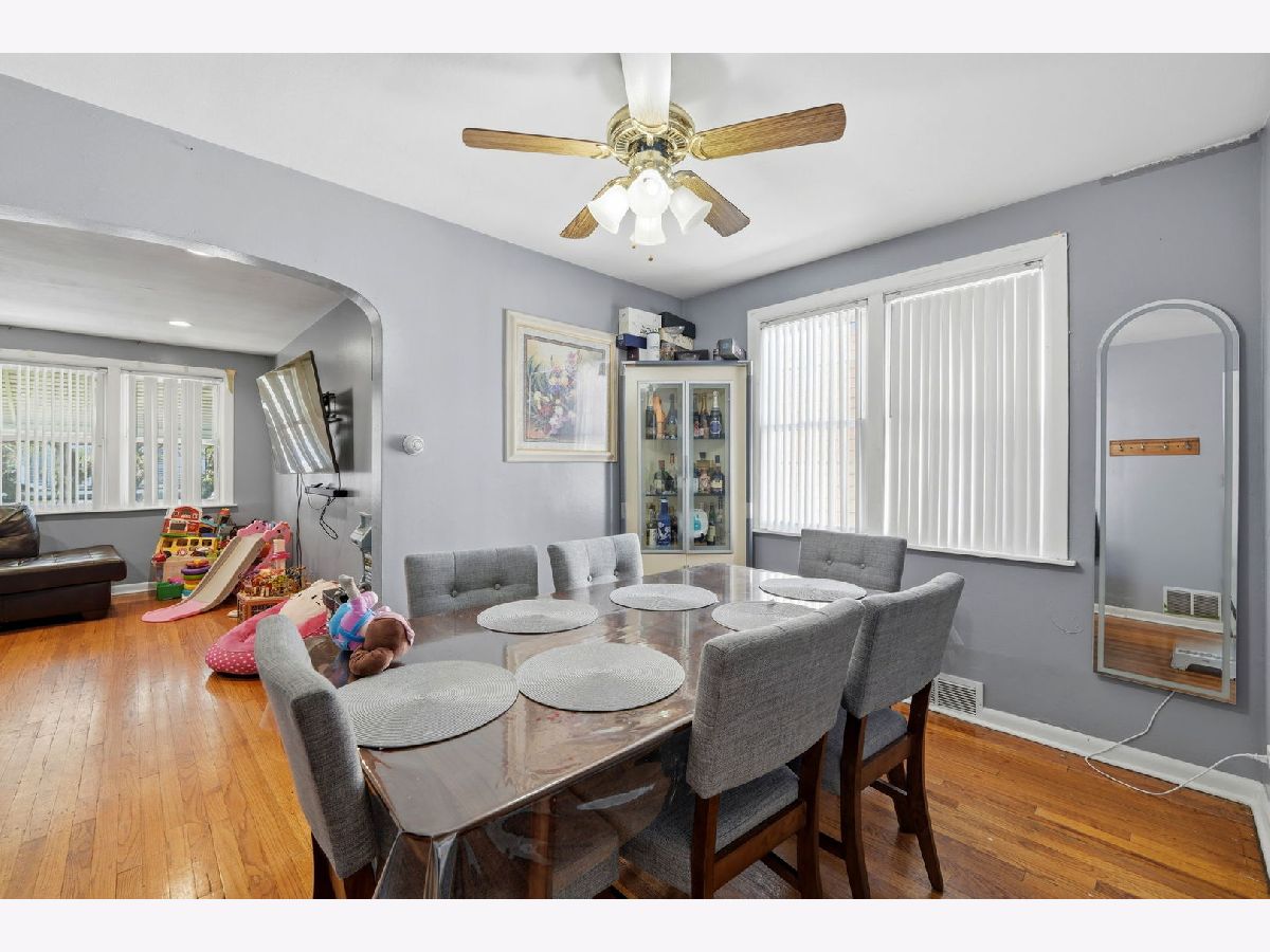 Spacious brick bungalow with a dormered attic offering three levels of living space-ideal for larger households or extended living arrangements. The main level features a bright living room, formal dining room, two bedrooms, a full bath, an eat-in kitchen, and an enclosed porch. The second level includes a generous family room, third and fourth bedrooms, a kitchenette, full bathroom, and an additional porch for expanded living space. Hardwood flooring runs throughout the main and second levels. The full finished walkout basement provides even more versatility, offering two additional bedrooms, a full bathroom, an entertainment area, storage room, and a dedicated laundry area. Major updates and features include two forced-air heating systems, central air conditioning on the main level and basement, a complete tear-off roof (2024), and a wood fence (2016). The backyard is perfect for outdoor gatherings and cookouts. Detached 2-car garage completes this great property.