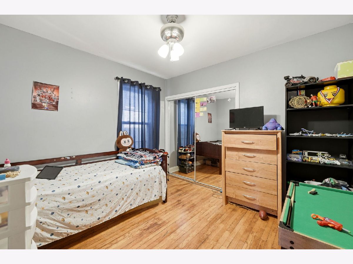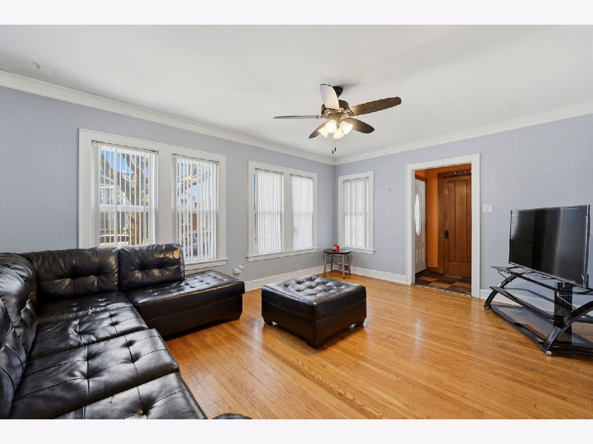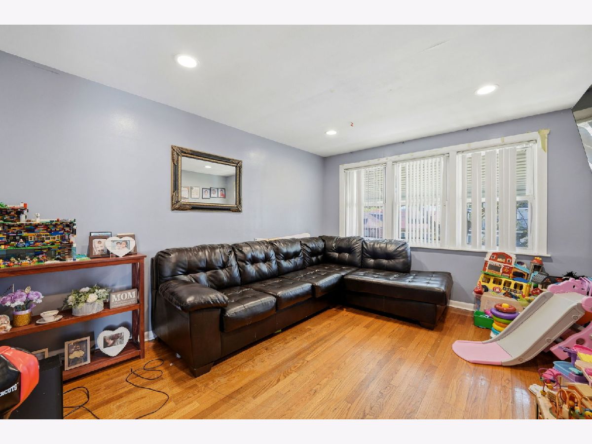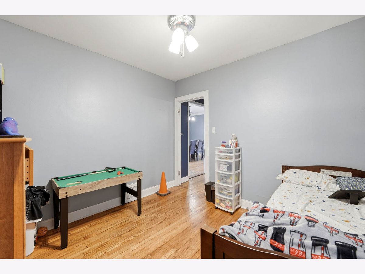 Spacious brick bungalow with a dormered attic offering three levels of living space-ideal for larger households or extended living arrangements. The main level features a bright living room, formal dining room, two bedrooms, a full bath, an eat-in kitchen, and an enclosed porch. The second level includes a generous family room, third and fourth bedrooms, a kitchenette, full bathroom, and an additional porch for expanded living space. Hardwood flooring runs throughout the main and second levels. The full finished walkout basement provides even more versatility, offering two additional bedrooms, a full bathroom, an entertainment area, storage room, and a dedicated laundry area. Major updates and features include two forced-air heating systems, central air conditioning on the main level and basement, a complete tear-off roof (2024), and a wood fence (2016). The backyard is perfect for outdoor gatherings and cookouts. Detached 2-car garage completes this great property.