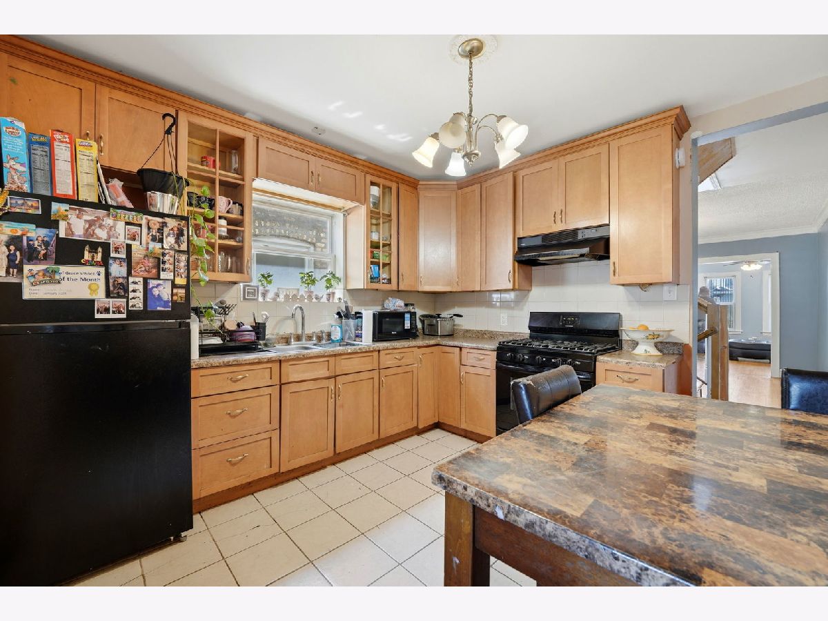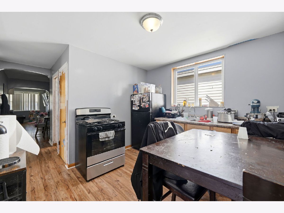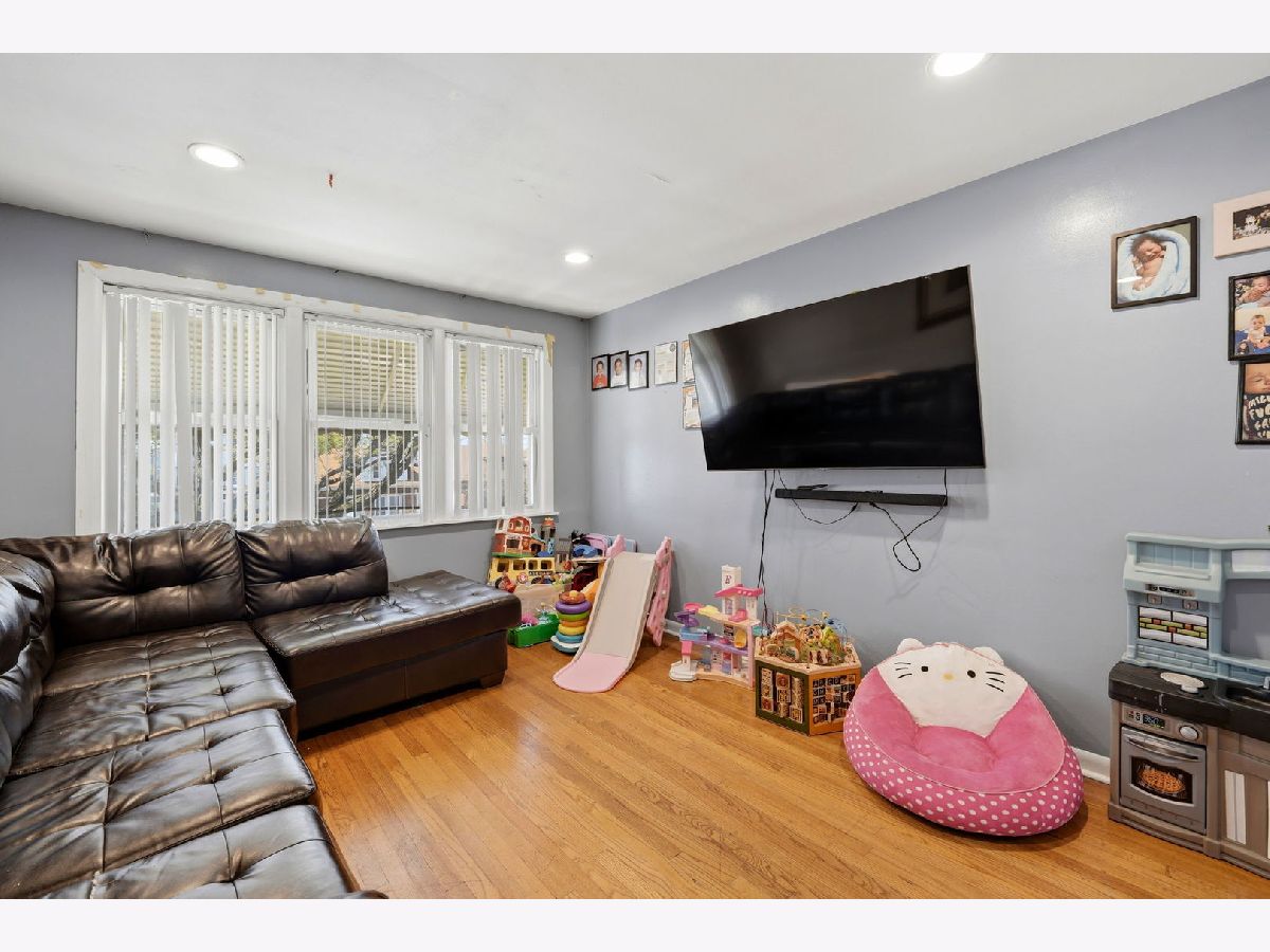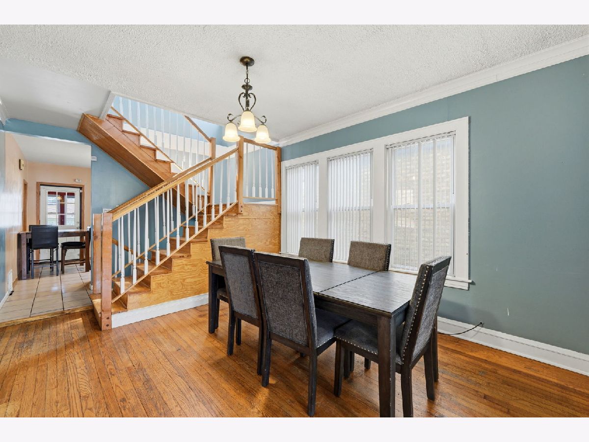 Spacious brick bungalow with a dormered attic offering three levels of living space-ideal for larger households or extended living arrangements. The main level features a bright living room, formal dining room, two bedrooms, a full bath, an eat-in kitchen, and an enclosed porch. The second level includes a generous family room, third and fourth bedrooms, a kitchenette, full bathroom, and an additional porch for expanded living space. Hardwood flooring runs throughout the main and second levels. The full finished walkout basement provides even more versatility, offering two additional bedrooms, a full bathroom, an entertainment area, storage room, and a dedicated laundry area. Major updates and features include two forced-air heating systems, central air conditioning on the main level and basement, a complete tear-off roof (2024), and a wood fence (2016). The backyard is perfect for outdoor gatherings and cookouts. Detached 2-car garage completes this great property.