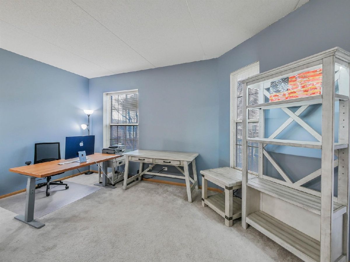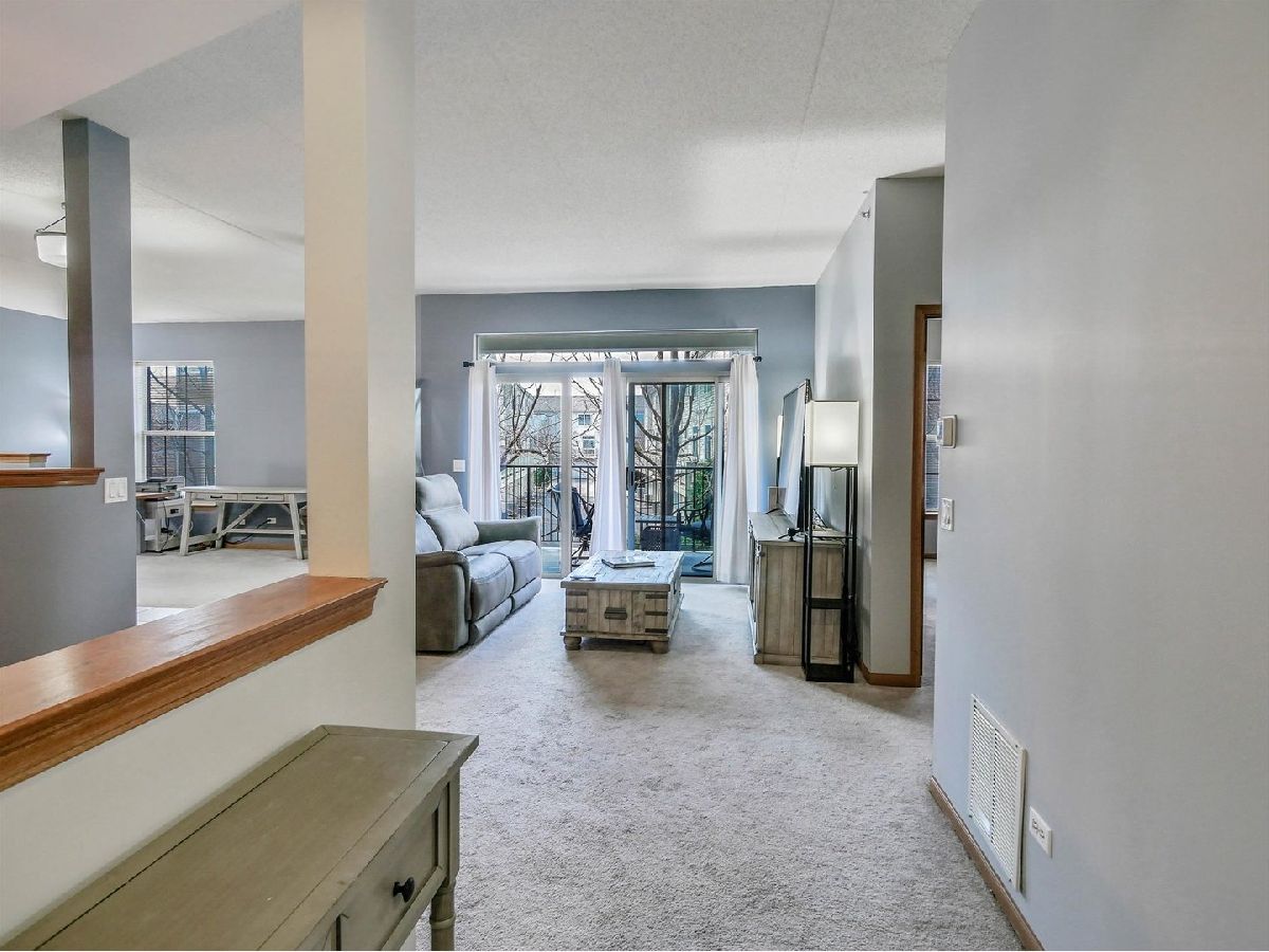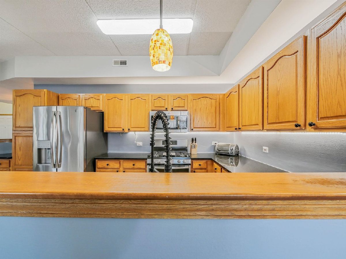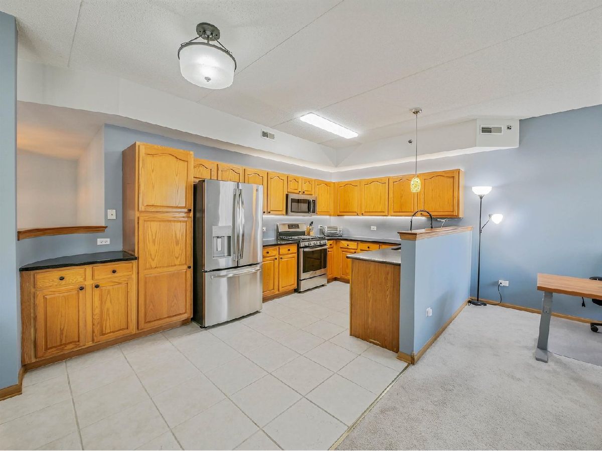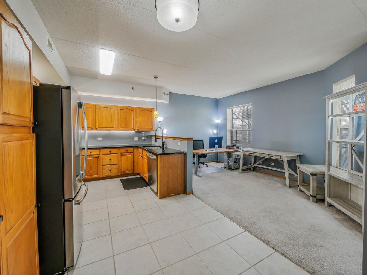 One of only 8 oversized 1-bedroom residences (1,204 sq ft)-larger than many 2-bedroom condos-this rare Ames model in Kimball Square offers space without the cost or upkeep of a 2-bedroom. While most 1-bed units in the area are 600-900 sq ft, this home features over 1,200 sq ft with a true living room, separate dining area, office/den space, and an open layout that comfortably fits full-size furniture. Highlights include 9 ft ceilings, granite countertops, stainless steel appliances, eat-in kitchen, spacious bedroom with oversized bath and double vanity, and in-unit full-size washer/dryer (2025). Additional updates include a new garbage disposal (2026) and well-maintained AC (2019). Enjoy a west-facing private balcony with sunset views and mature trees, plus heated garage parking, storage, and a secure, pet-friendly building. Walkable to shopping, dining, library, parks, and trails with easy access to IL-53, I-90, I-290, and I-355. Recent building activity shows strong demand-making this a compelling value for the space.